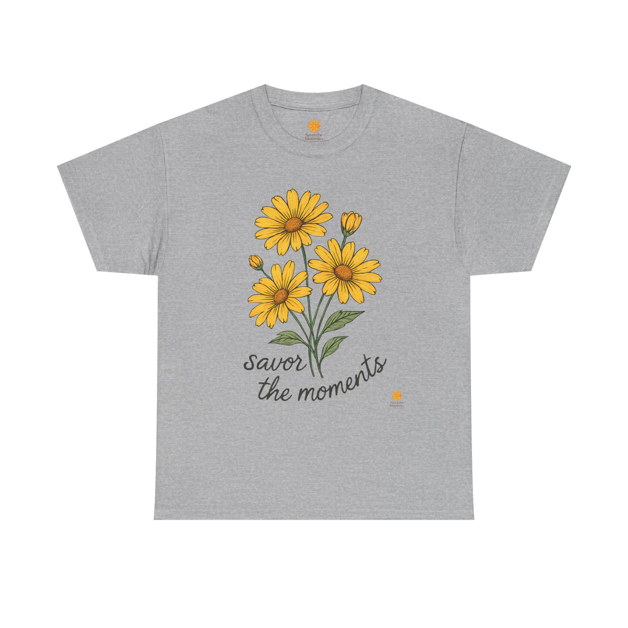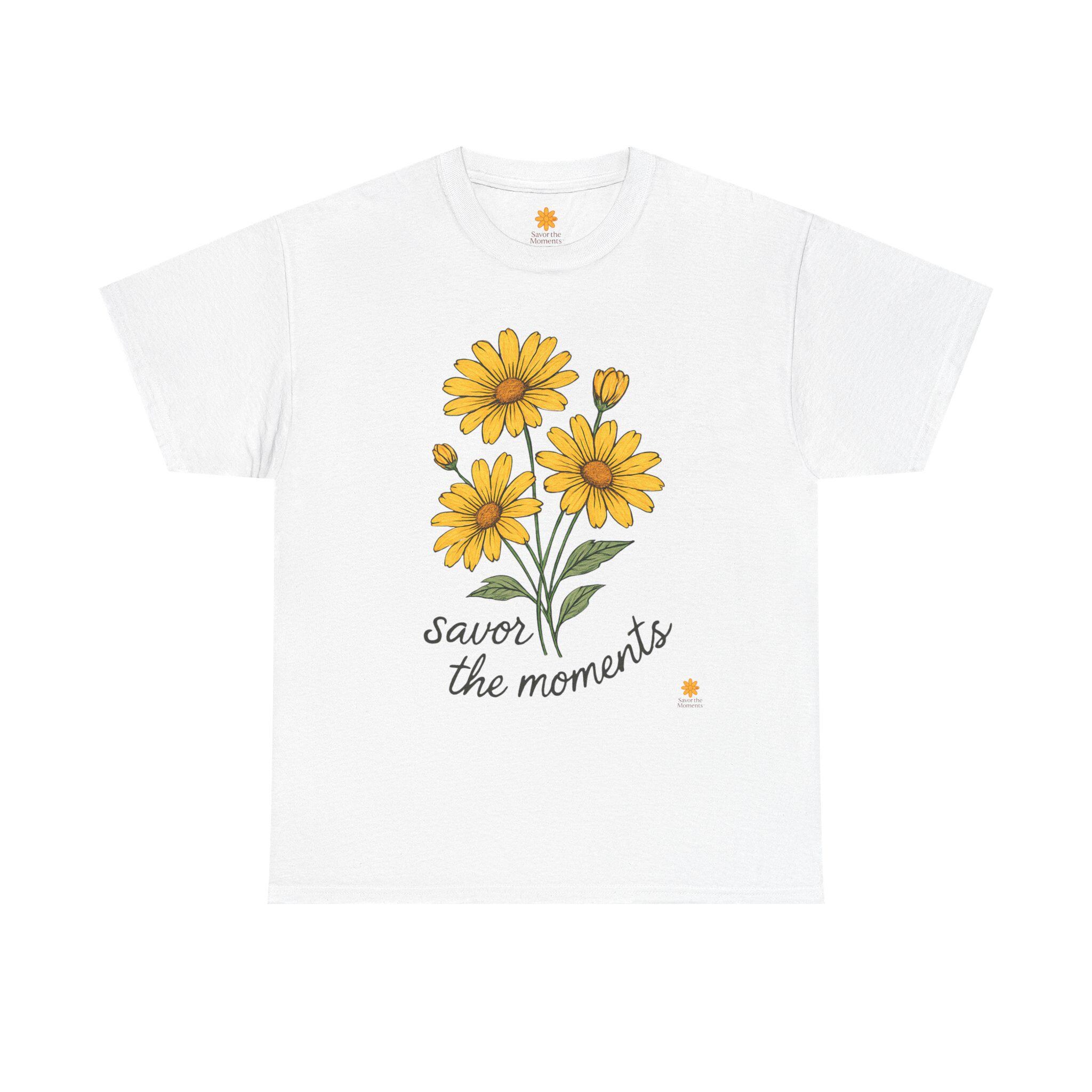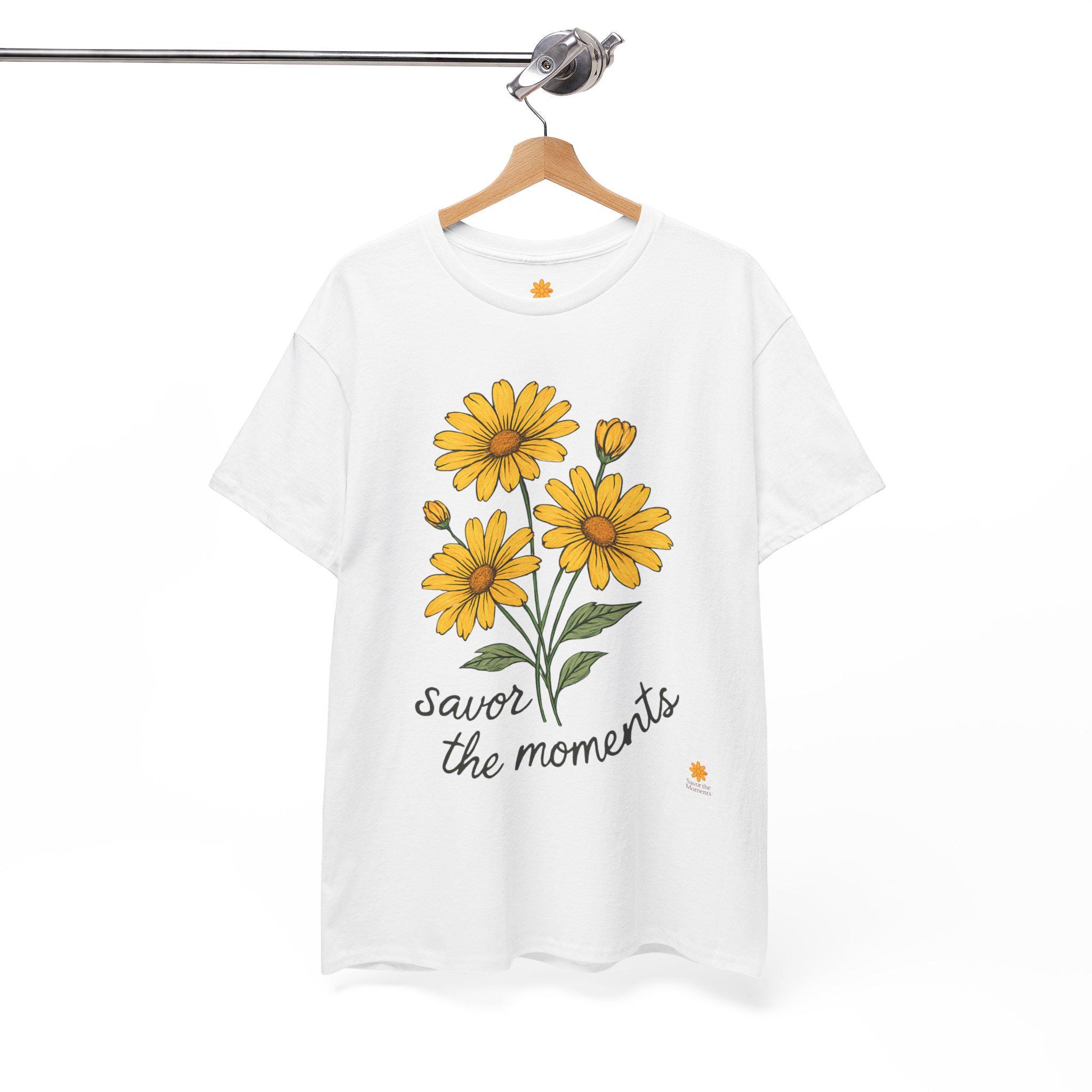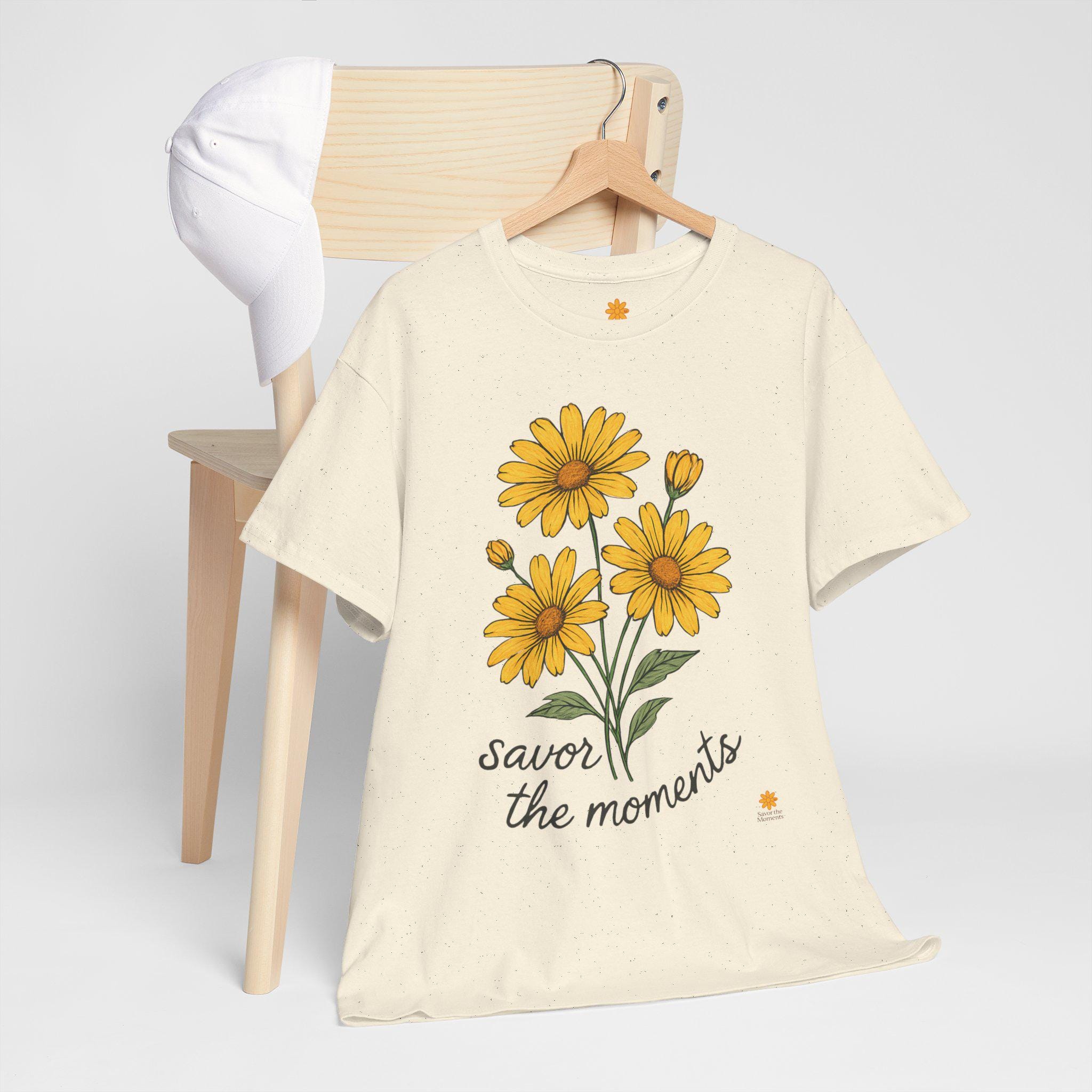 Spring Floral Yellow Daisies Tee • Savor the Moments™ Nature Shirt • Soft Casual Everyday Top • Thoughtful Gift for Outdoor & Garden Lovers. Embrace comfort and style with this Unisex Heavy Cotton Tee, perfect for anyone who loves to express themselves through fashion. The cheerful design featuring vibrant yellow flowers and the uplifting phrase 'savor the moments' brings a bright, sunny vibe to your wardrobe. This tee is not only a staple piece but also a reminder to cherish everyday experiences, making it a thoughtful gift for friends or family. Ideal for casual outings, gatherings, or just lounging at home, it fits effortlessly into any lifestyle. Celebrate birthdays, anniversaries, or simply gift it to someone special just because. This tee is tailored for adults who appreciate quality and care about sustainability.