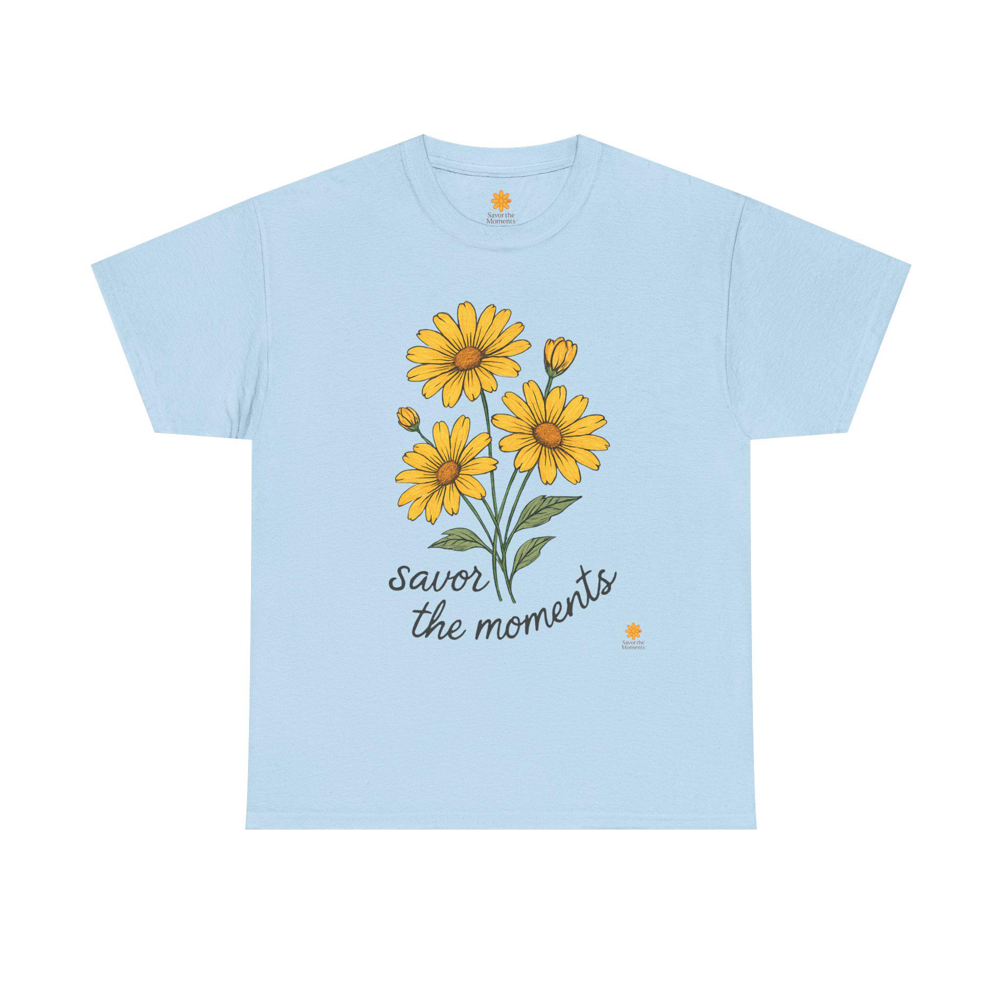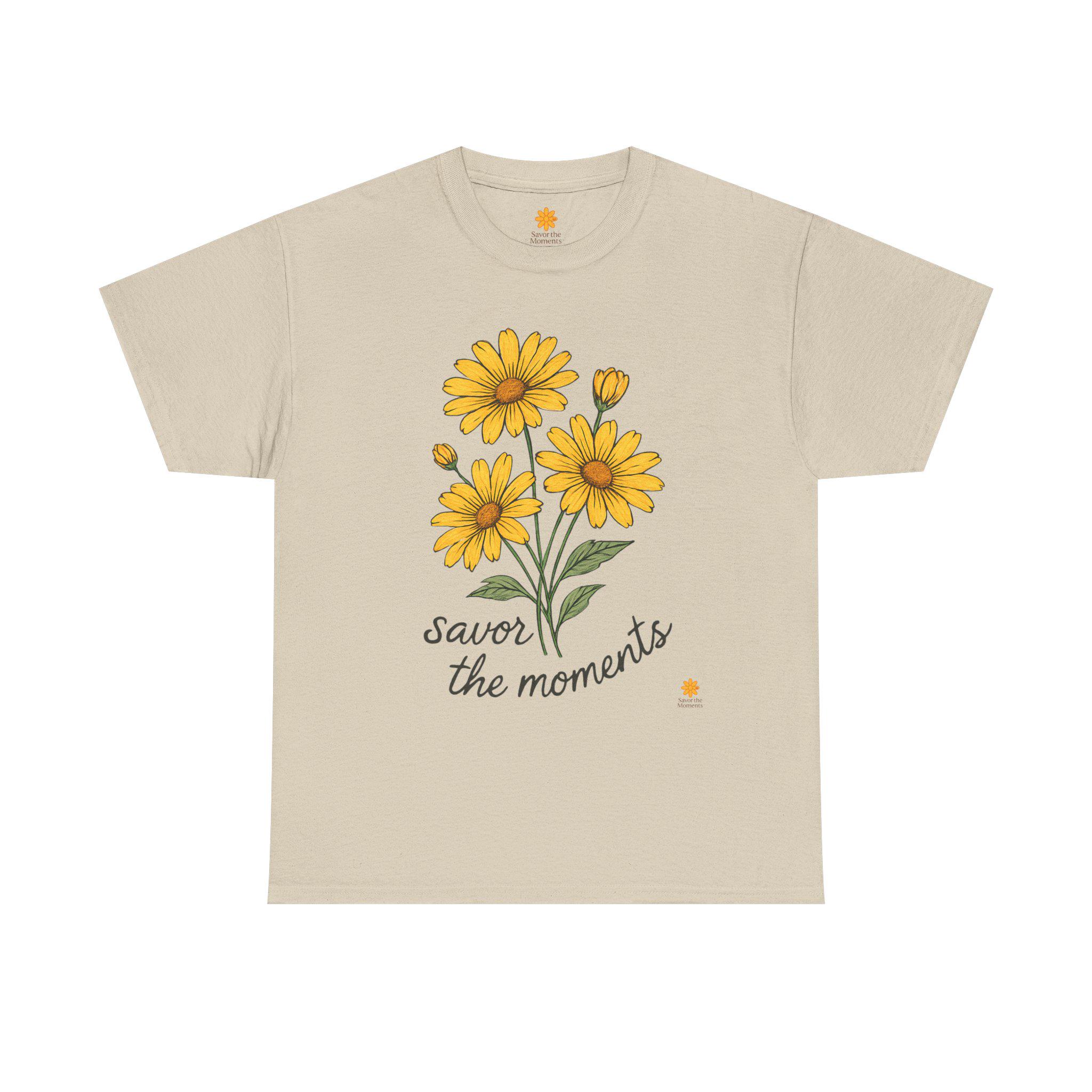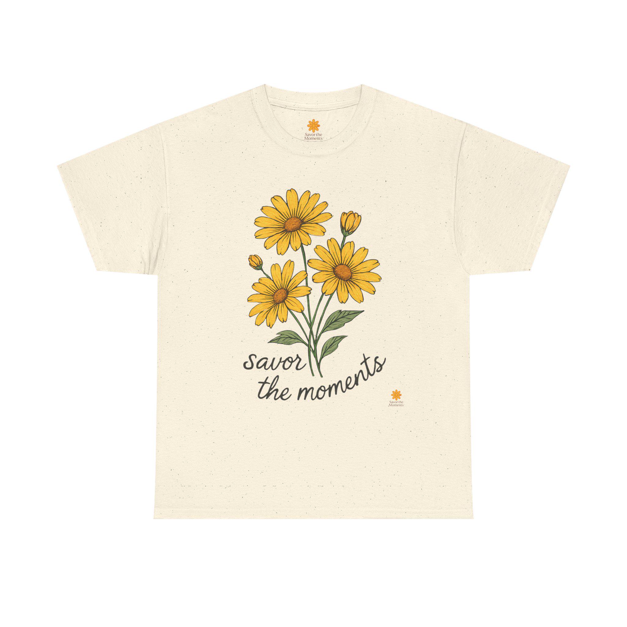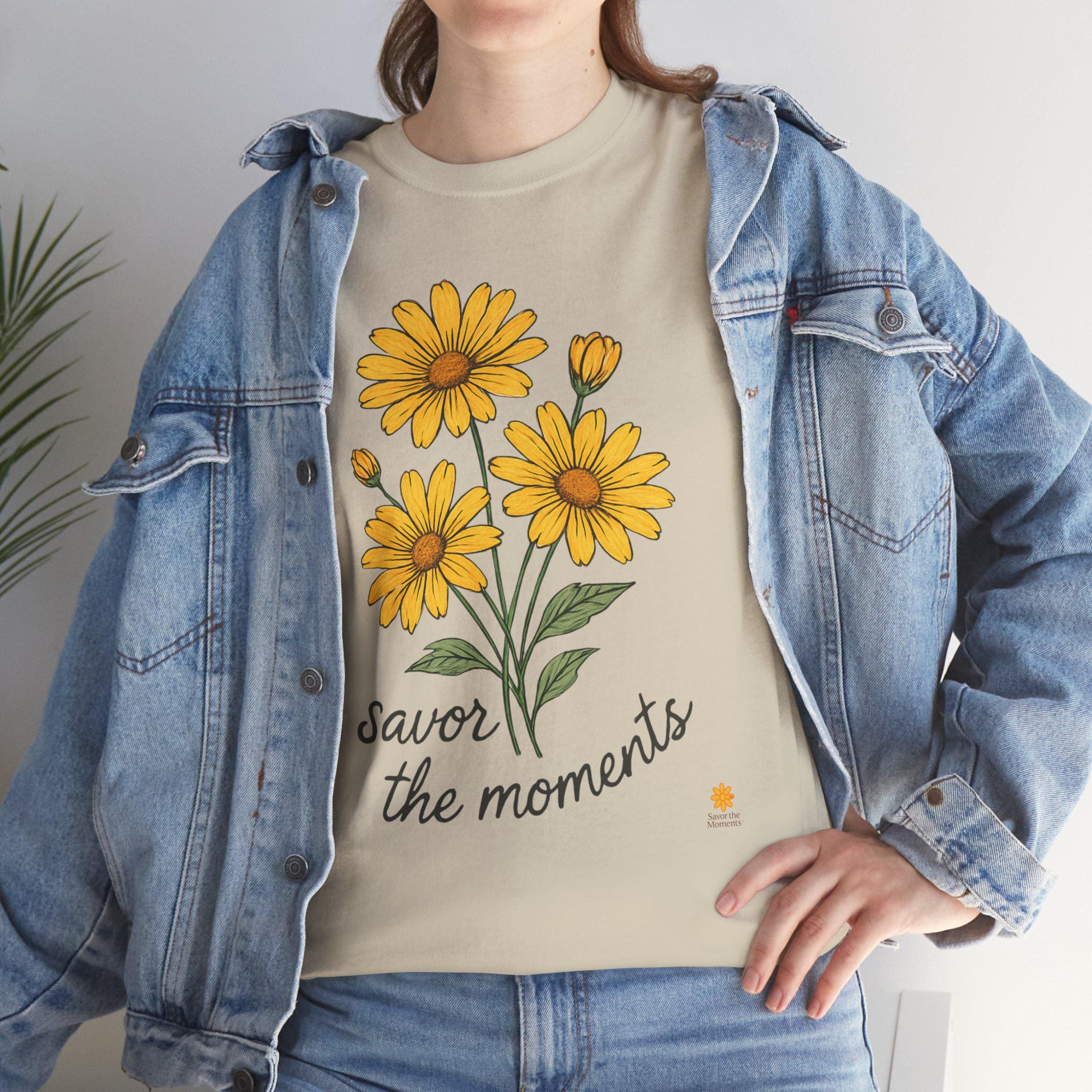 Spring Floral Yellow Daisies Tee • Savor the Moments™ Nature Shirt • Soft Casual Everyday Top • Thoughtful Gift for Outdoor & Garden Lovers. Embrace comfort and style with this Unisex Heavy Cotton Tee, perfect for anyone who loves to express themselves through fashion. The cheerful design featuring vibrant yellow flowers and the uplifting phrase 'savor the moments' brings a bright, sunny vibe to your wardrobe. This tee is not only a staple piece but also a reminder to cherish everyday experiences, making it a thoughtful gift for friends or family. Ideal for casual outings, gatherings, or just lounging at home, it fits effortlessly into any lifestyle. Celebrate birthdays, anniversaries, or simply gift it to someone special just because. This tee is tailored for adults who appreciate quality and care about sustainability.