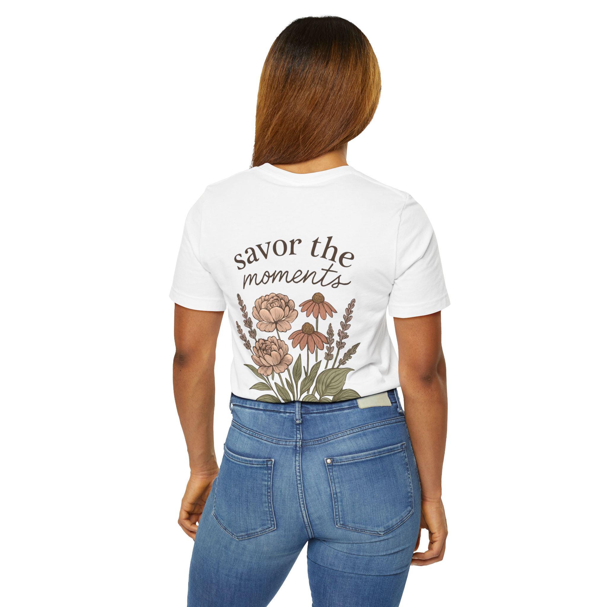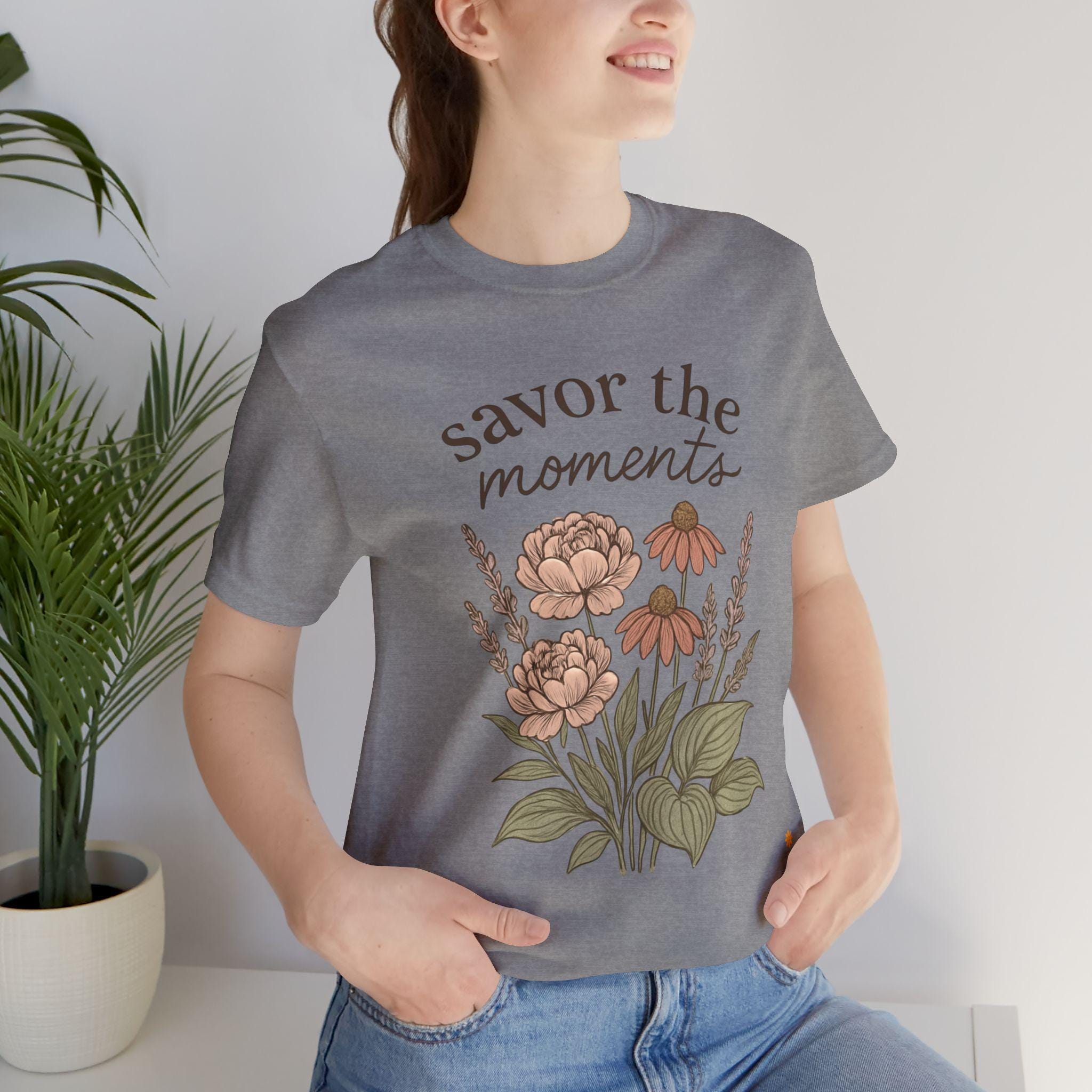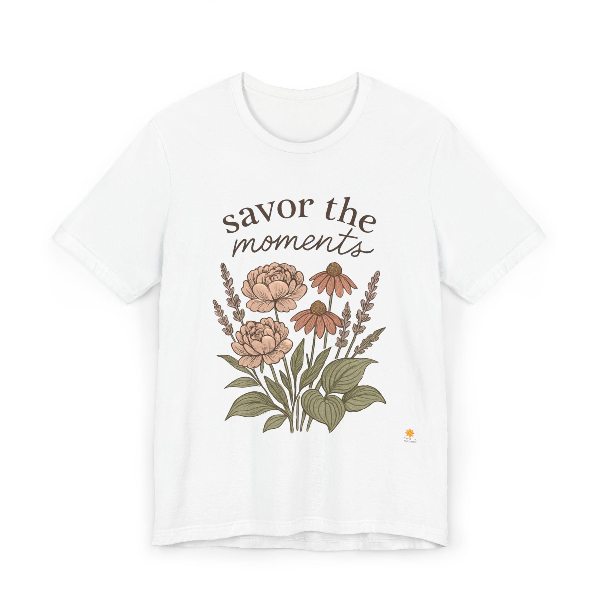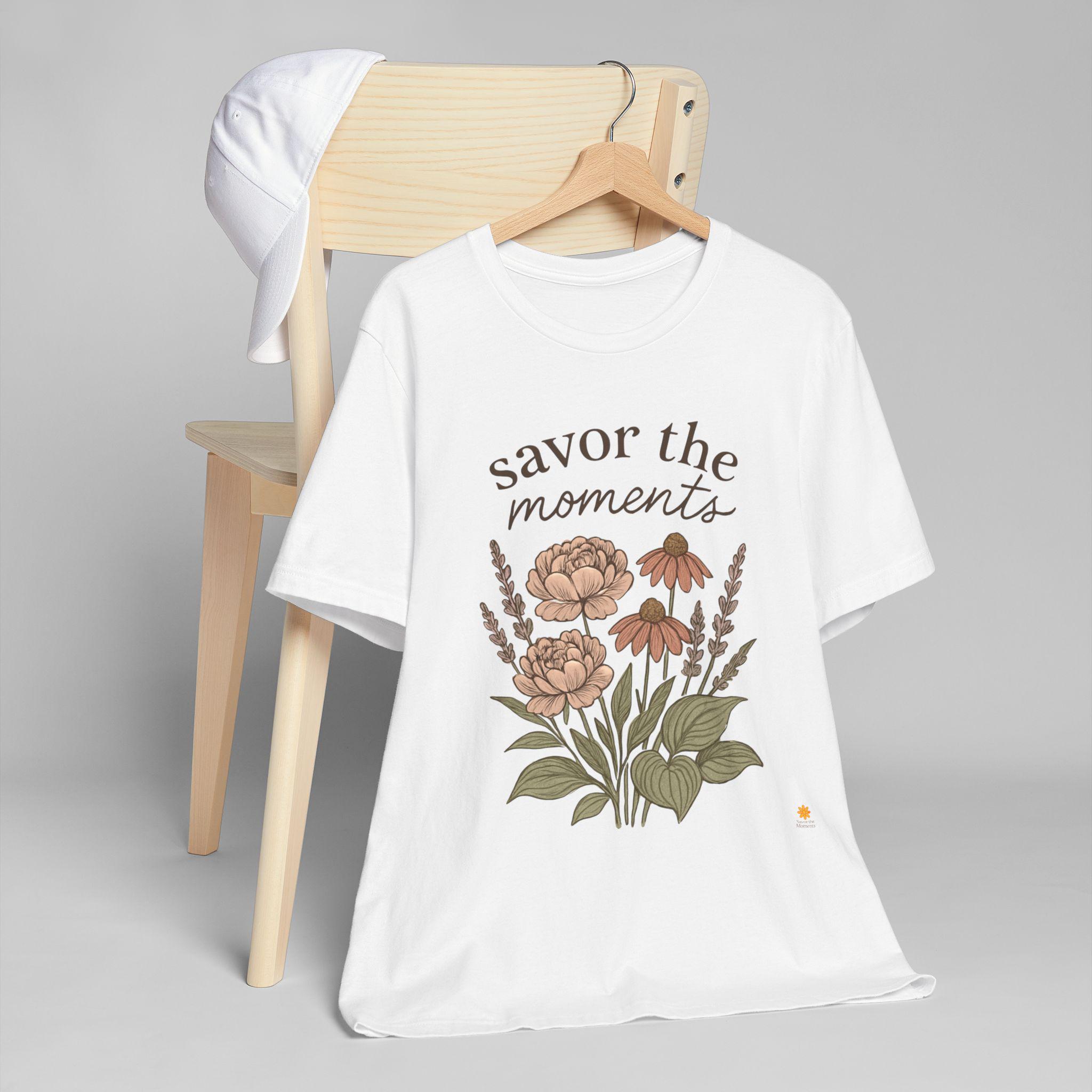 T-Shirt, Cozy Gift, Nature Lover Tee, Relaxed Style, Summer Vibes, Inspirational Apparel Savor the Moments