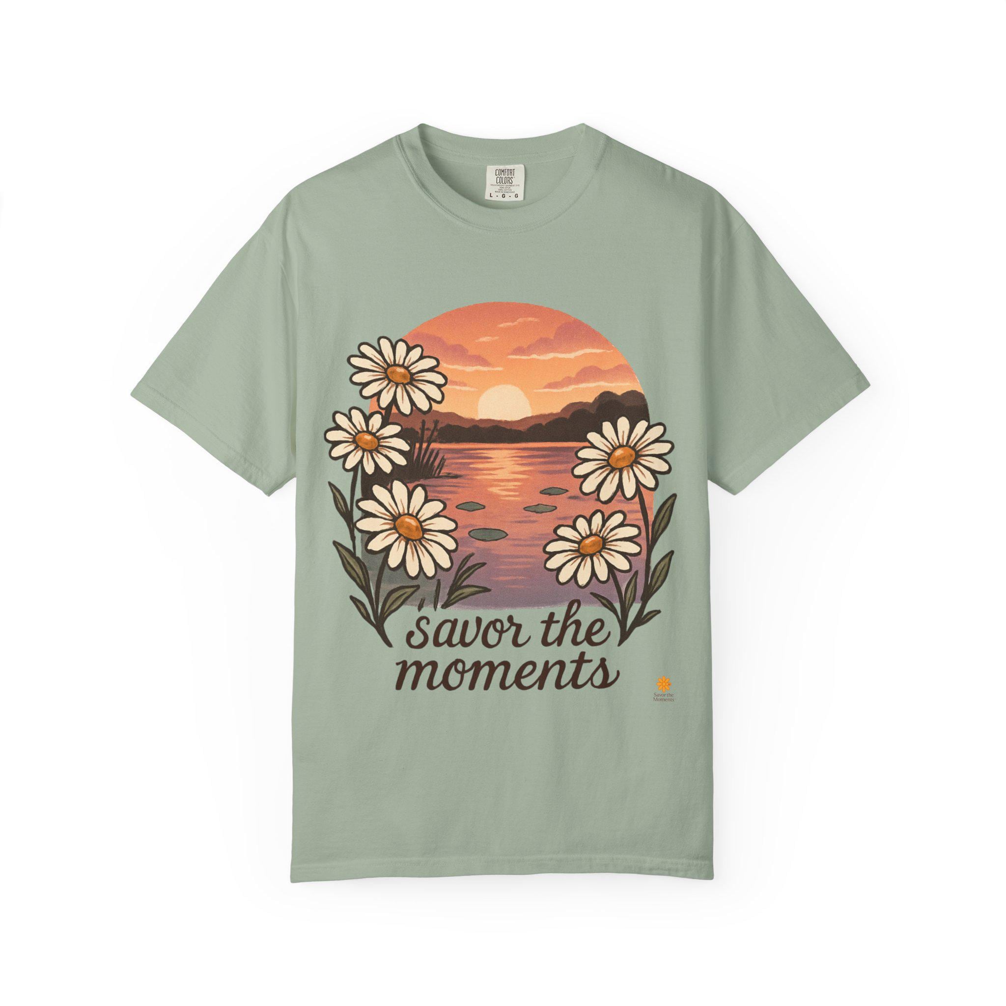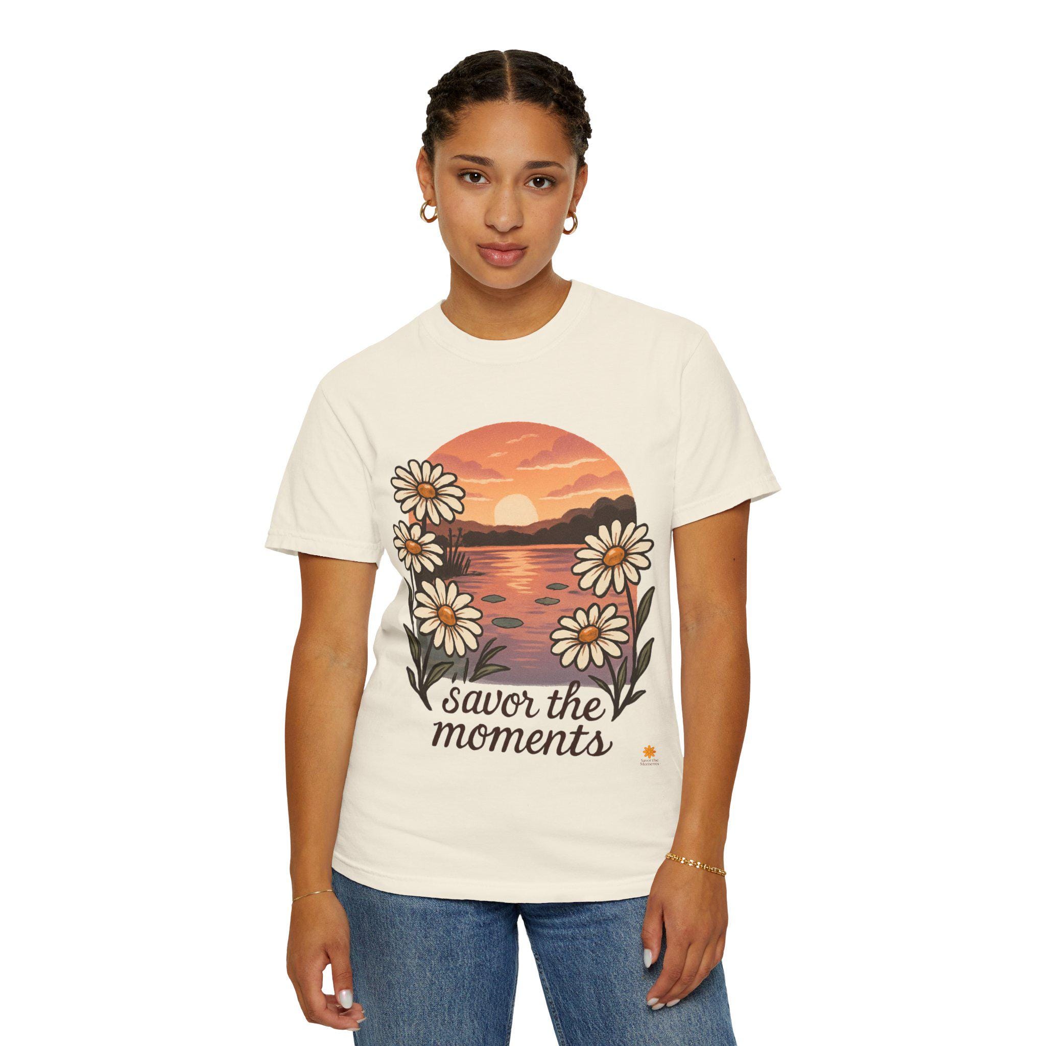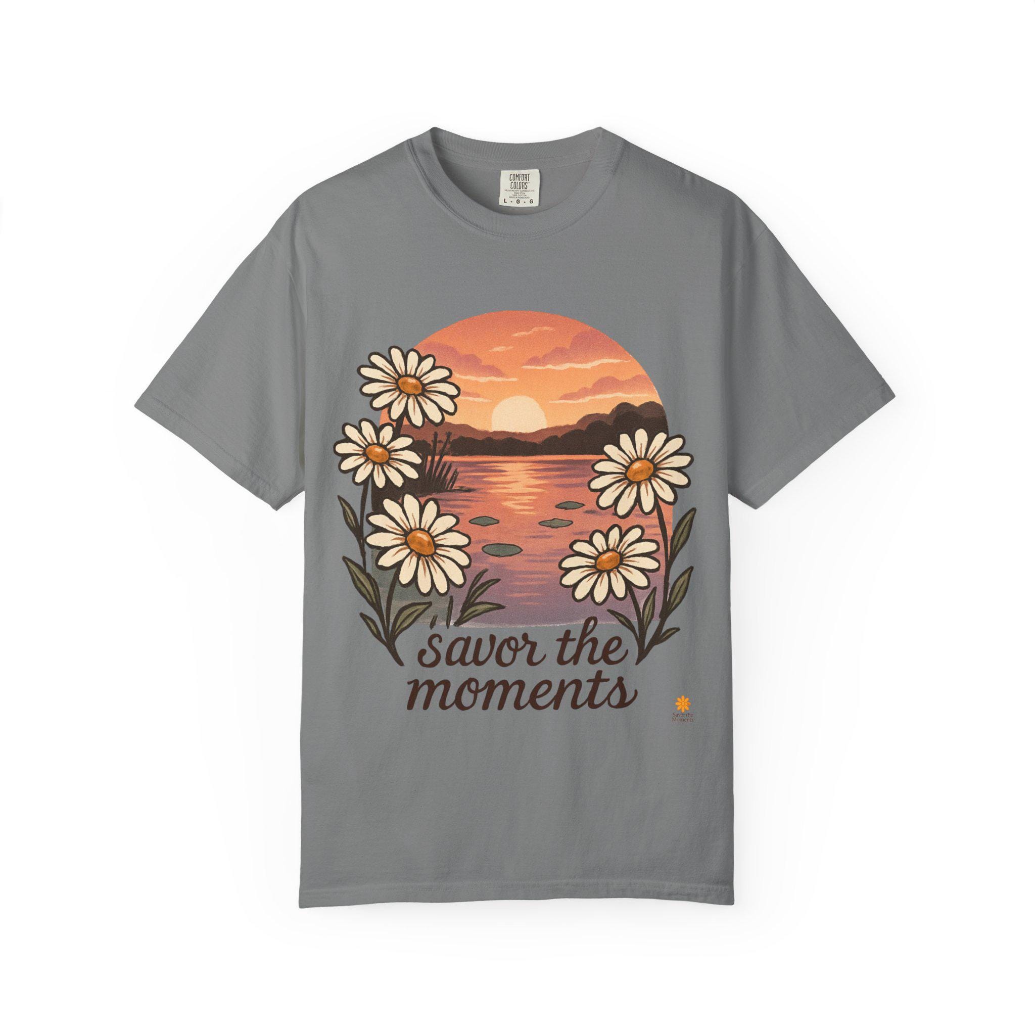 Embrace a relaxed, sunny vibe with this unisex garment-dyed t-shirt that invites you to savor every moment. The soft fabric and beautiful sunset design featuring daisies make it perfect for everyday wear, adding a touch of warmth to your casual outfits. Ideal for nature lovers, artists, and anyone who appreciates life's little joys, this tee is versatile enough for weekend outings, picnics in the park, or cozy evenings at home. It’s a fabulous choice for gifting during holidays like Mother’s Day, birthdays, or just to brighten someone's day. With its comforting fit and stylish design, this t-shirt seamlessly fits into your life, reminding you to embrace each day with a smile.