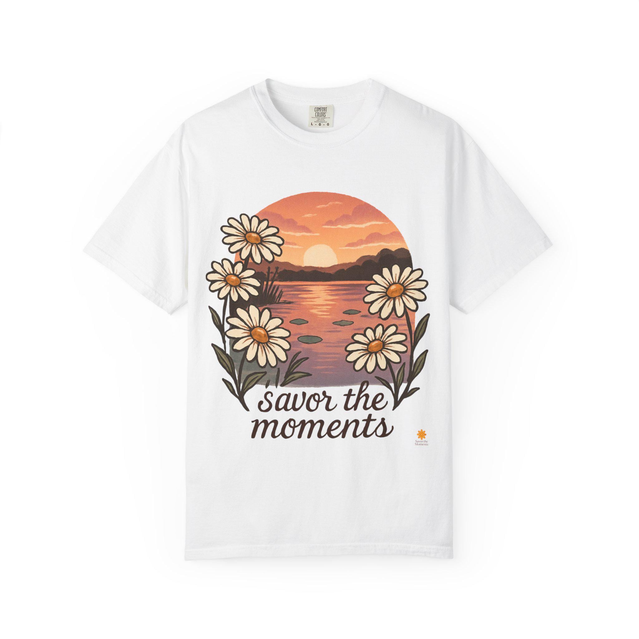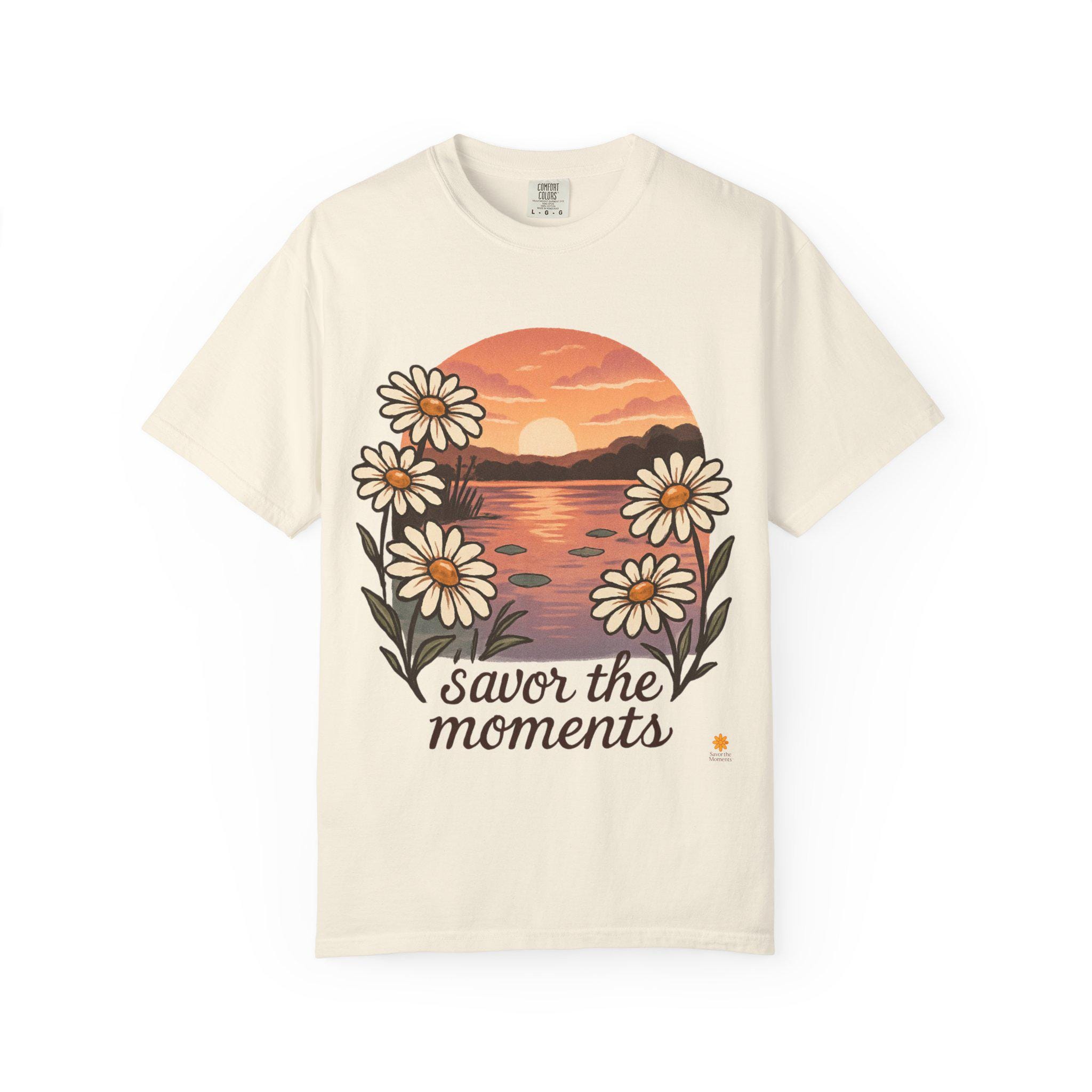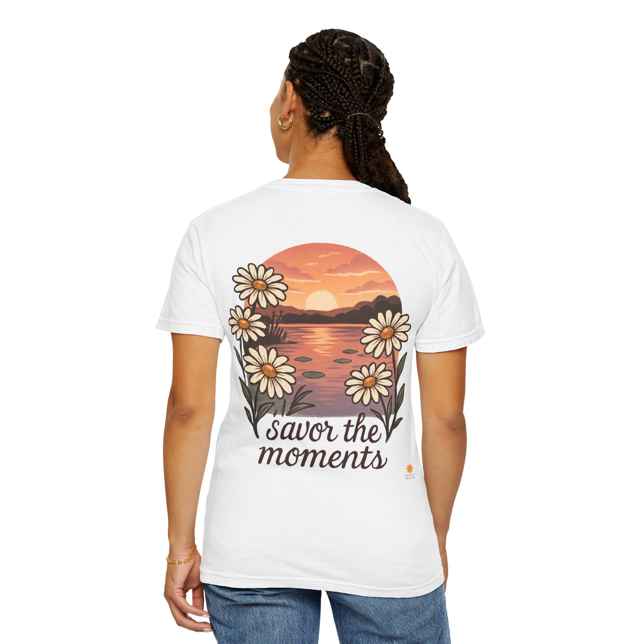 Embrace a relaxed, sunny vibe with this unisex garment-dyed t-shirt that invites you to savor every moment. The soft fabric and beautiful sunset design featuring daisies make it perfect for everyday wear, adding a touch of warmth to your casual outfits. Ideal for nature lovers, artists, and anyone who appreciates life's little joys, this tee is versatile enough for weekend outings, picnics in the park, or cozy evenings at home. It’s a fabulous choice for gifting during holidays like Mother’s Day, birthdays, or just to brighten someone's day. With its comforting fit and stylish design, this t-shirt seamlessly fits into your life, reminding you to embrace each day with a smile.