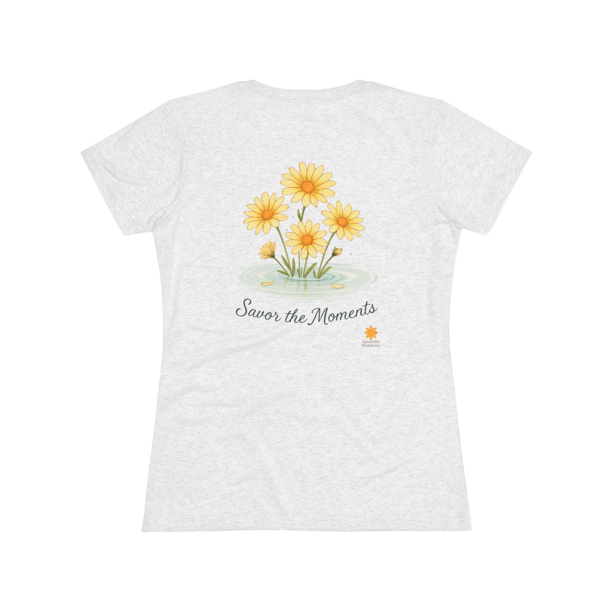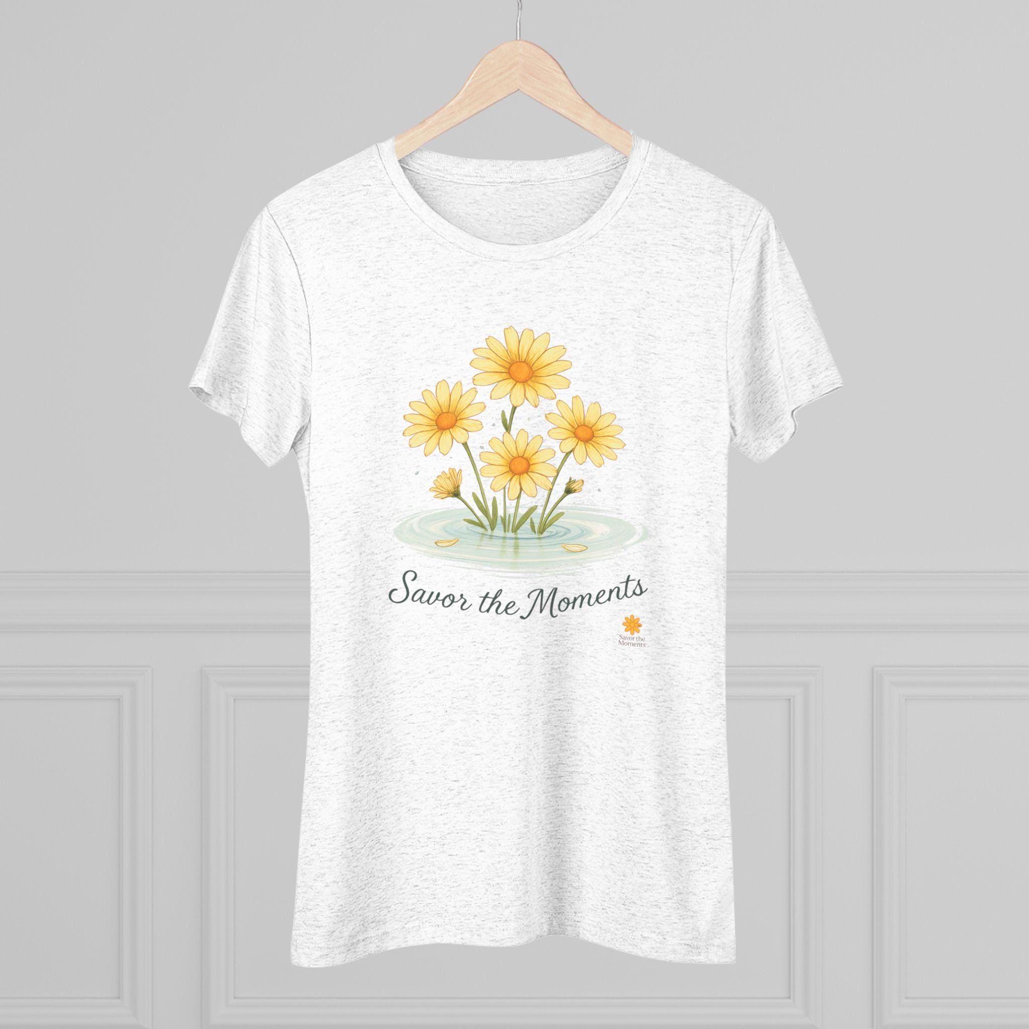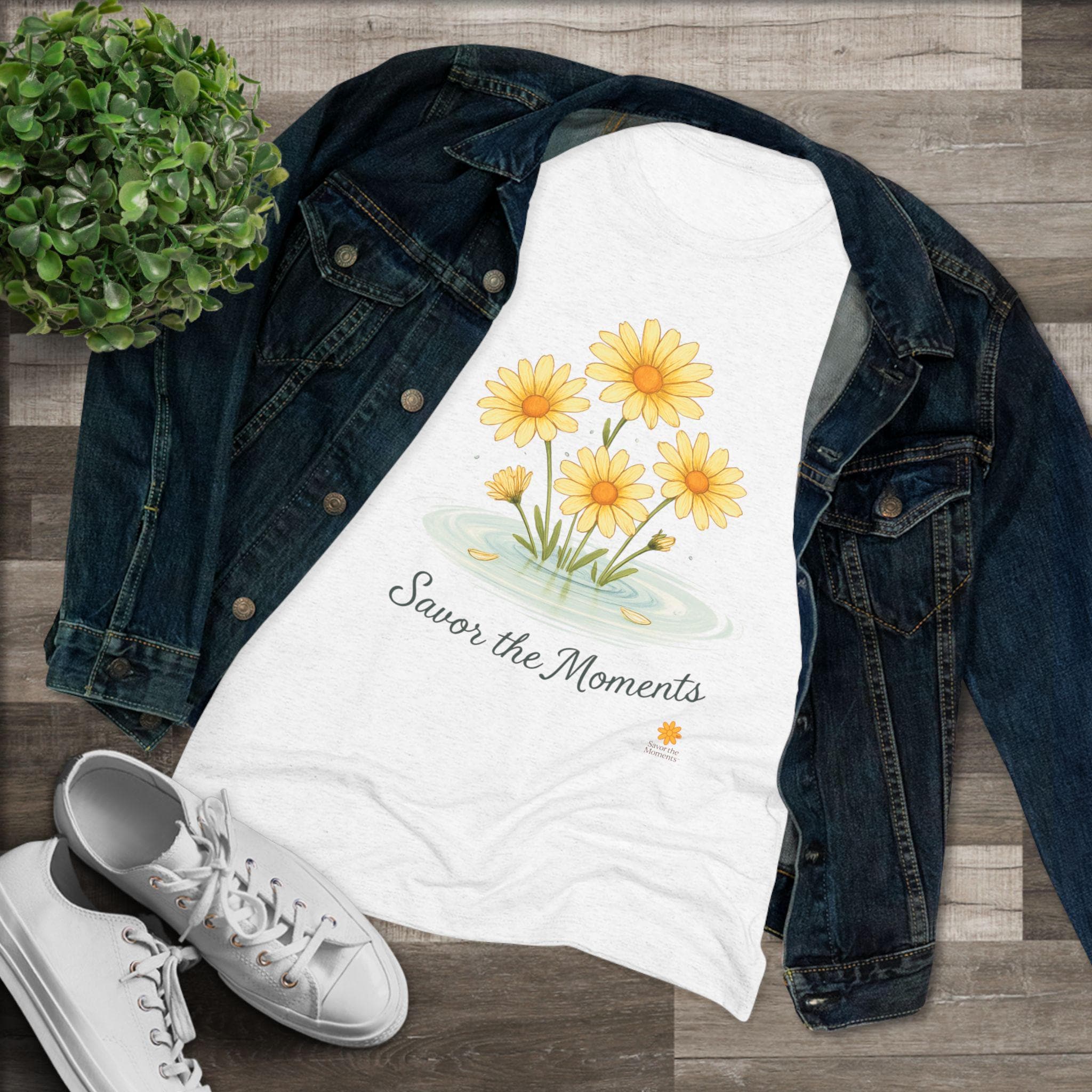 Embrace comfort and style with this Women's Triblend Tee. Designed for those who appreciate the beauty in every moment, this tee features a charming floral print alongside the inspirational phrase, "Savor the Moments." Perfect for casual outings, this tee seamlessly fits into your everyday wardrobe, offering a light and cozy feel that elevates your relaxed look. Whether you’re enjoying a sunny brunch or a laid-back day at home, this garment is a reminder to cherish the little things. Ideal for women who love nature-inspired designs, this tee makes a heartfelt gift for friends and family, especially for occasions like birthdays, Mother’s Day, or just to celebrate friendship. Wear it during sunny days or while lounging, and let the positive vibes shine through!