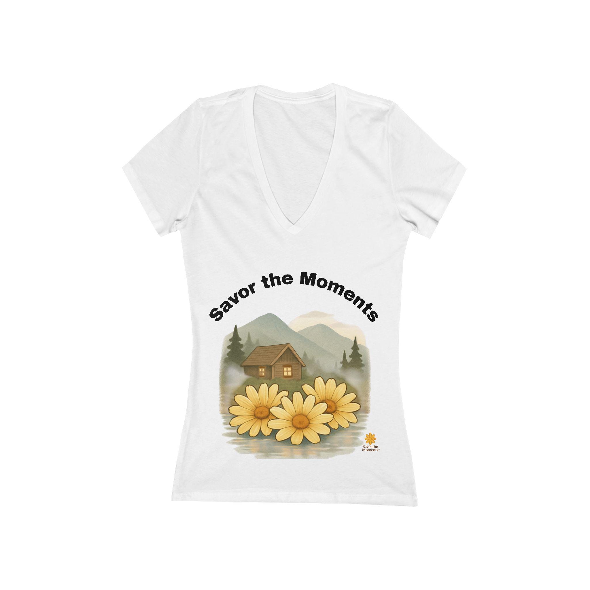 Embrace comfort and style with this Women's Jersey Short Sleeve Deep V-Neck Tee. Its light, airy fabric offers a relaxed fit, perfect for those cozy days spent with friends or enjoying time outdoors. The serene design inspires feelings of tranquility, making it an ideal addition to your casual wardrobe. Perfect for gatherings, summer outings, or just savoring life’s moments at home, this tee is a must-have for anyone who loves to express themselves through their clothing. It's particularly suitable for women who appreciate a touch of elegance in their everyday apparel, making it a thoughtful gift for birthdays, holidays, and special occasions like Mother’s Day or a casual summer wedding.