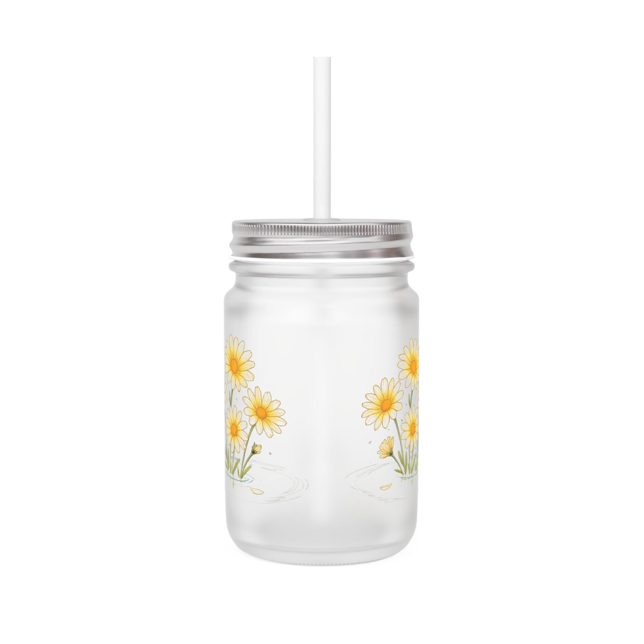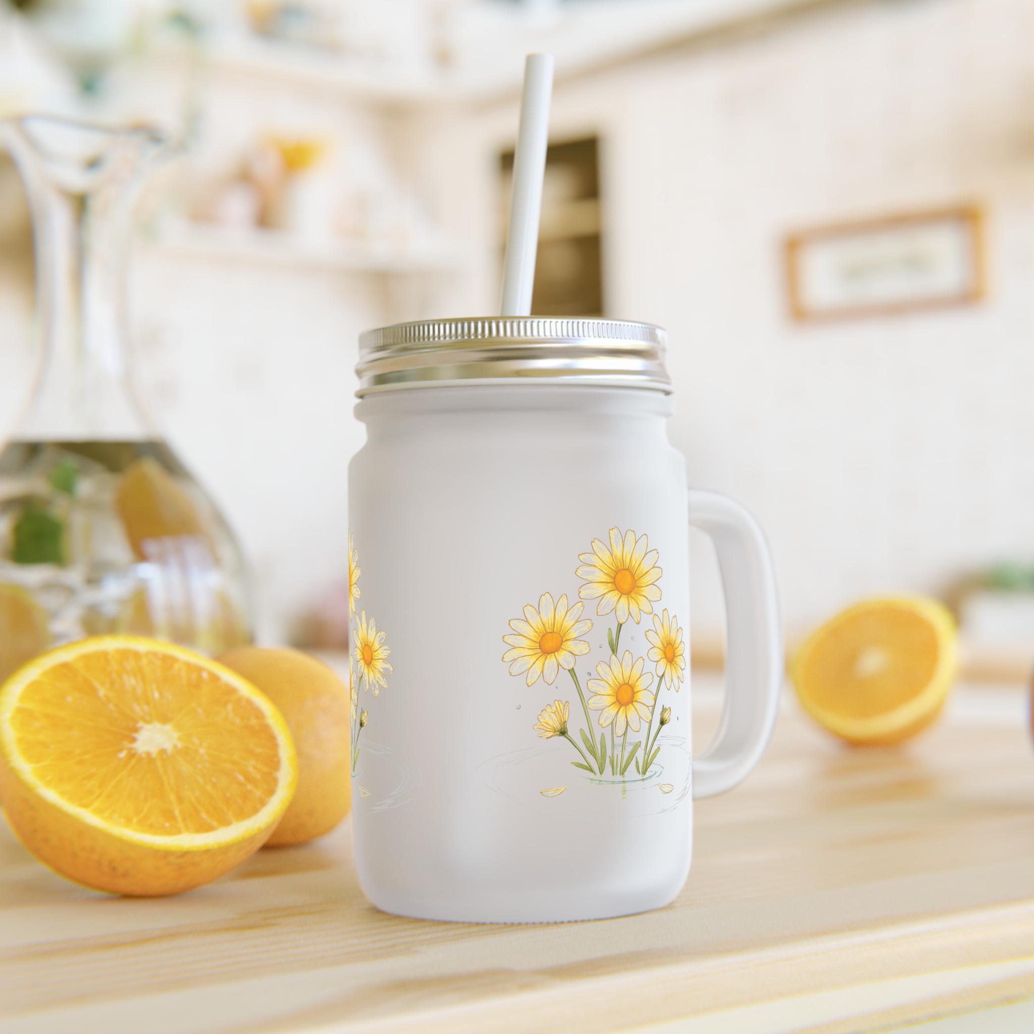 Introducing a charming frosted glass mason jar, perfect for adding a touch of rustic elegance to your kitchen or picnic table. With its adorable floral design, this jar evokes feelings of warmth and nostalgia, making it a delightful addition to any home décor. Ideal for serving soft drinks, cocktails, or even as a unique vase for flowers, it fits seamlessly into any lifestyle. Great for those who appreciate cozy gatherings with family and friends, it’s especially relevant for summer barbecues, birthday celebrations, and casual get-togethers. This charming piece caters to eco-conscious consumers looking for stylish yet functional drinkware that reflects their love for nature and simple living.