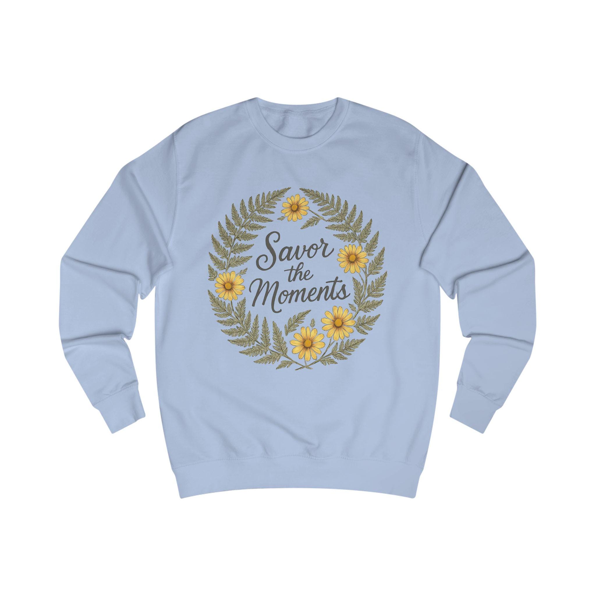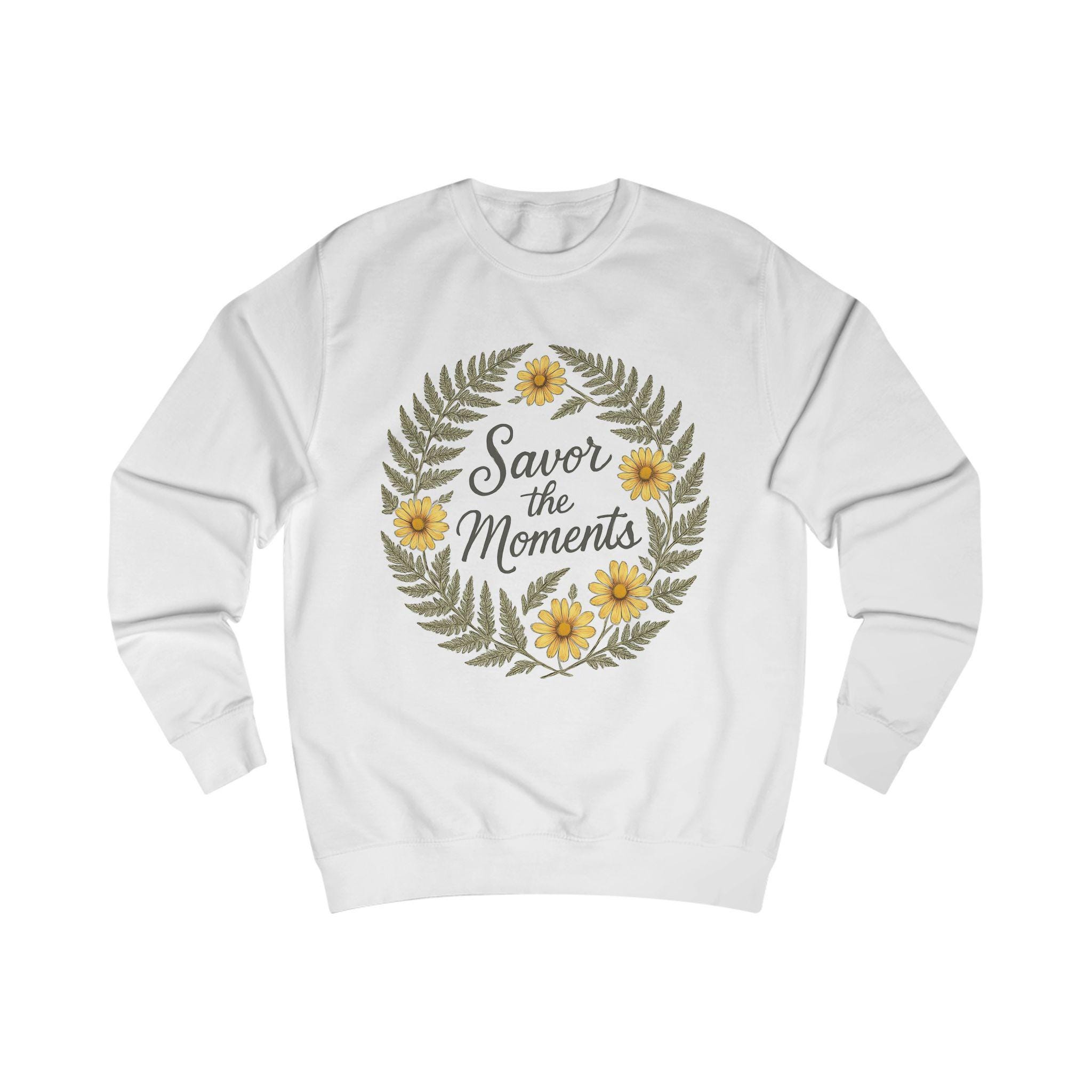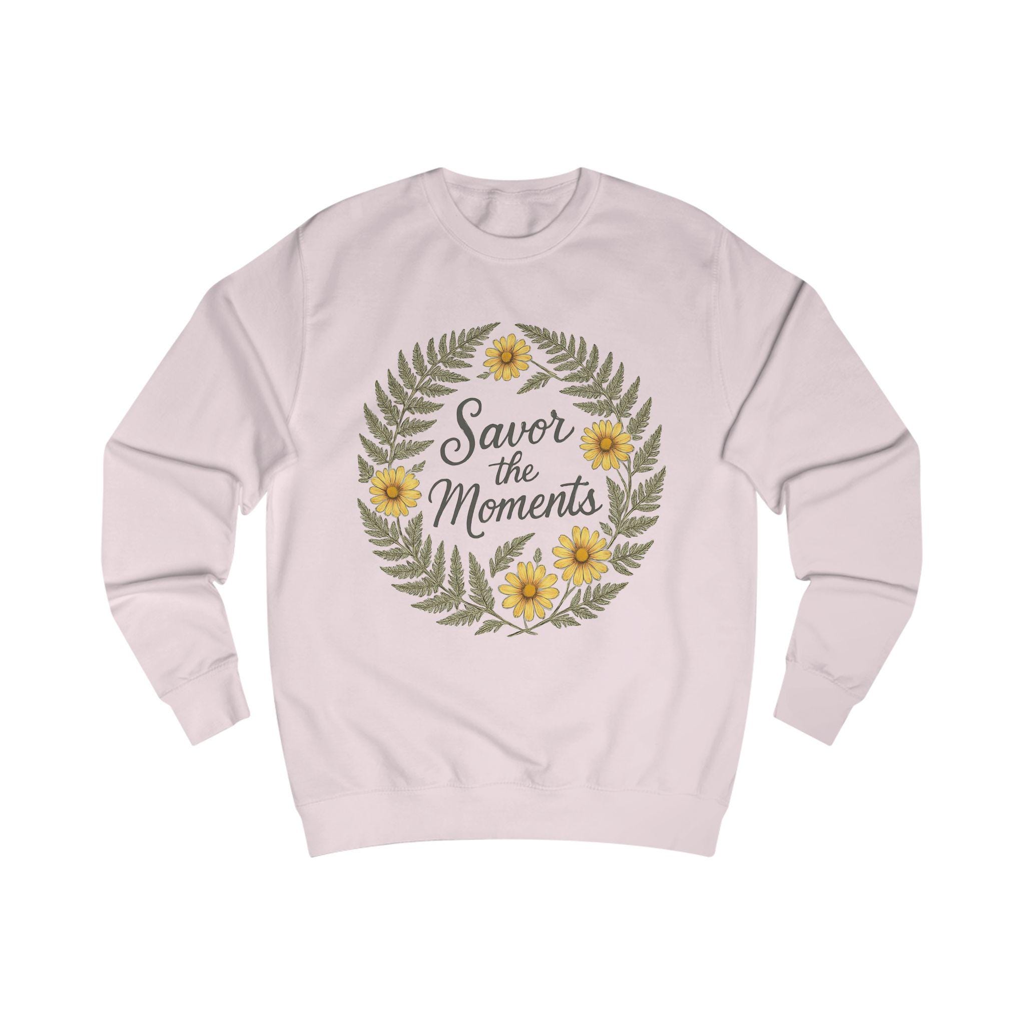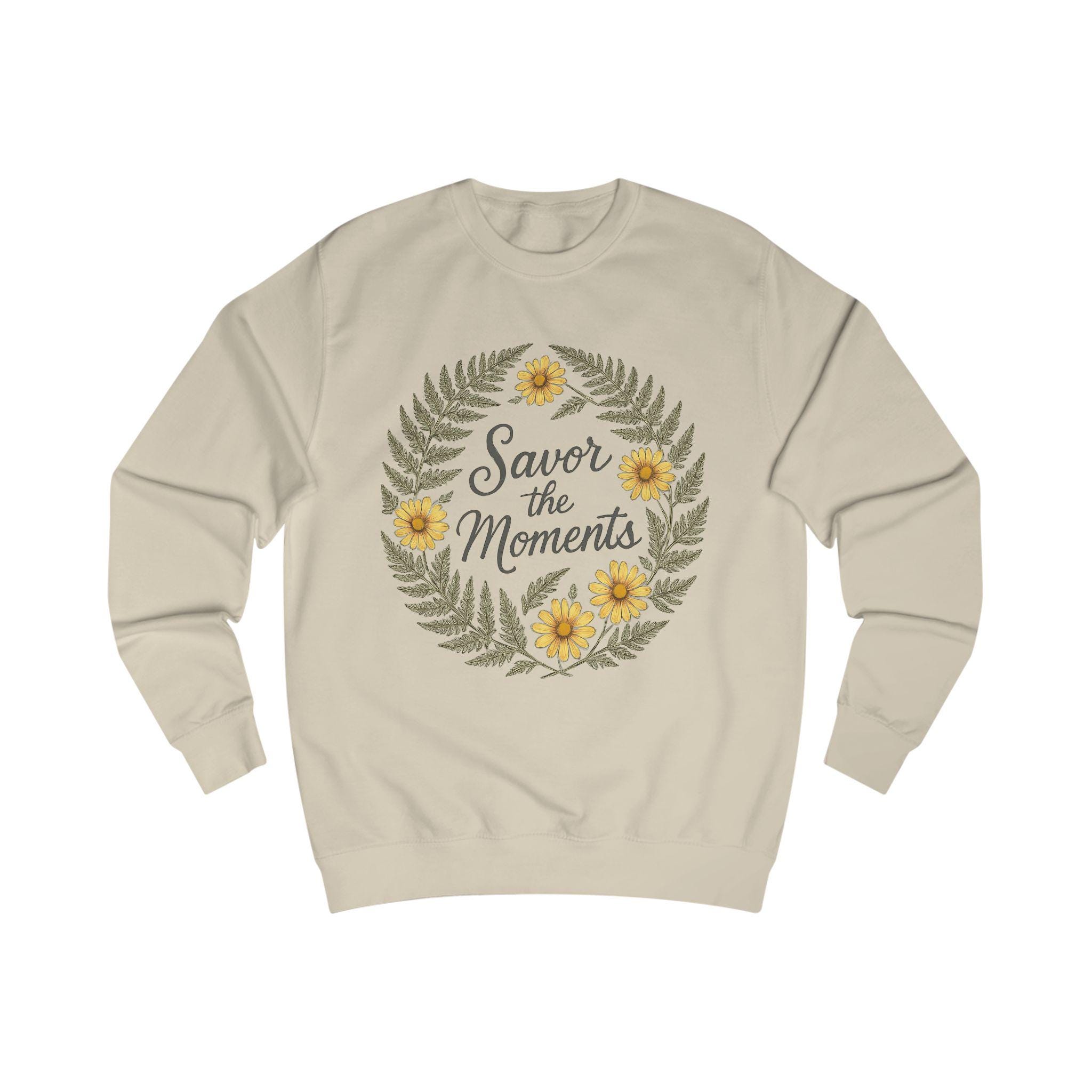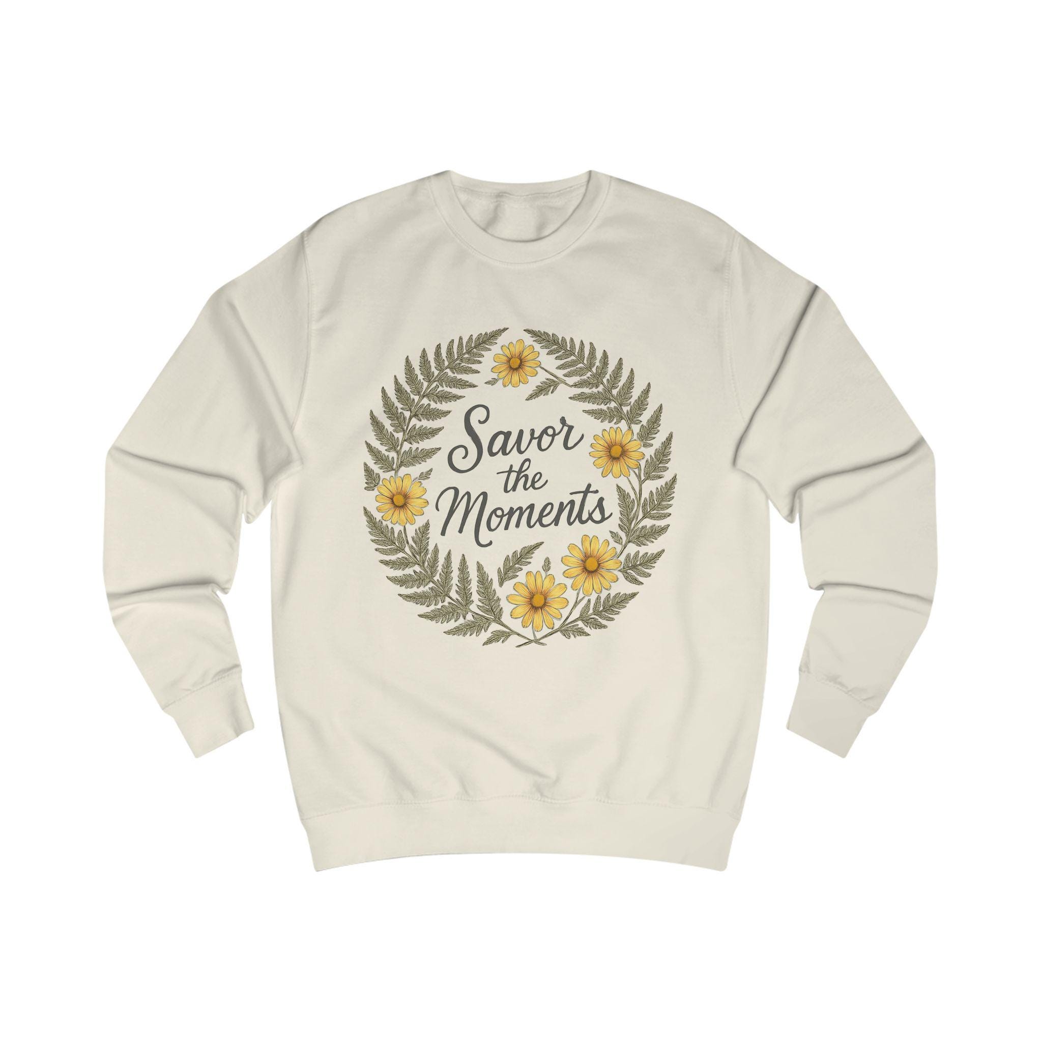 Floral Quote Sweatshirt: - Cozy Unisex Fit "Savor the Moments"