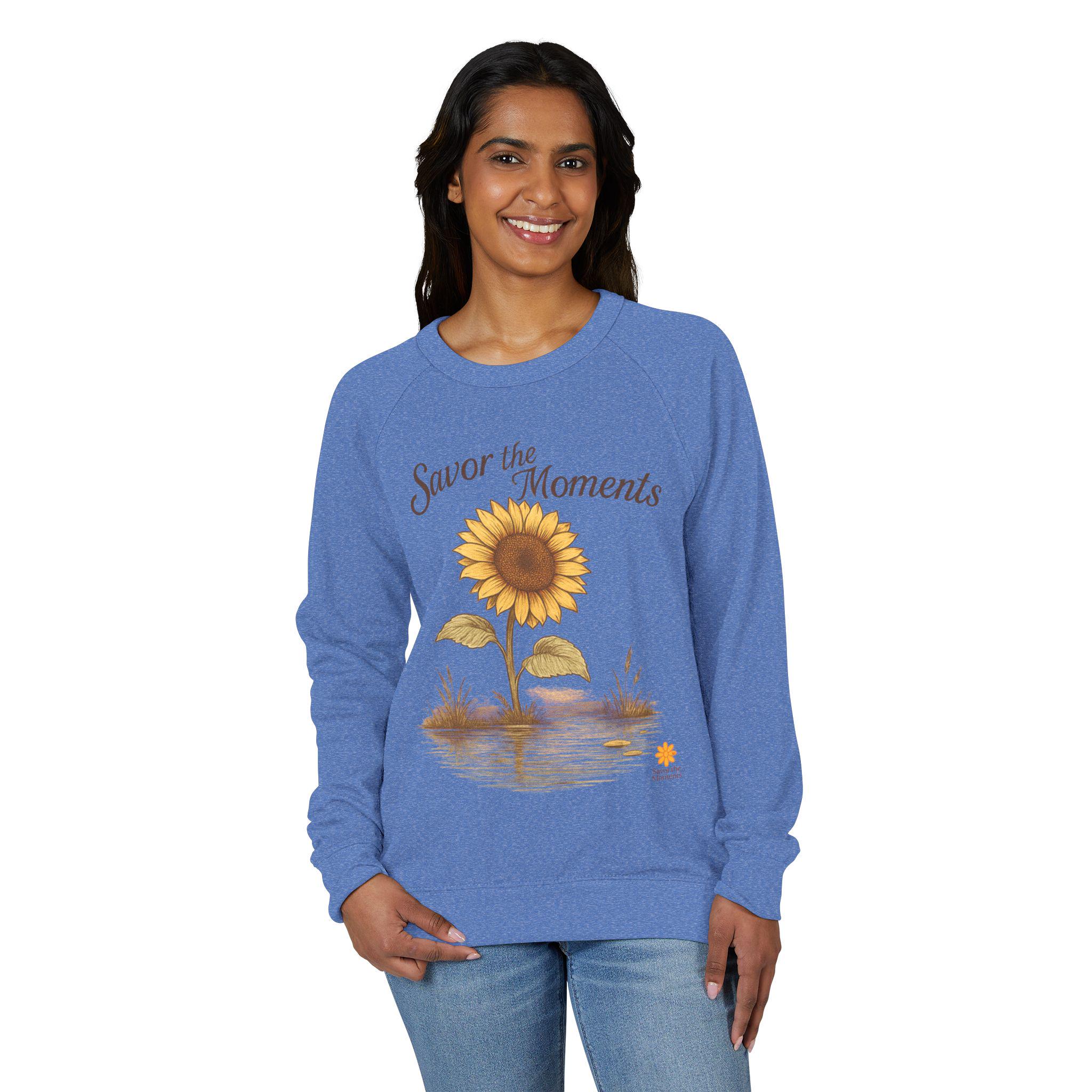Embrace comfort and style with this Unisex French Terry Raglan Crewneck. Perfect for cozy evenings or casual days out, this crewneck creates a relaxed vibe, making it an ideal addition to any wardrobe. Its unique design features a charming sunflower graphic with the phrase "Savor the Moments," inviting wearers to cherish every day. Designed for adults, this crewneck can be a thoughtful gift for anyone who appreciates comfort and a touch of artistry—ideal for birthdays, Mother's Day, or just because! Whether lounging at home or meeting friends, this versatile piece is sure to become a favorite. Celebrate moments and boost your everyday style with this lovely, meaningful crewneck.