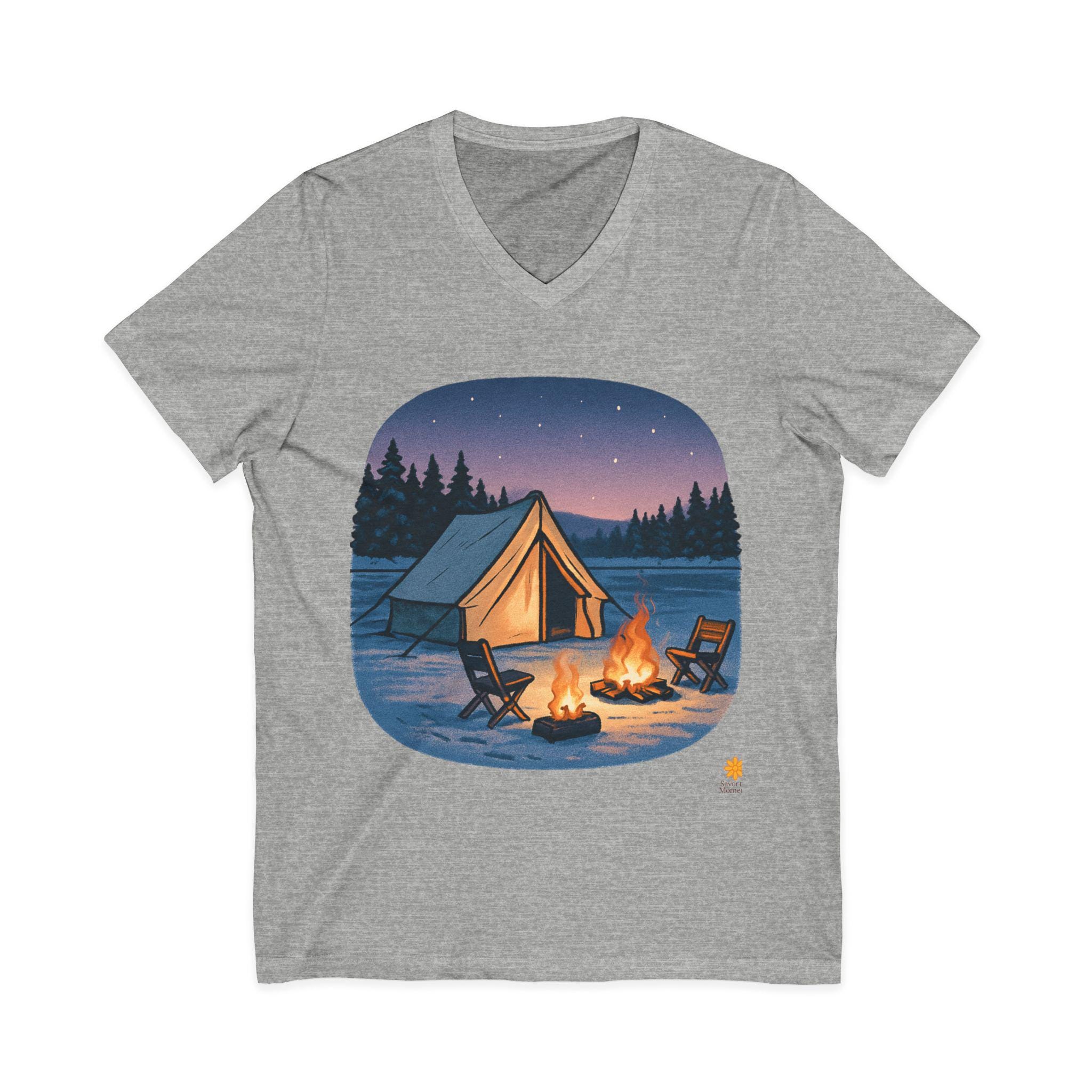 Introducing our Unisex Jersey Short Sleeve V-Neck Tee, perfect for adding a touch of festive cheer to your wardrobe! This airy, lightweight t-shirt is designed for comfort and style, making it an ideal choice for year-round wear. The beautiful wreath design, adorned with holiday greenery and berries, invites a cozy, joyful vibe, perfect for celebrating seasonal gatherings and making memories with loved ones.