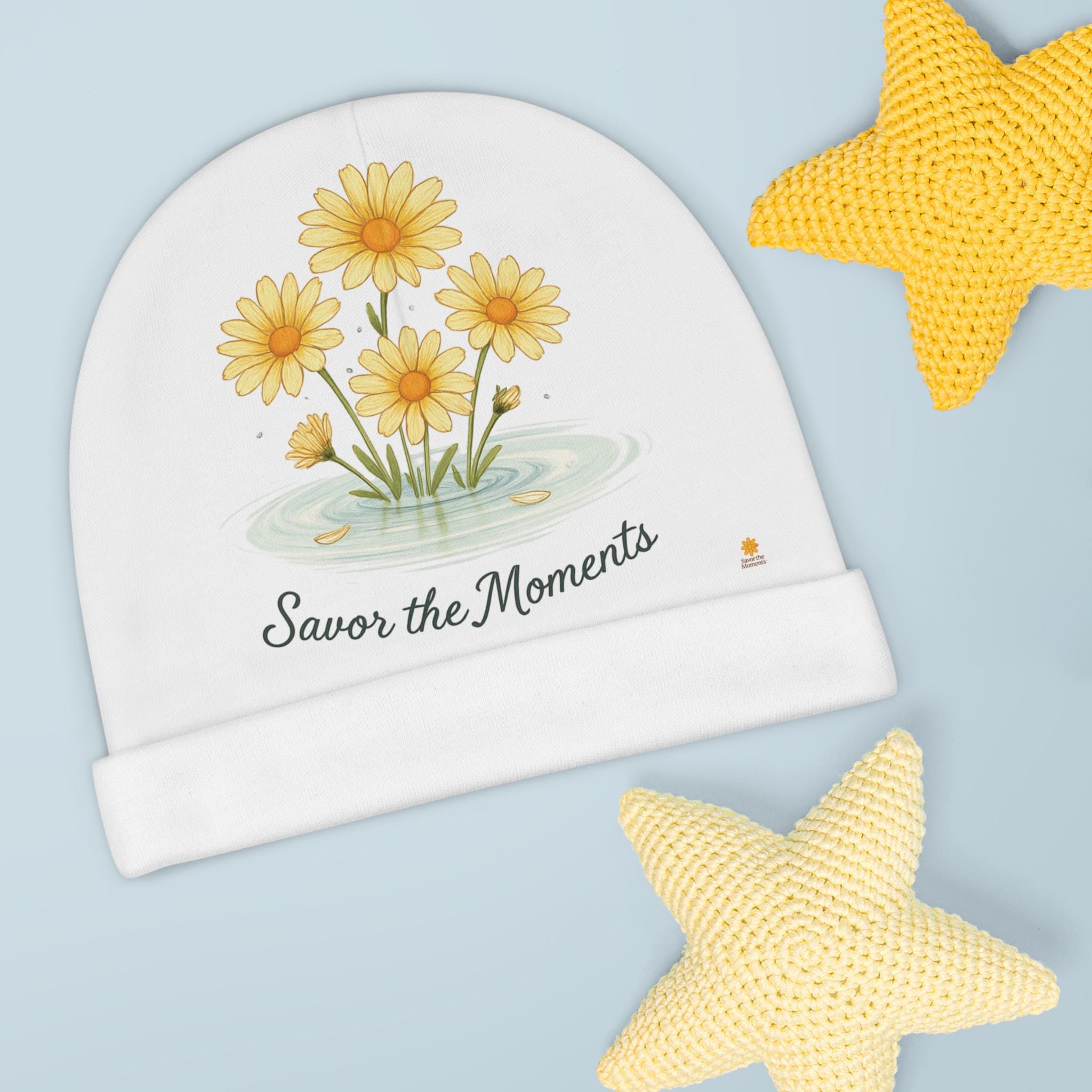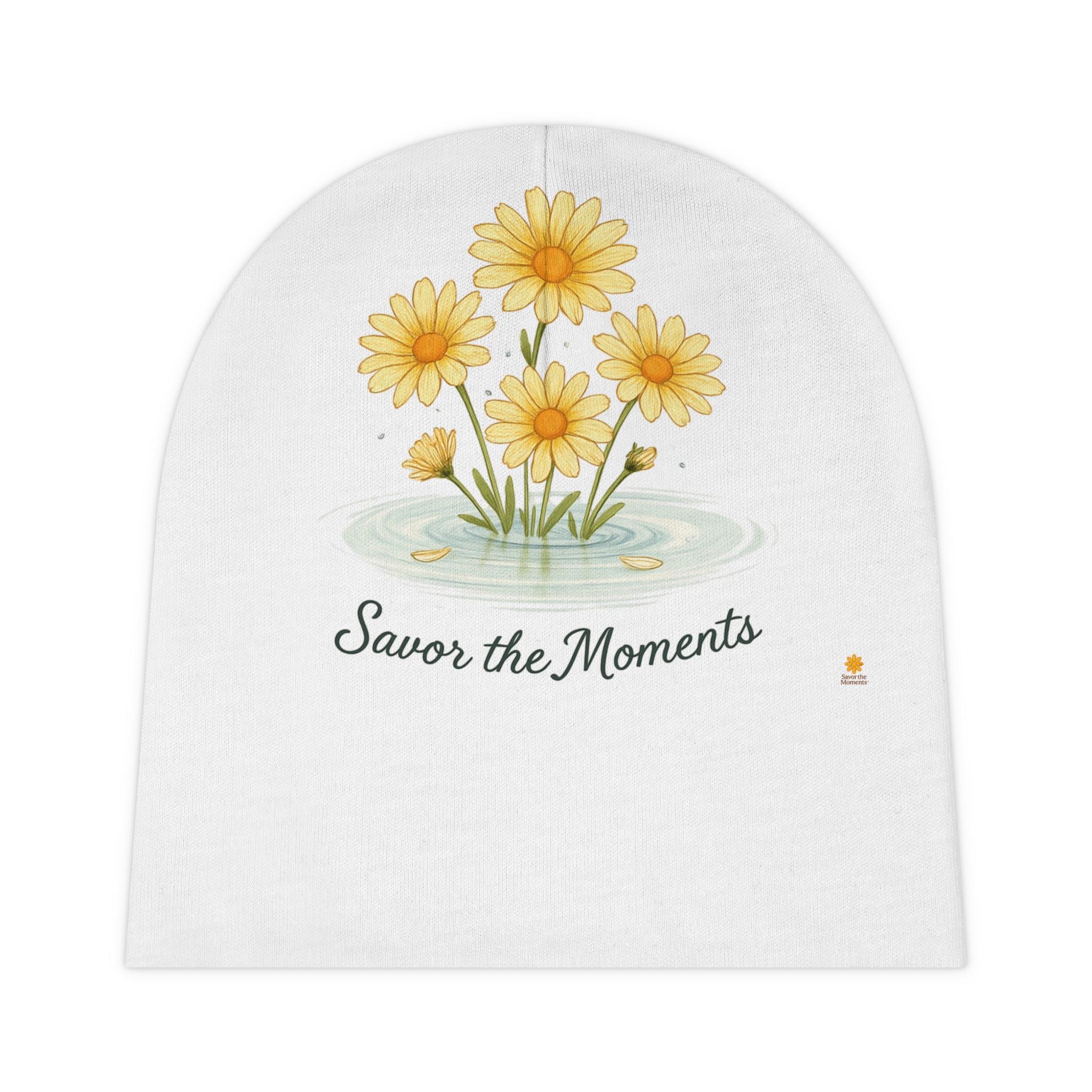 Floral 'Savor the Moments' Baby Beanie: Soft Polyester Knit
