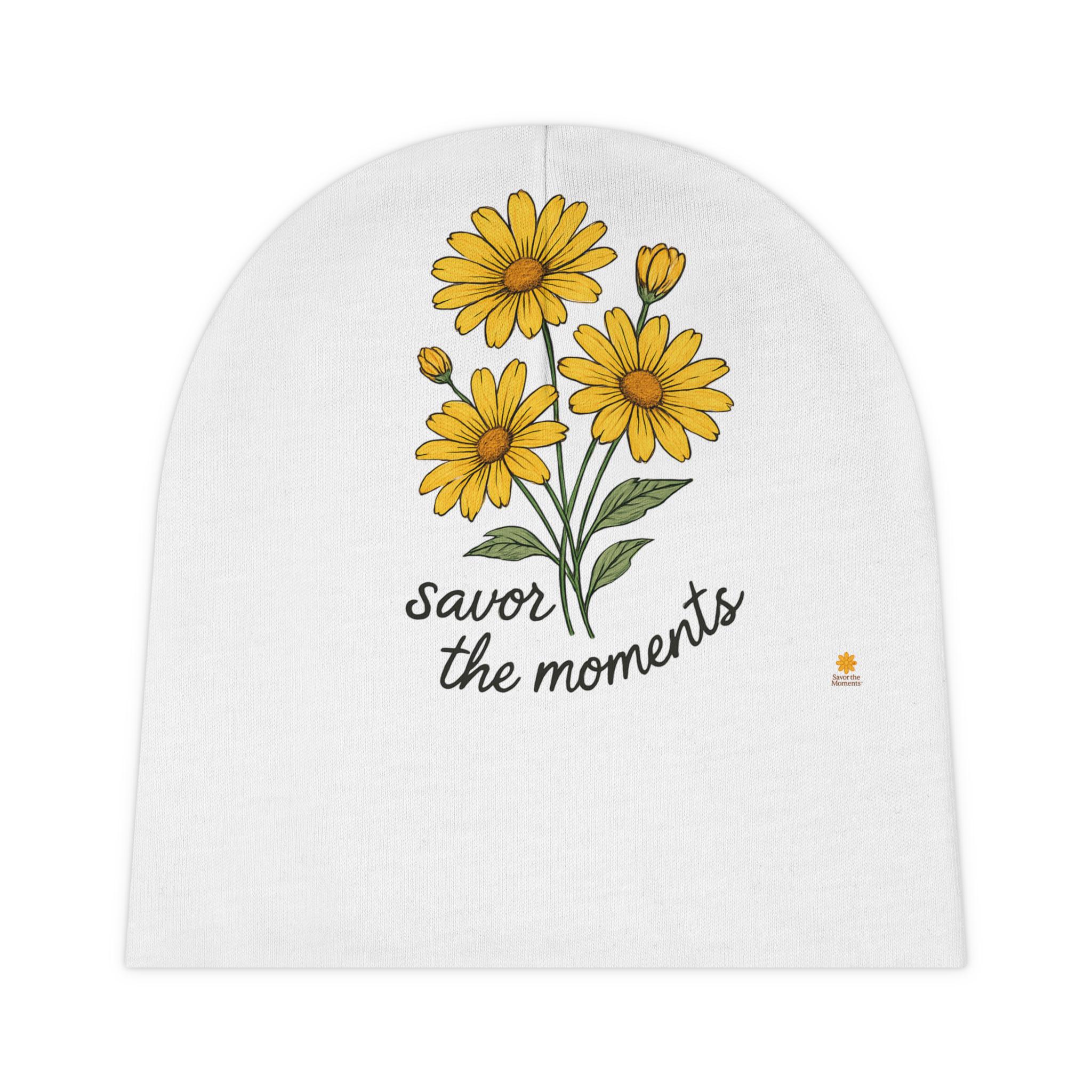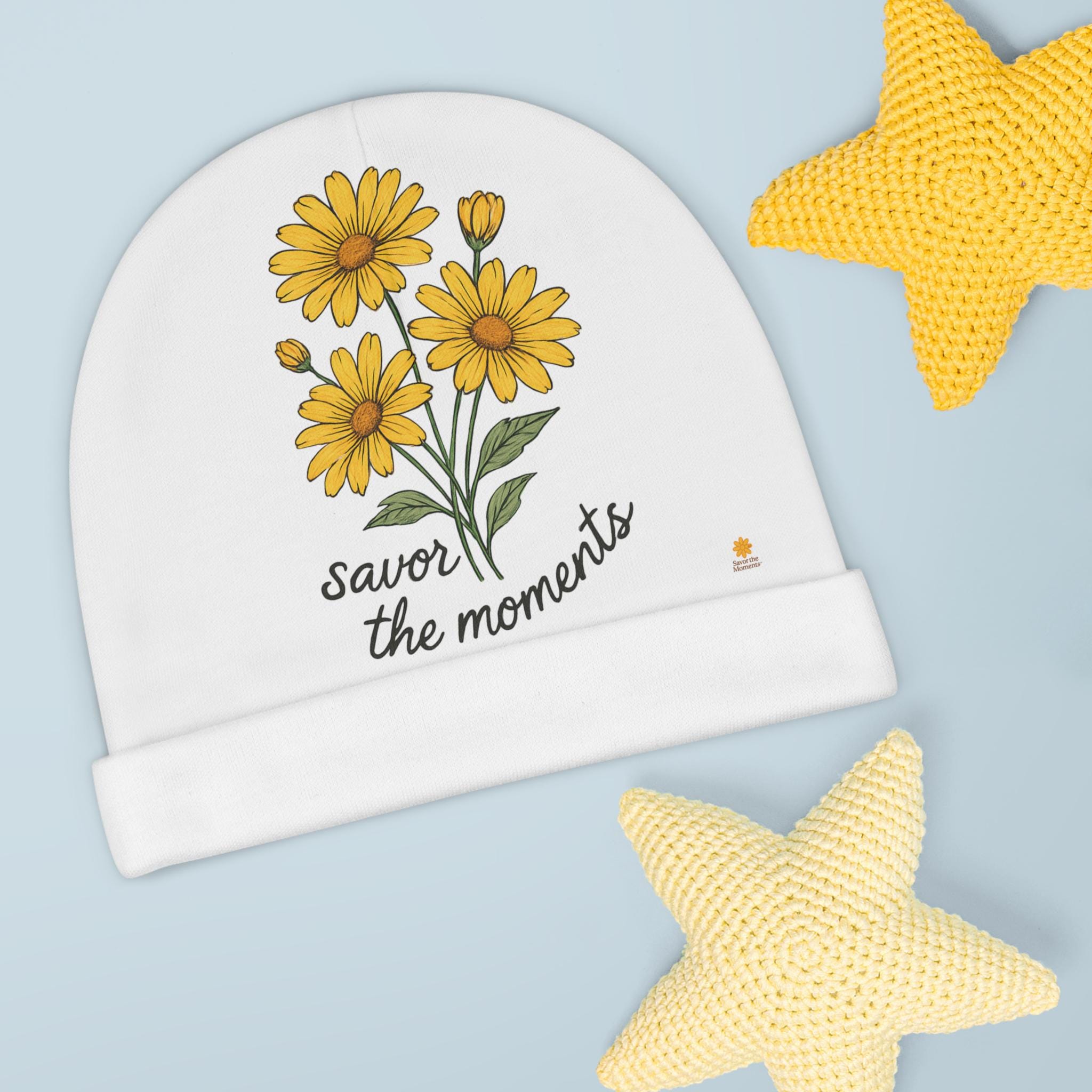 Baby Beanie - Savor the Moments, Floral Newborn Hat, Cute Baby Gift, Personalized Infant Beanie, Spring Baby Accessory