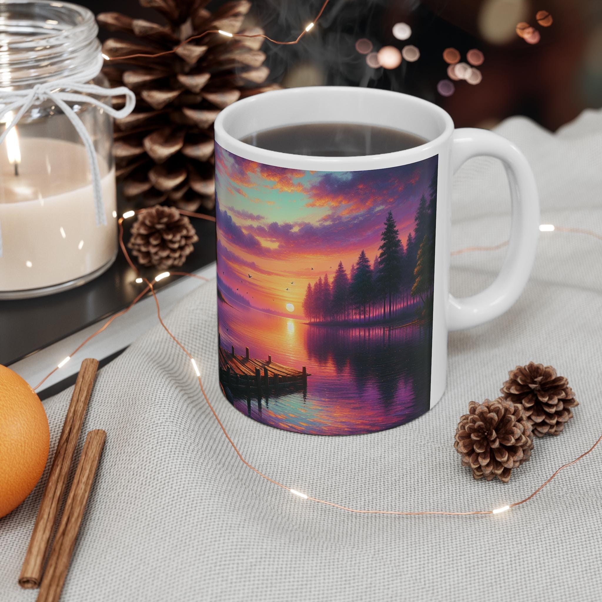 Introducing a stunning White Ceramic Mug that transforms your drinking experience into a vibrant moment of joy. With its eye-catching, colorful design, this mug captures the essence of serene sunsets, making it not just a beverage holder, but a piece of art that brightens your day. Perfect for coffee lovers, tea enthusiasts, and anyone who appreciates beautiful craftsmanship, this mug fits seamlessly into any kitchen or home office setting. Enjoy your favorite beverages during chilly winter mornings, cozy evenings by the fire, or even festive gatherings with friends and family. This lovely ceramic piece makes a thoughtful gift for holidays, birthdays, or just because. Brighten someone’s day!