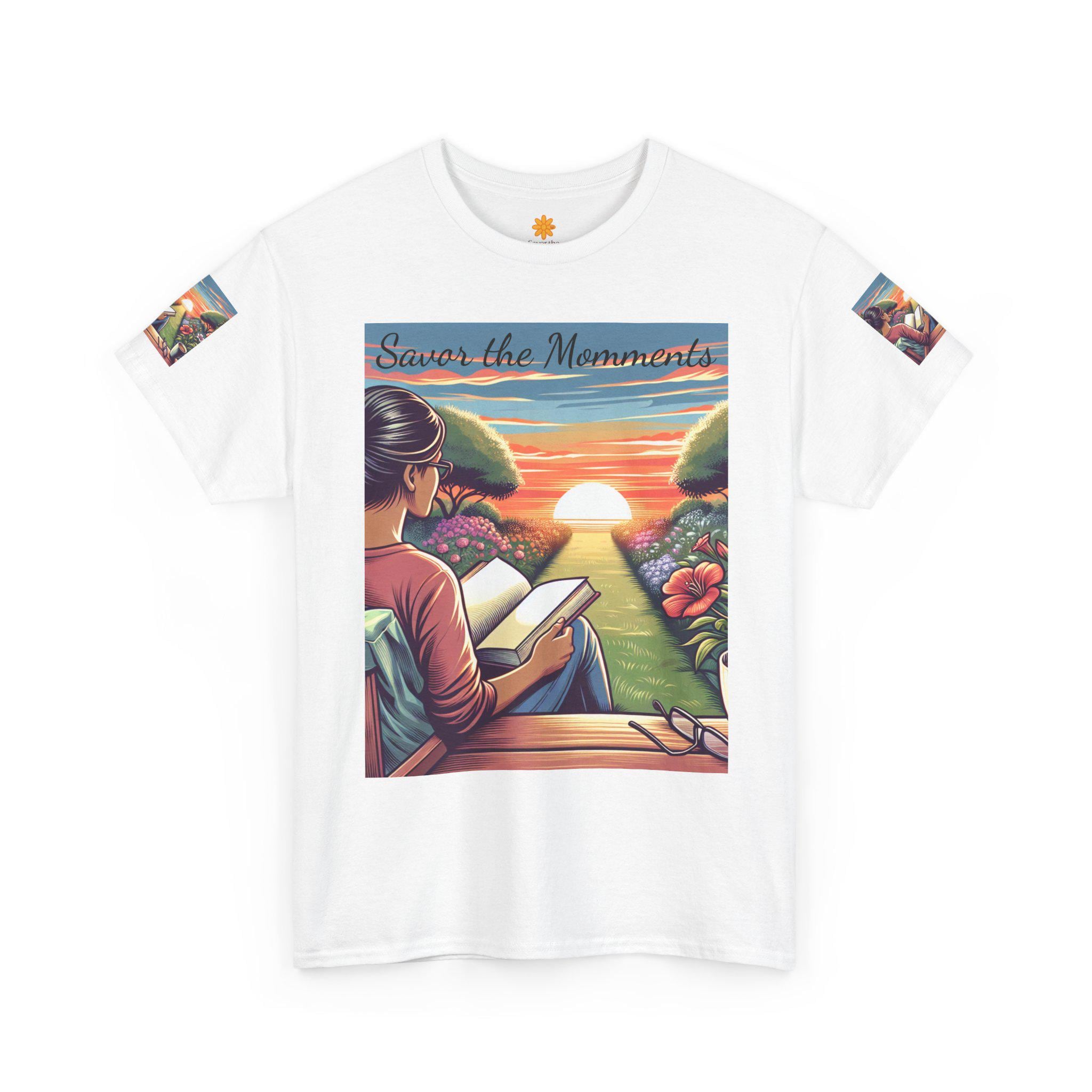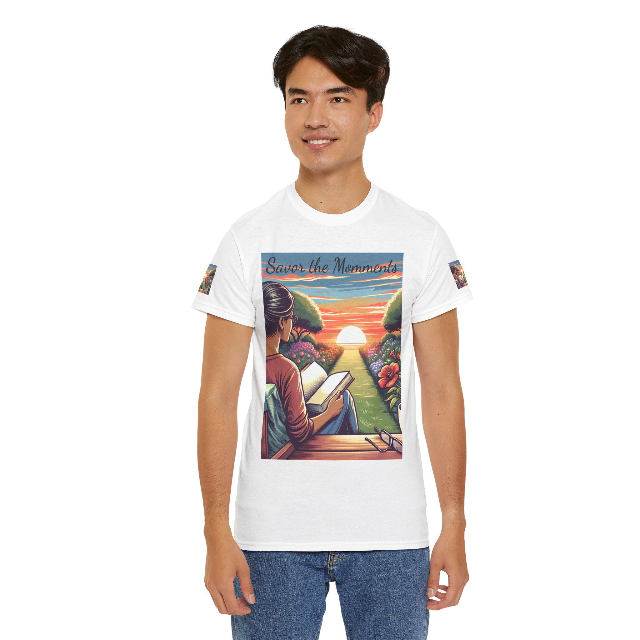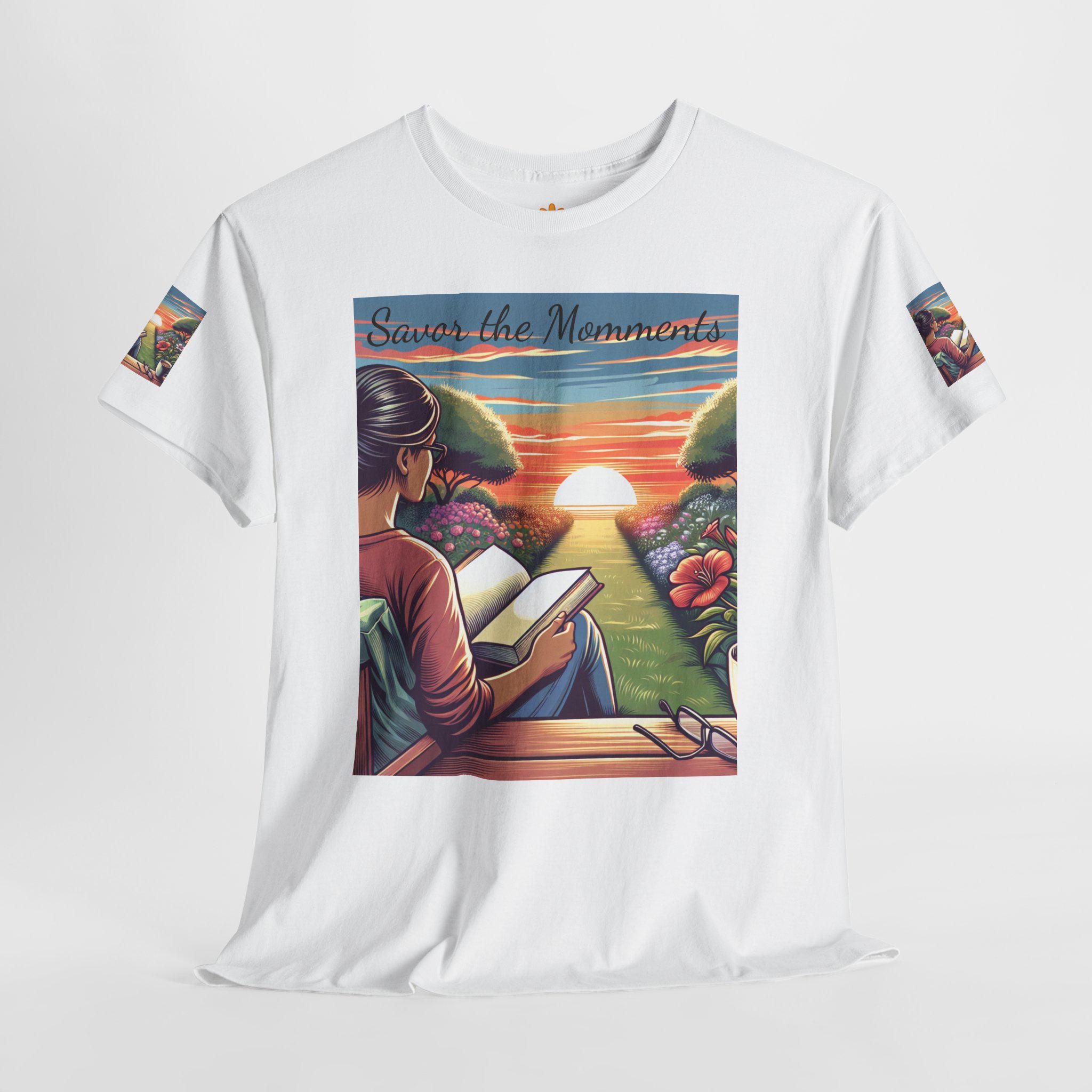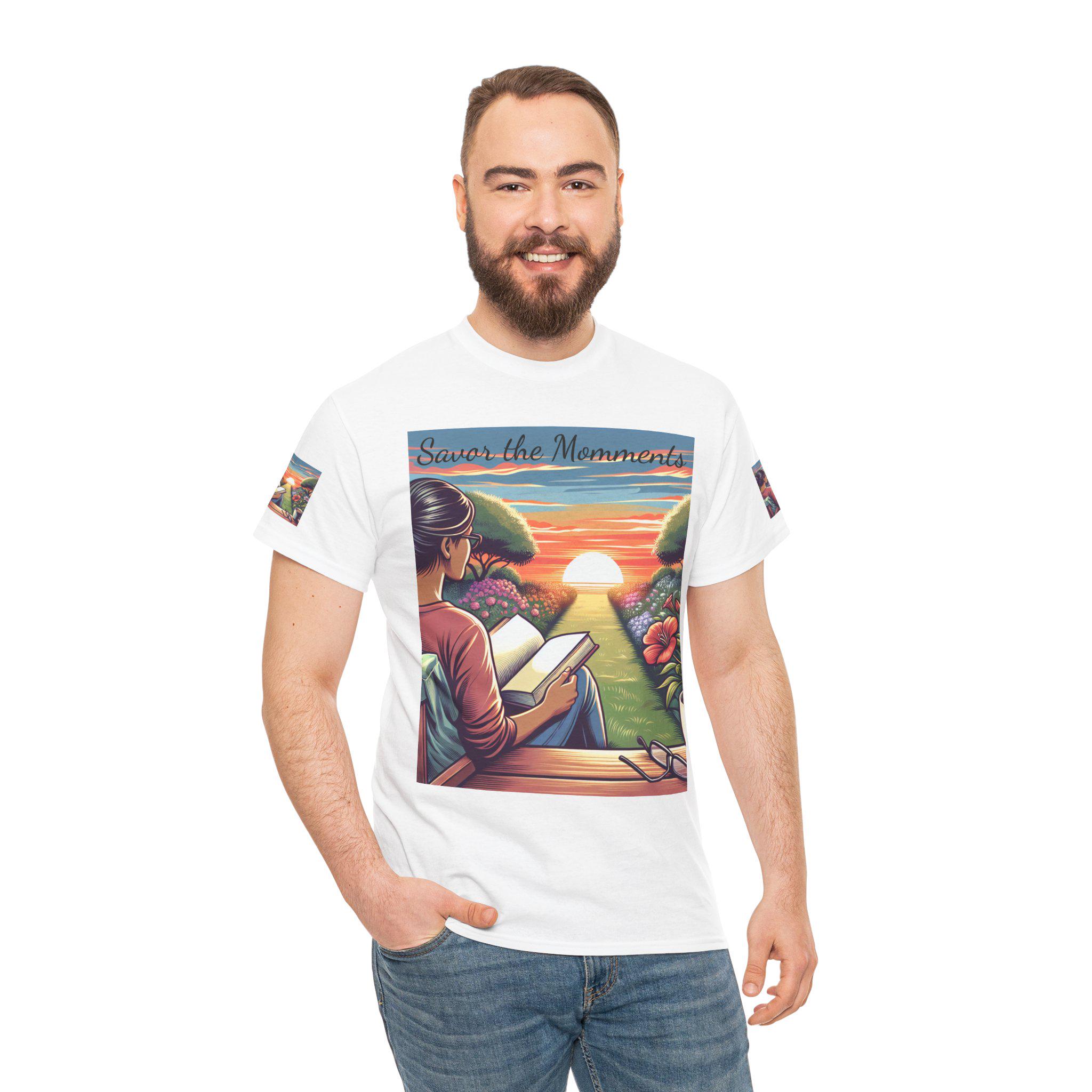 Introducing our Unisex Heavy Cotton Tee, a perfect blend of comfort and style that captures the essence of serenity. This tee features a beautiful print that evokes feelings of nostalgia and reflection, making it an ideal choice for anyone who cherishes moments of peace and connection with nature. Whether you’re lounging at home or meeting friends at a café, this shirt adds a relaxed yet timeless vibe to your wardrobe. It's perfect for readers, nature lovers, or anyone who enjoys quiet moments. Celebrate occasions like Earth Day, casual get-togethers, or simply a cozy night in with loved ones. Designed for adults, it offers a versatile fit that seamlessly transitions from casual outings to cozy nights, making it a great gift for any celebration.