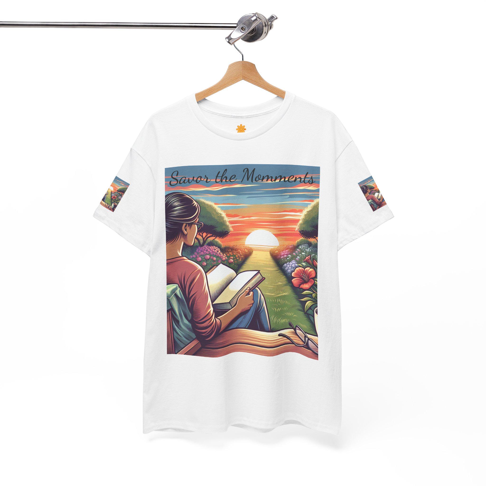 Sunset, Reading T-Shirt: Inspirational Cotton Tee for Book Lovers