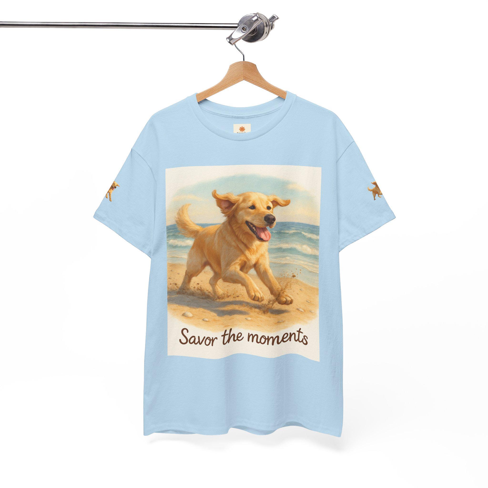 Embrace life's joyful moments with this Unisex Heavy Cotton Tee, designed to be both comfortable and stylish. The cheerful design showcases a lively dog running along the beach, inviting you to savor each precious instant. This tee is perfect for casual outings, family gatherings, or simply relaxing at home. It's ideal for dog lovers and anyone who cherishes the spirit of adventure. Celebrate special occasions like birthdays or summer outings in this unique piece, making every day feel a little more special. Its relaxed fit and classic crew neckline allow for versatile styling, making it a go-to favorite in your wardrobe.