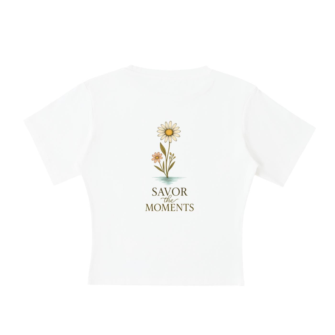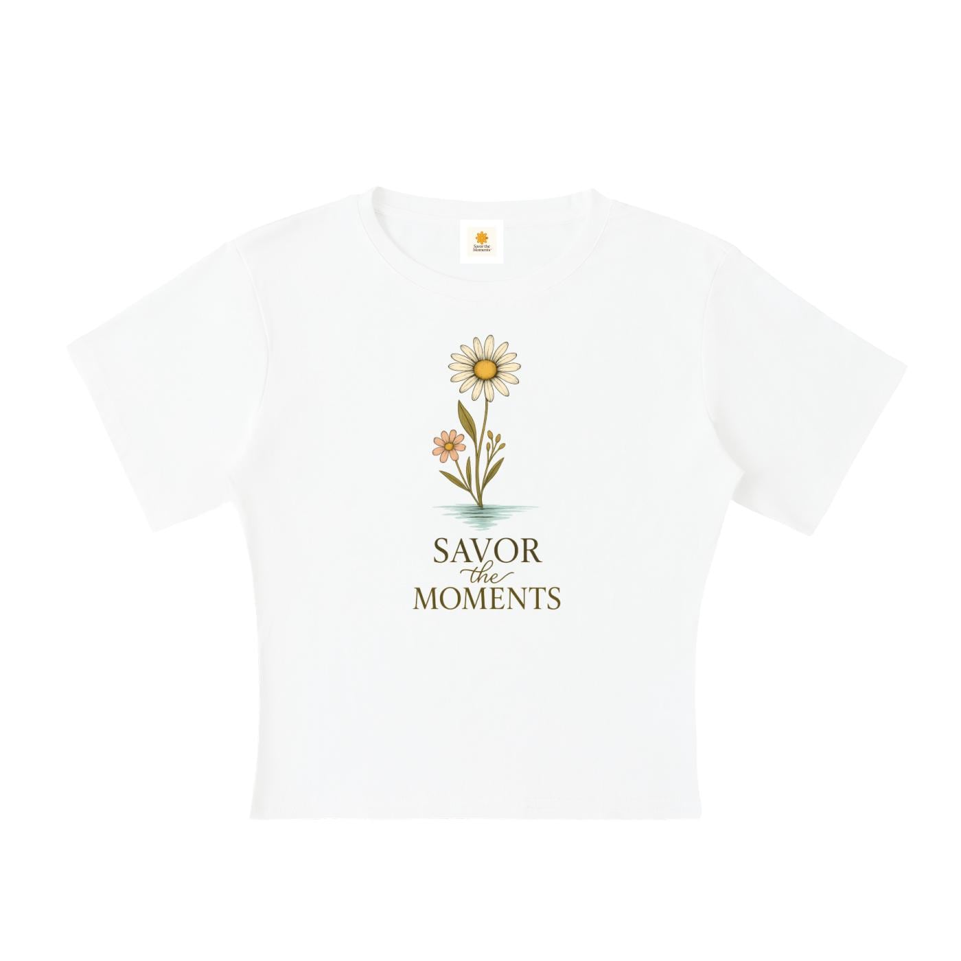 T-shirt, Daisies Yellow, Lightweight Cocoon Shape Short Sleeve Top