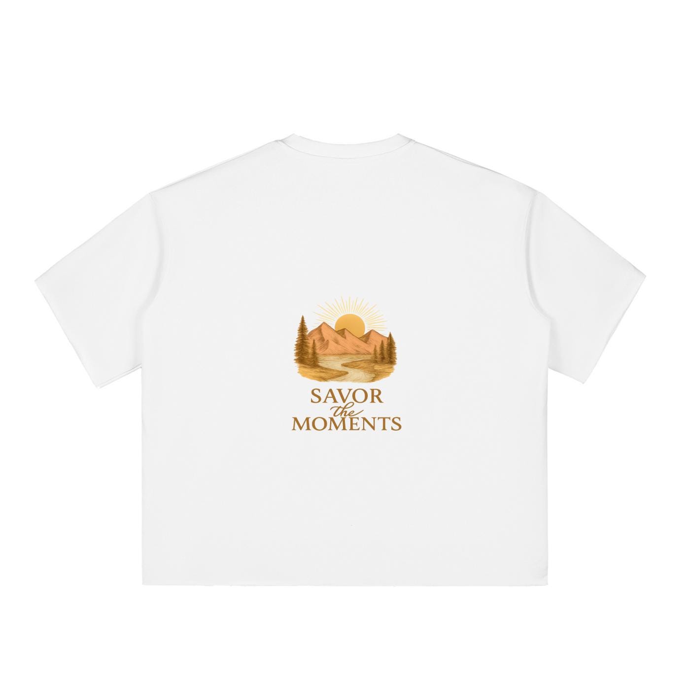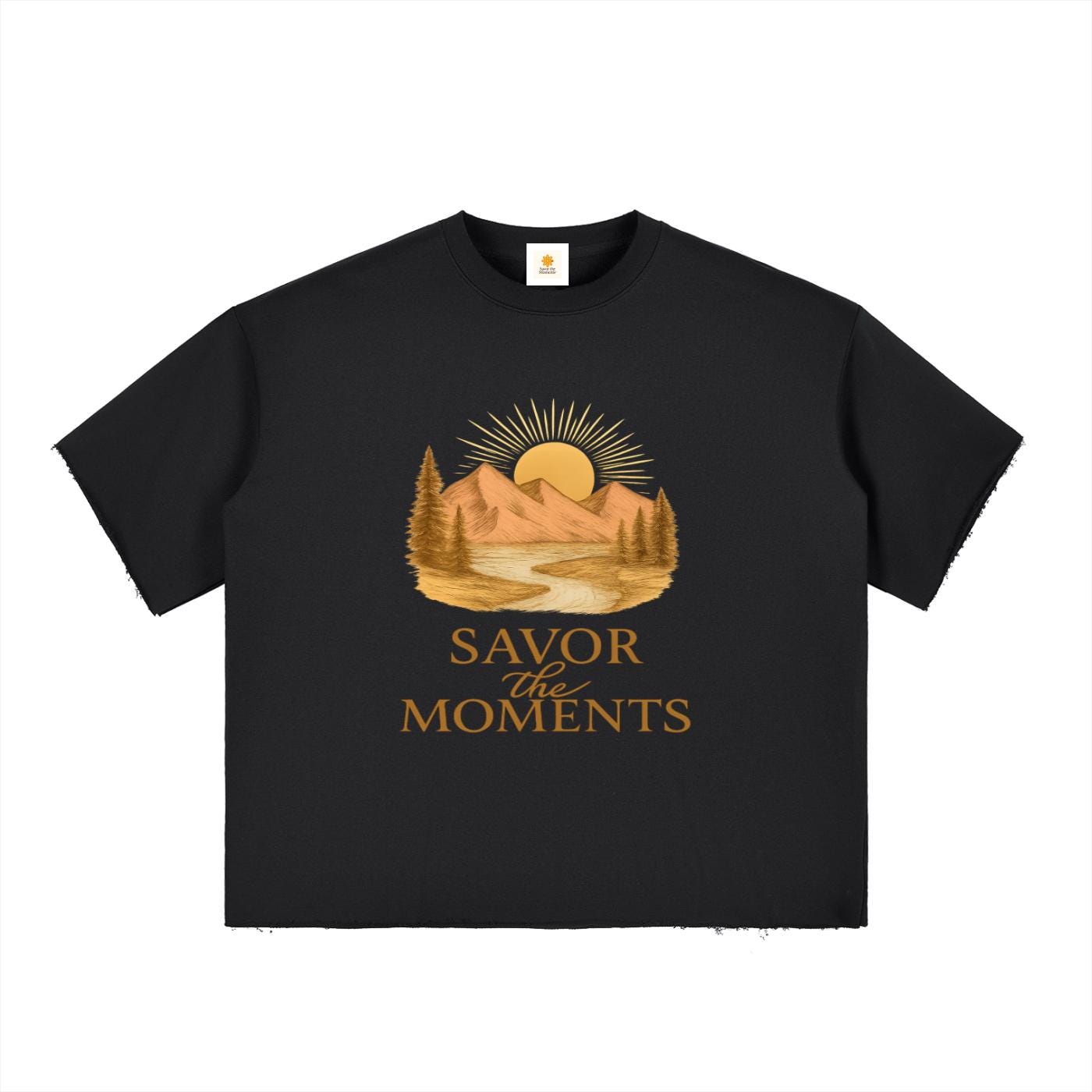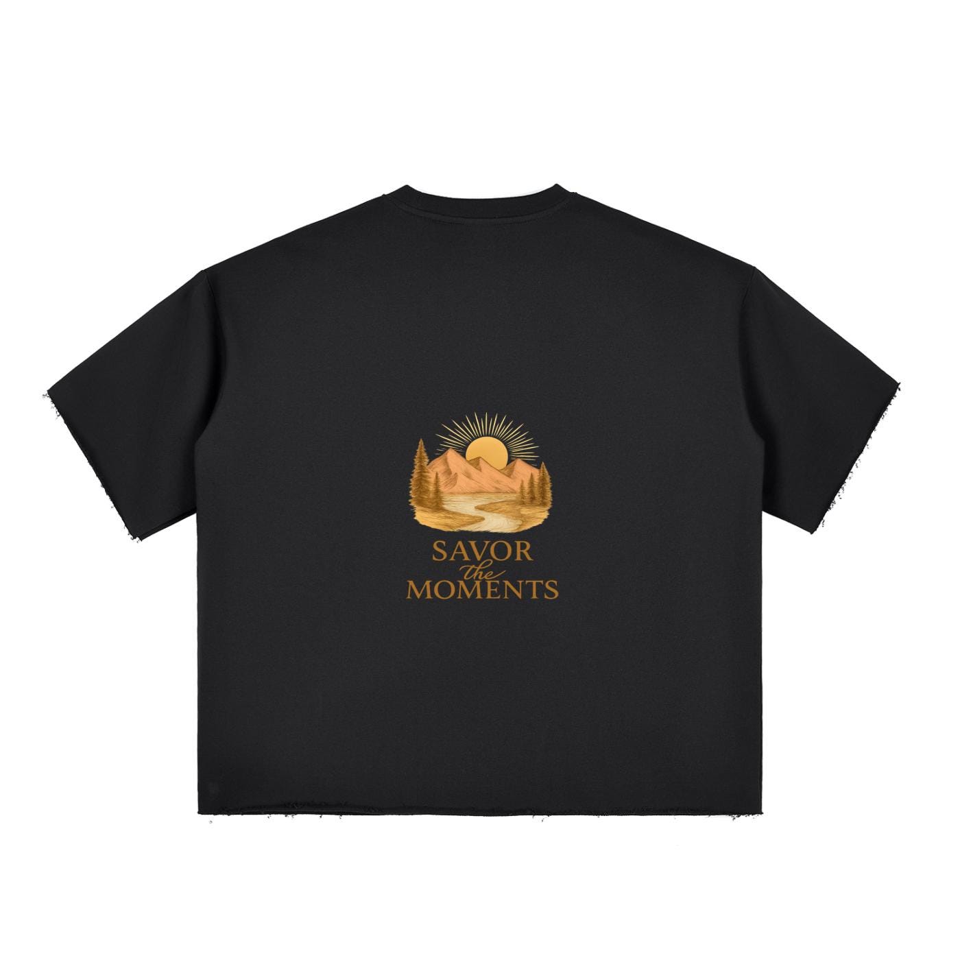 T-Shirt, Mountain, Sunset, Boxy Half-Sleeve Raw-Edge T-Shirt