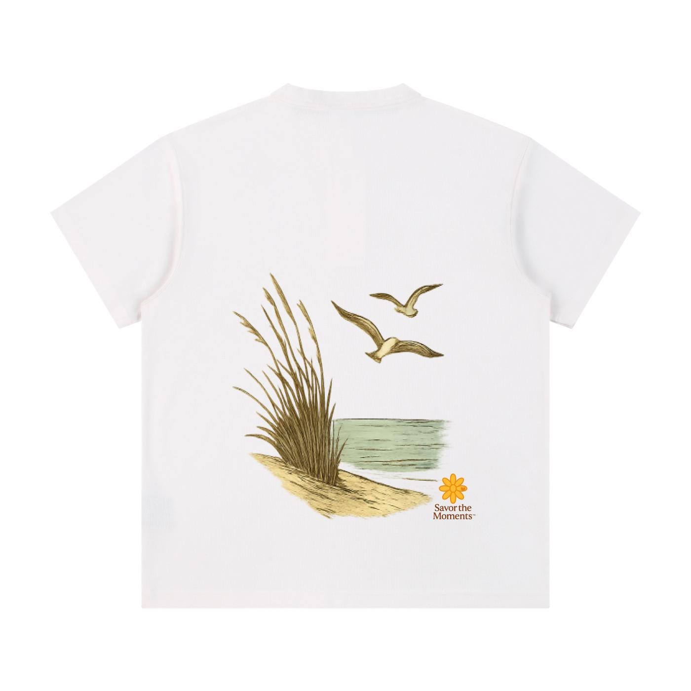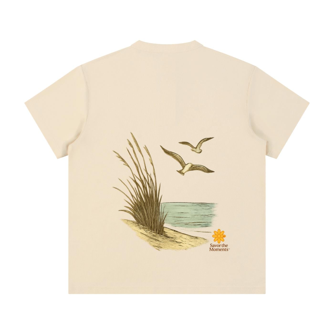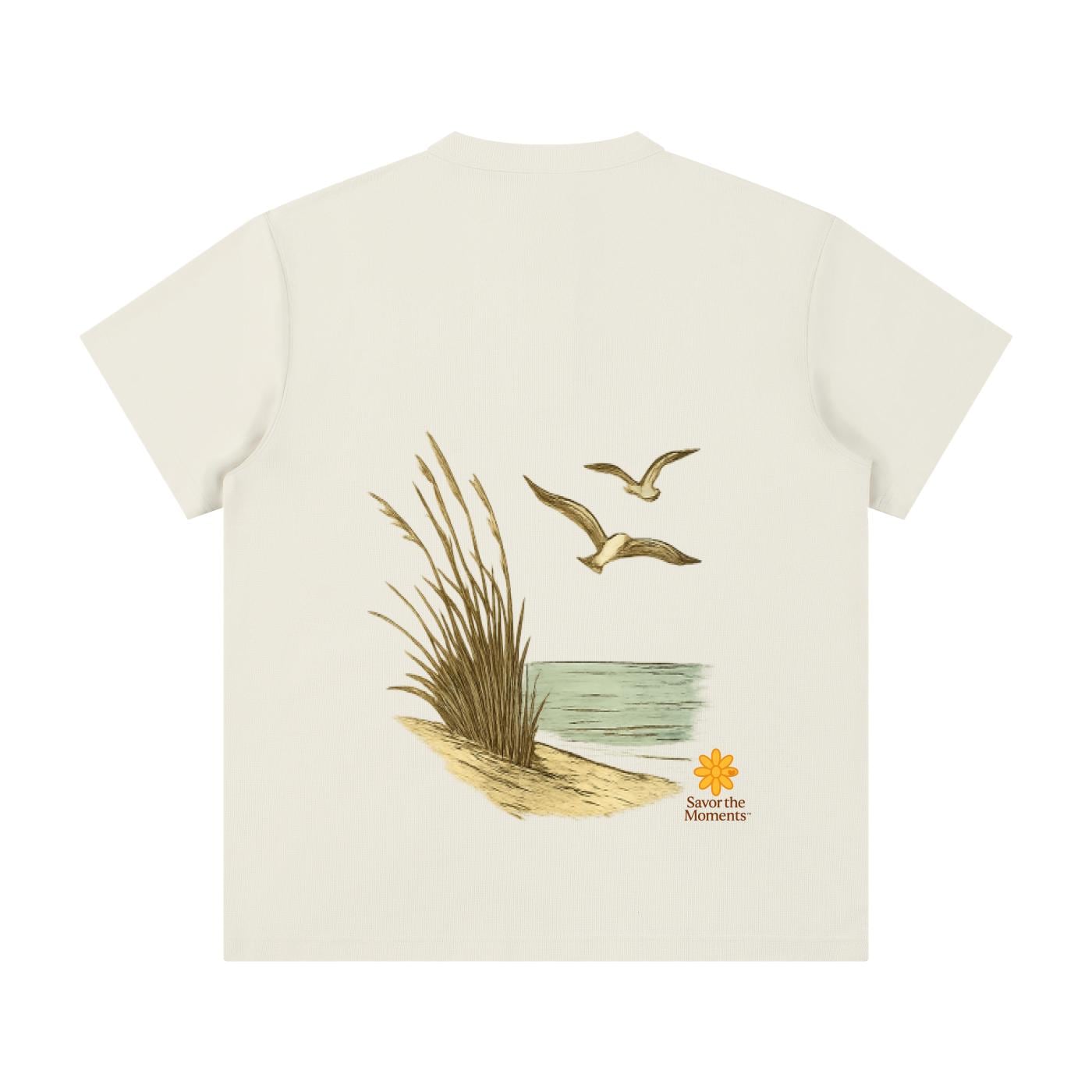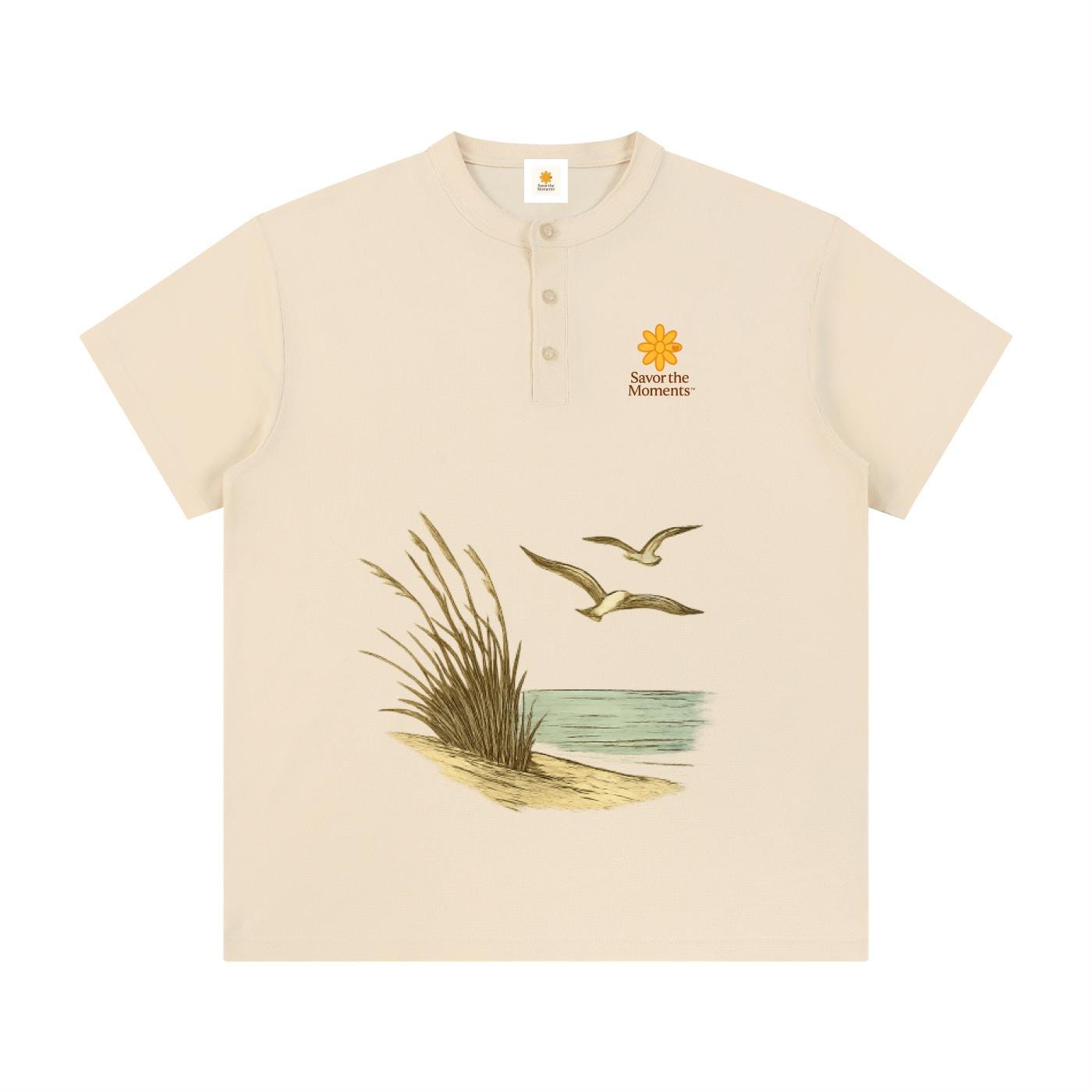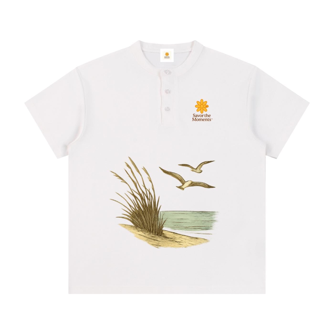 Shirt, Ocean, Sea Oats, Sea Gulls, Short Sleeve Henley Shirt