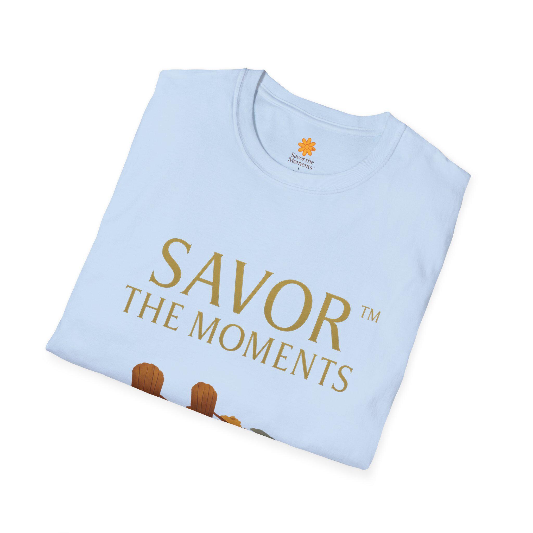 Discover the perfect blend of comfort and style with this unisex softstyle t-shirt. Designed to elevate your everyday look, it embodies a relaxed yet chic vibe, ideal for casual outings or cozy gatherings at home. The warm, inviting graphic reminds wearers to 'Savor the Moments', making it an excellent choice for those who appreciate life's little joys. Perfect for everyone, especially friends and family who cherish quality time together, this shirt is a thoughtful gift for holidays, birthdays, or just because. Celebrate togetherness during events like Thanksgiving or summer barbecues with this versatile piece.