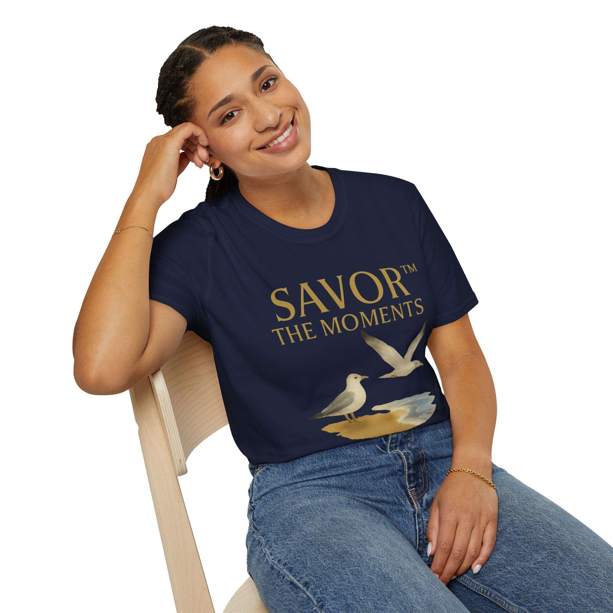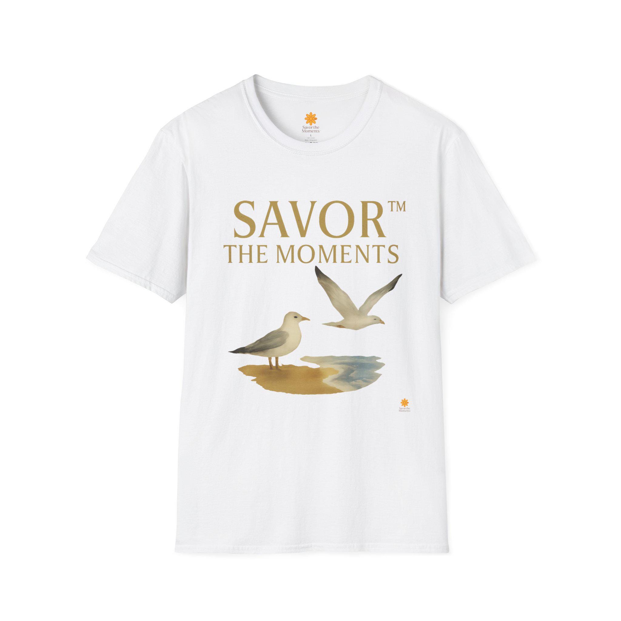 Savor the Moments T-Shirt: Beach Seagulls Unisex Tee