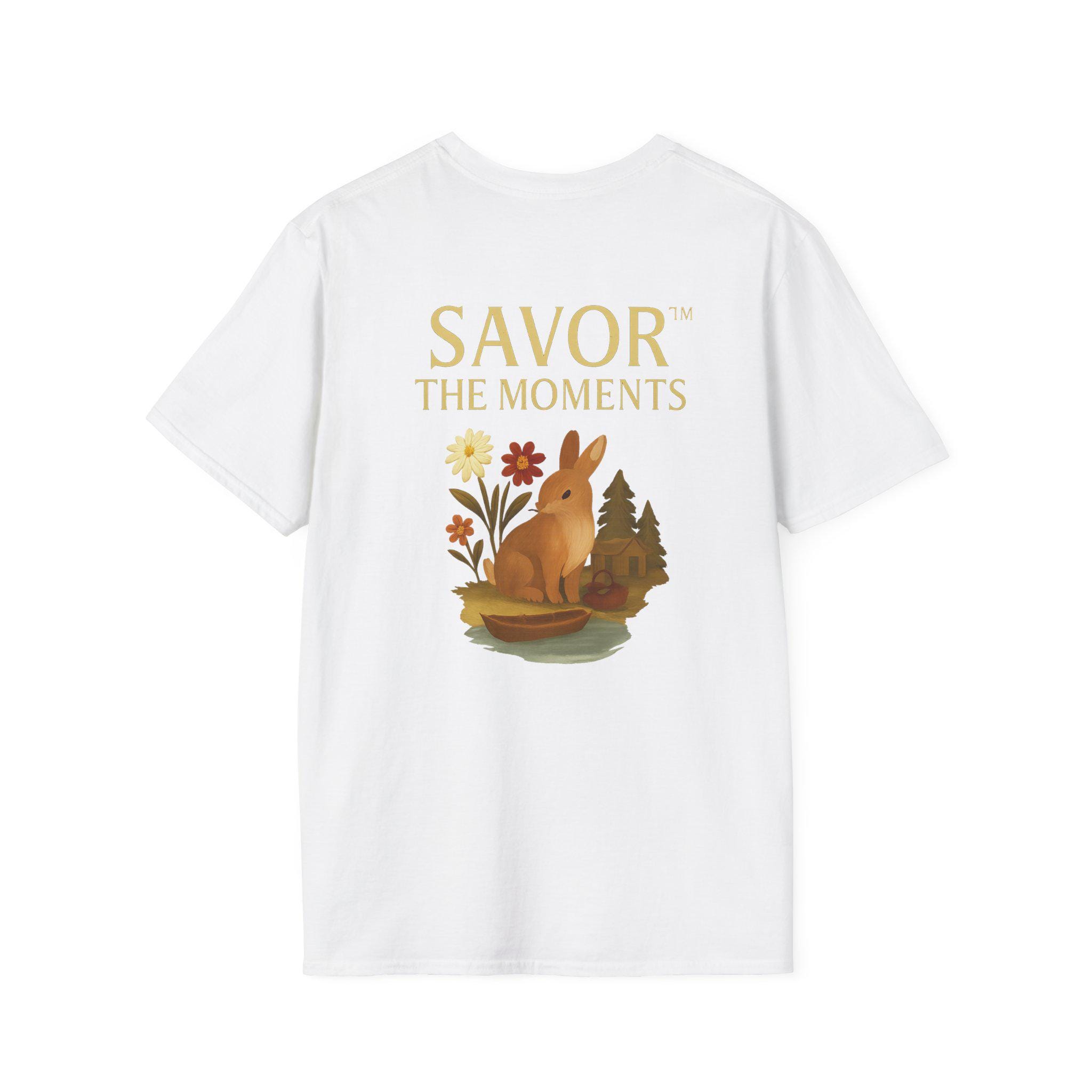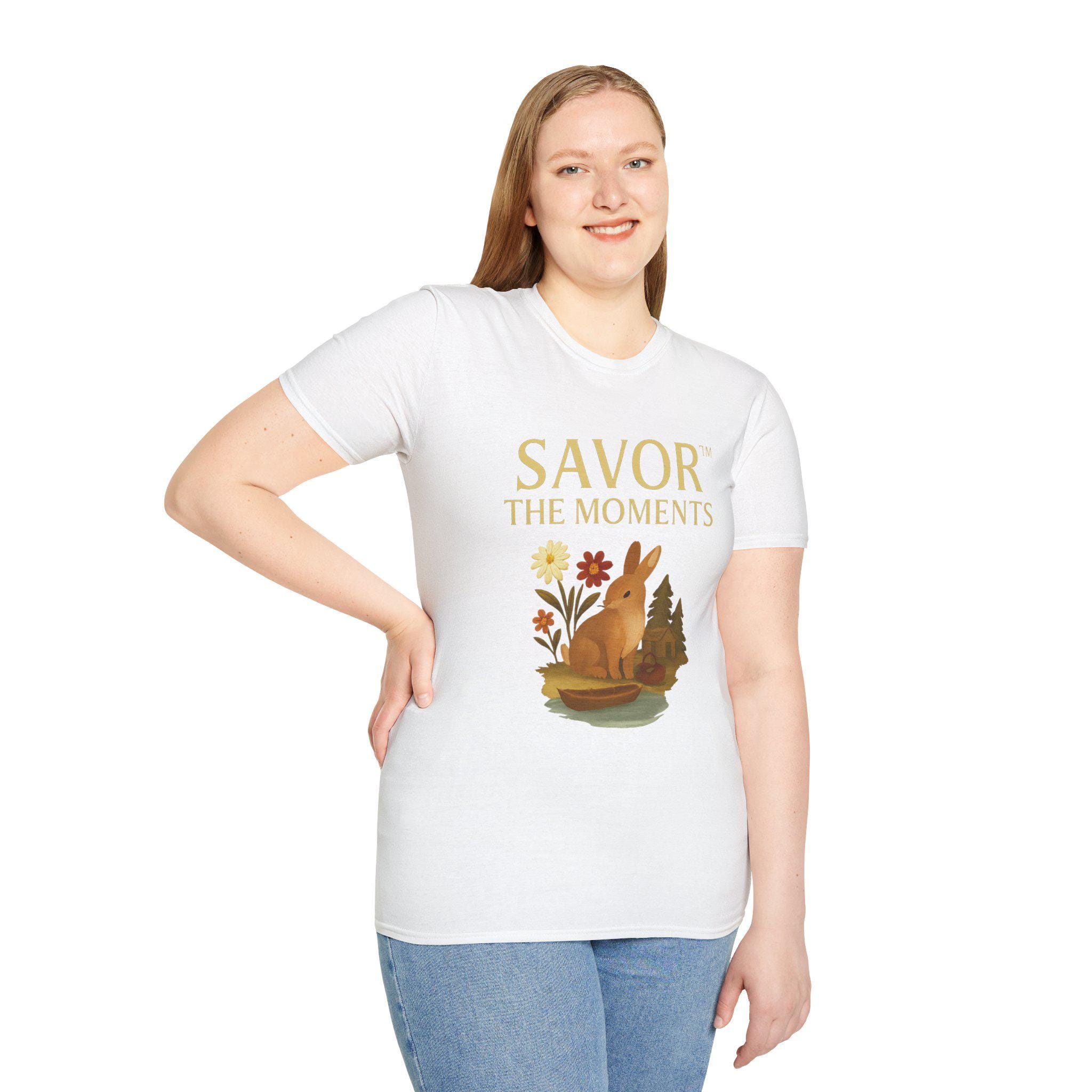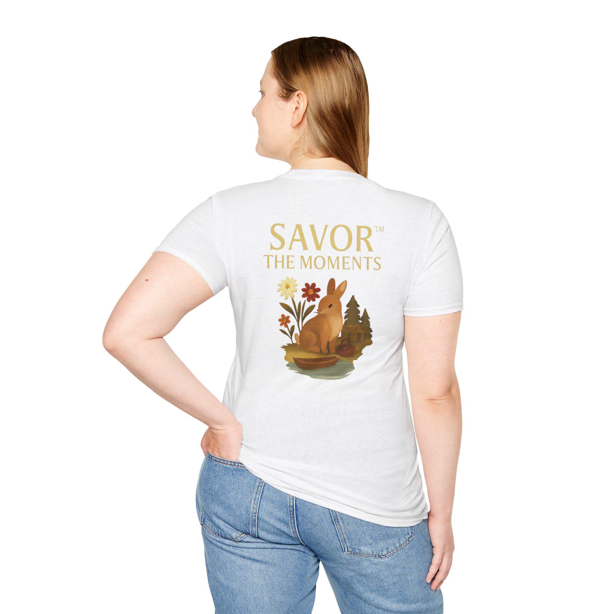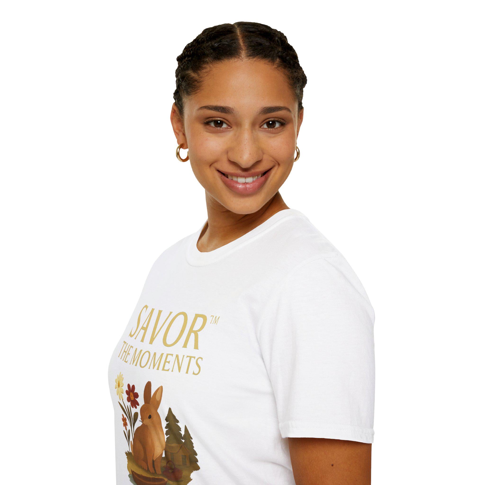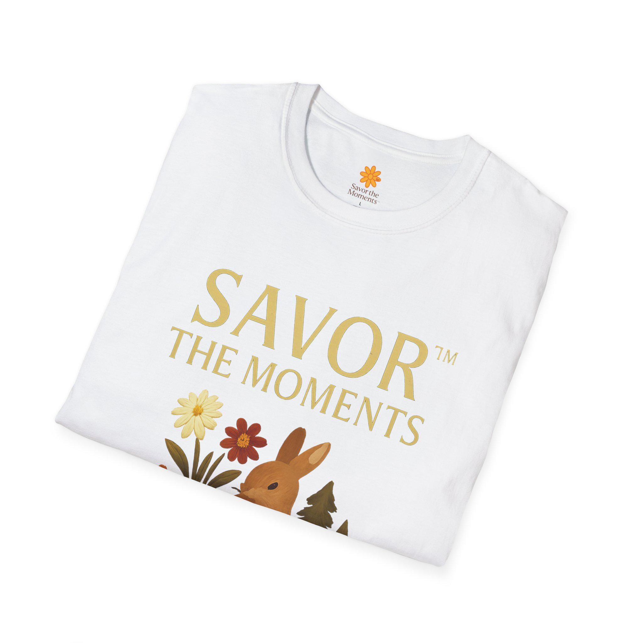 Savor the Moments Unisex T-Shirt, Nature Lovers Gift, Spring Apparel, Easter Outfit, Wildlife Scene Shirt, Cute Rabbit Tee