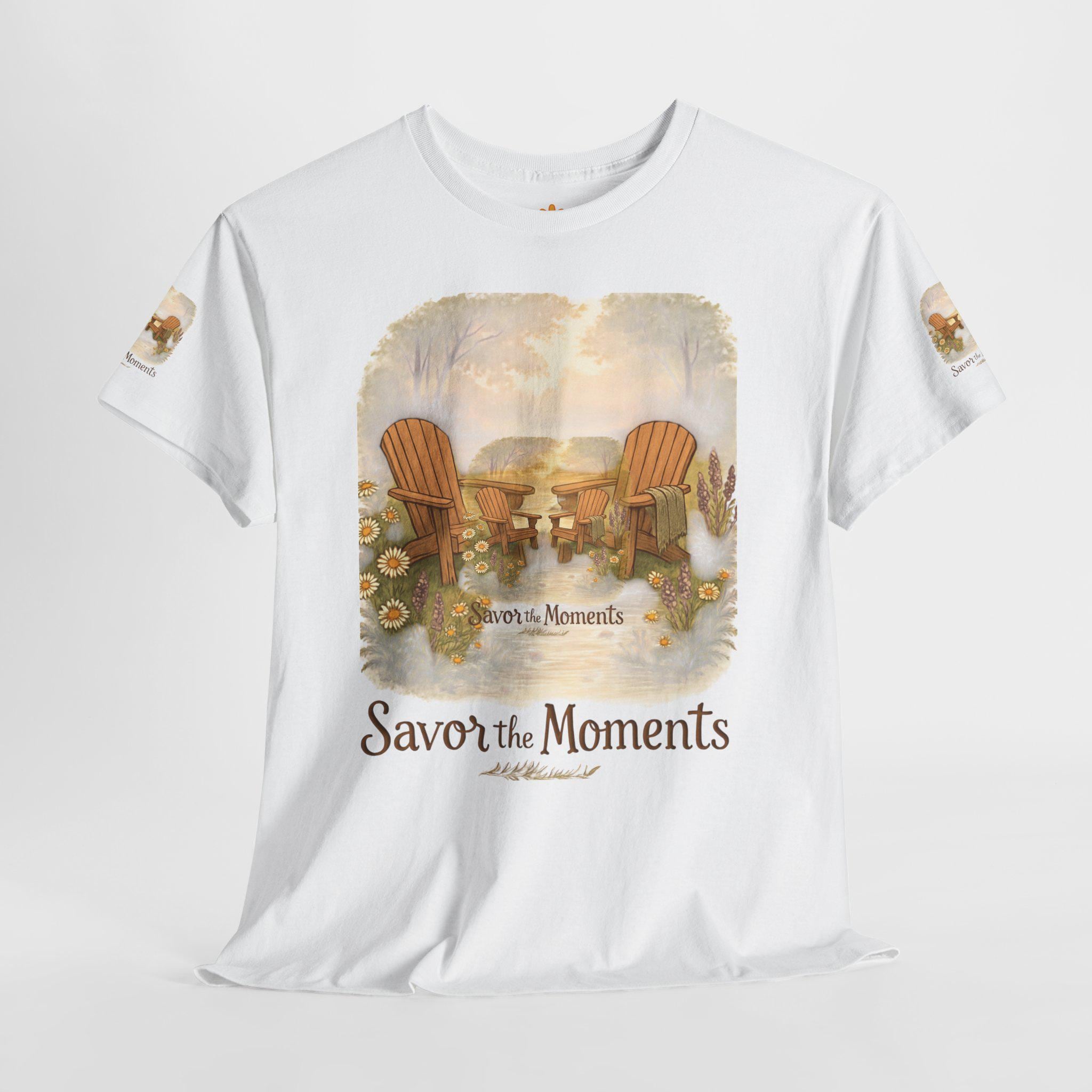 Introducing our Unisex Heavy Cotton Tee, designed to evoke a sense of calm and nostalgia with its charming imagery. This shirt invites you to "Savor the Moments" and enjoy the simple pleasures in life, making it a perfect addition to your casual wardrobe. The relaxed fit and timeless crew neckline make it ideal for everyone, from nature lovers to those who appreciate a moment's peace. Suitable for various occasions, it enhances your everyday wear while also being a thoughtful gift for holidays and celebrations like birthdays or housewarming parties. Embrace the good vibes and cherish every moment with this versatile tee!