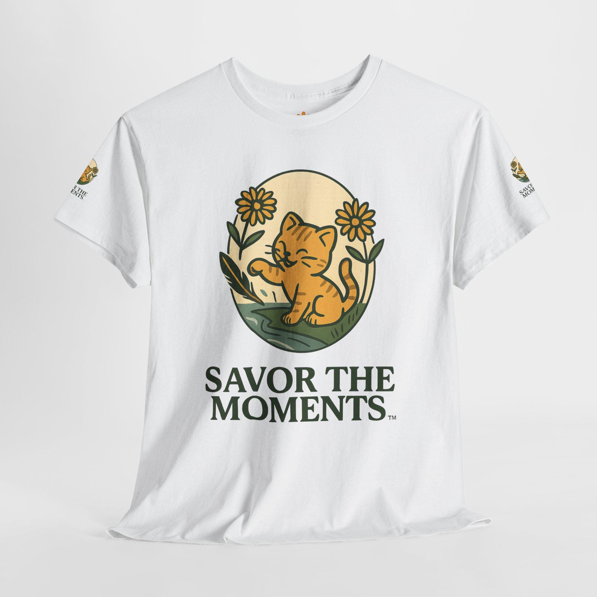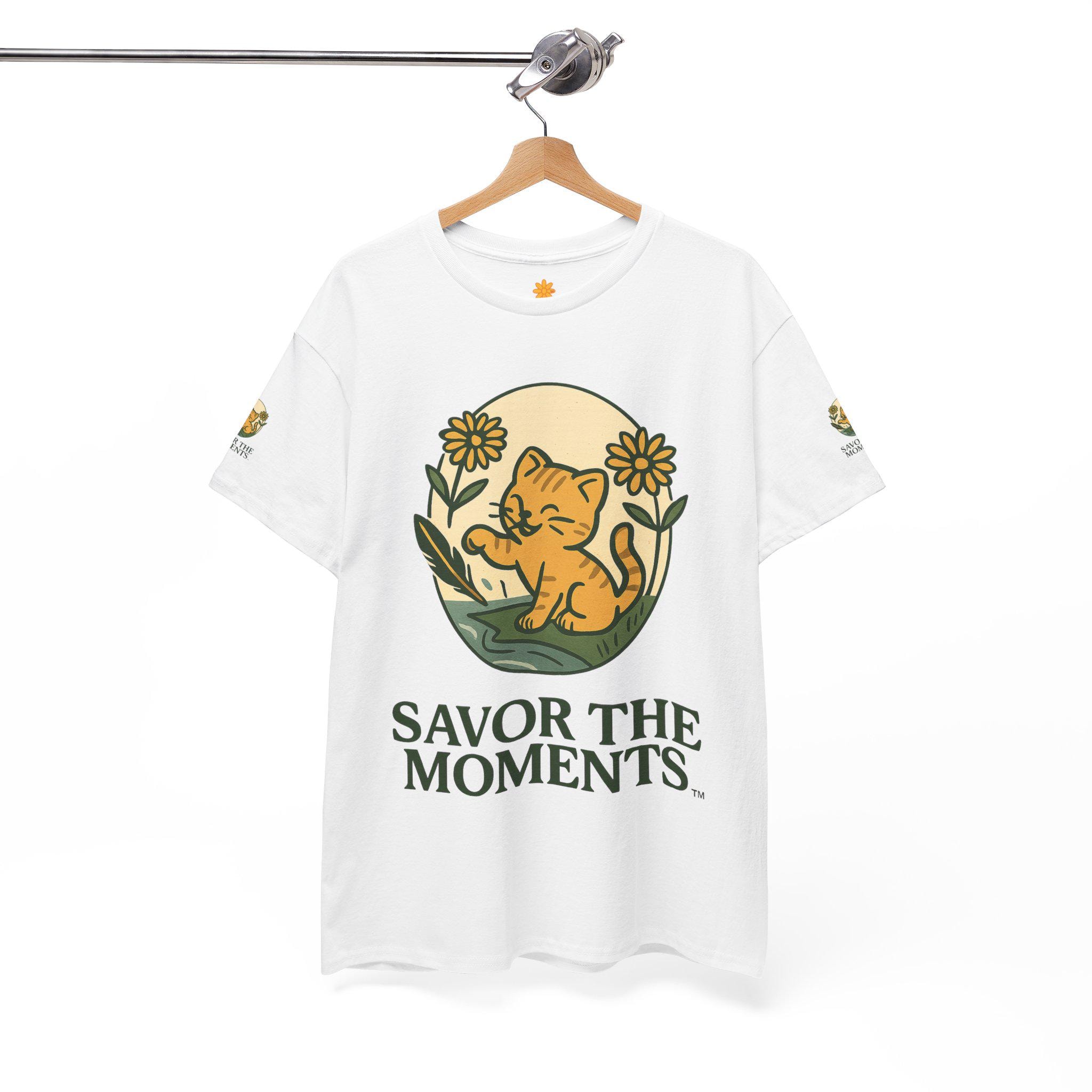 Savor the Moments Cat Tee, Cute Cat T-Shirt, Gift for Cat Lovers, Unisex Graphic Tee, Cozy Everyday Wear, Nature-Inspired Fashion