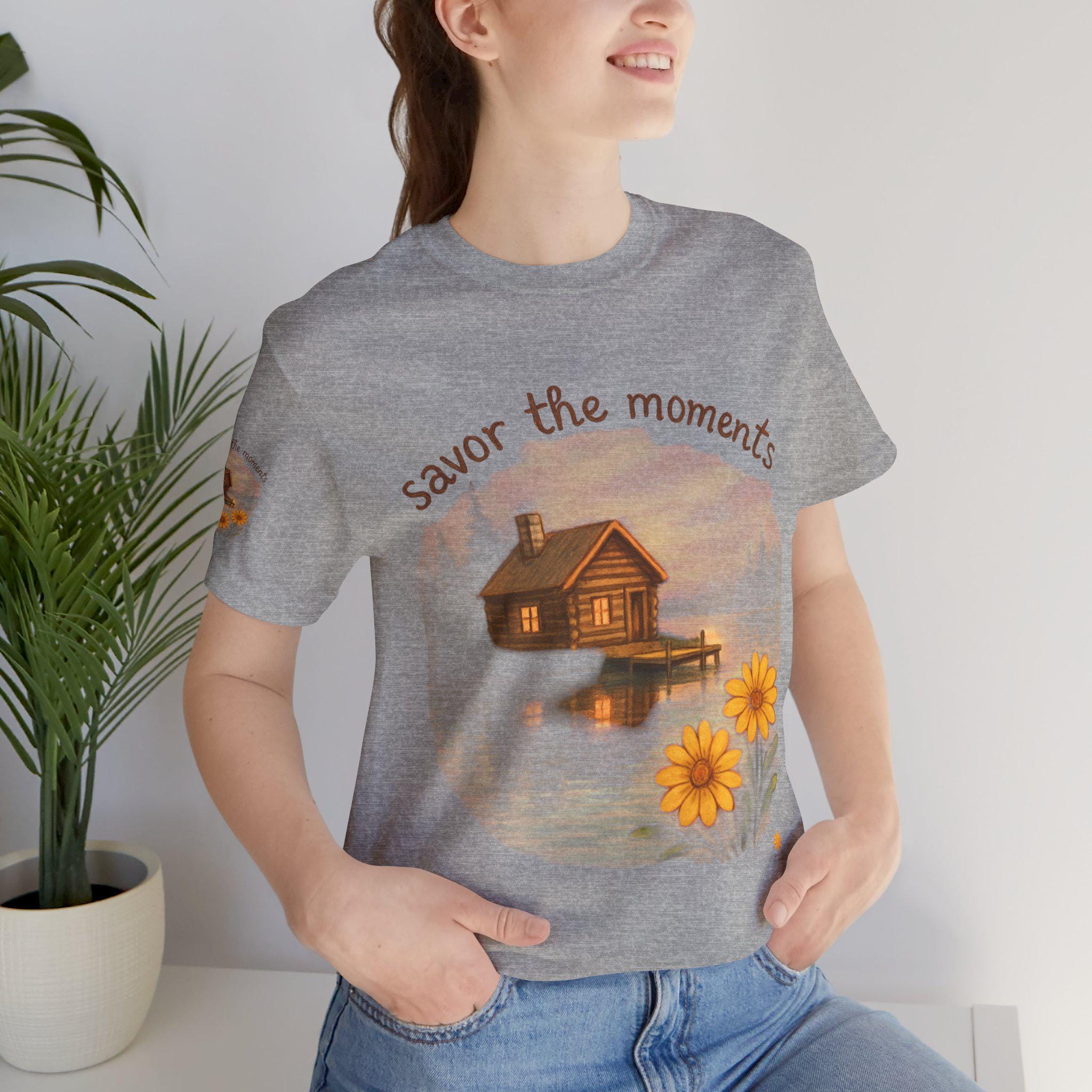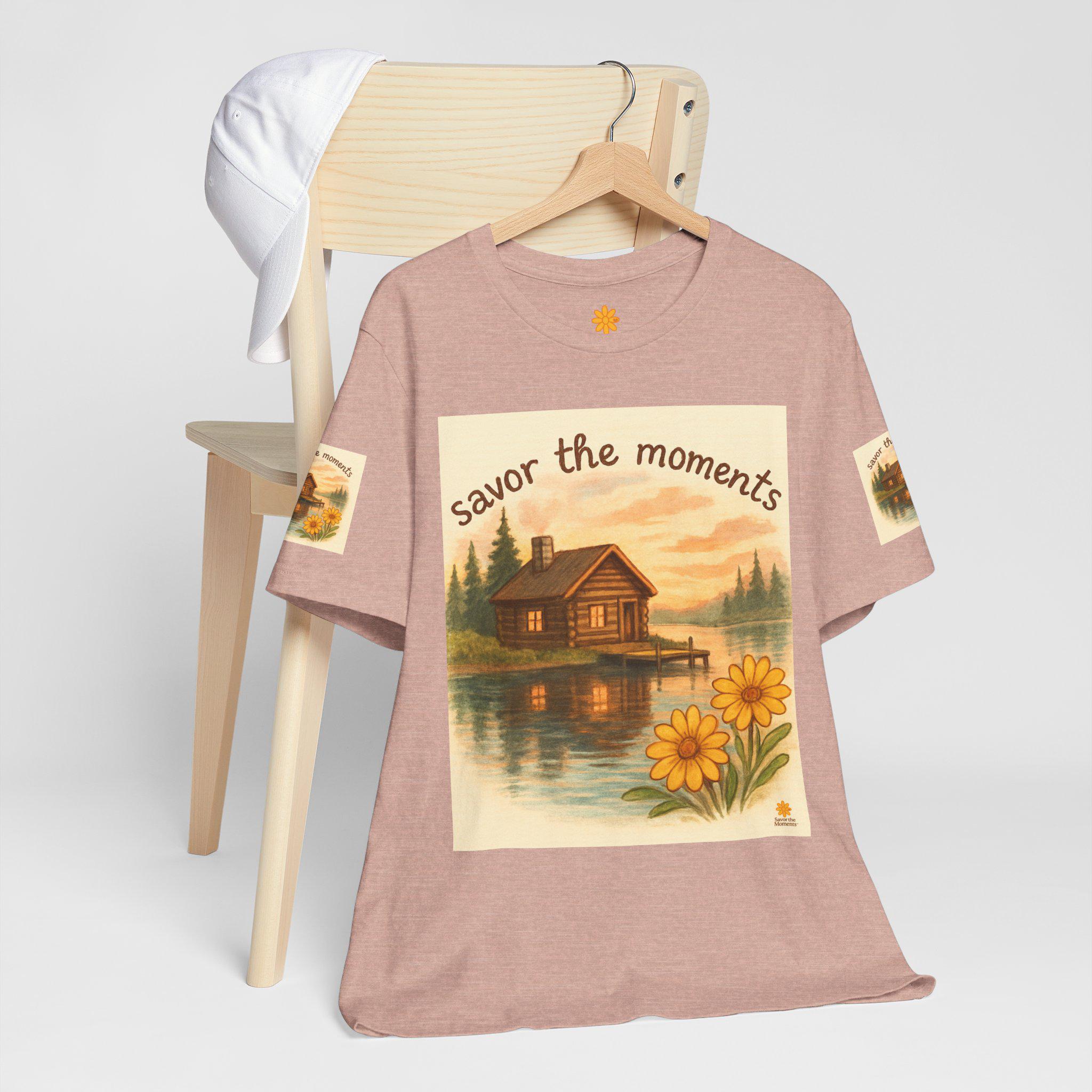 Nature-Inspired Short Sleeve Tee - Savor the Moments, Cozy Shirt, Gift for Nature Lovers, Relaxed Tee, Outdoor Adventure Shirt
