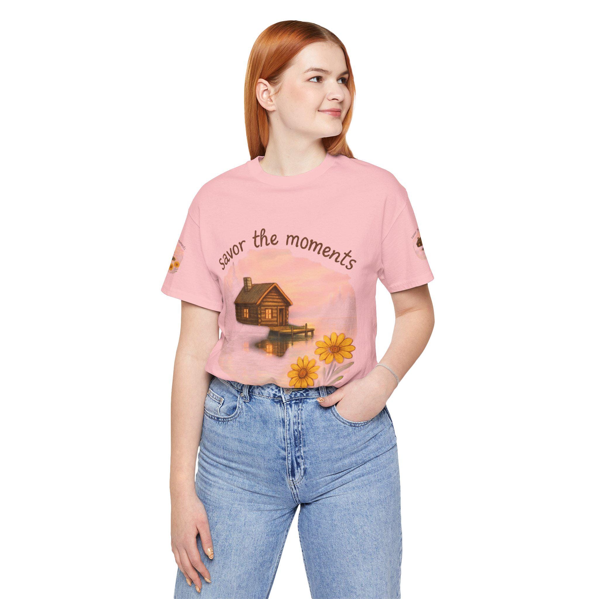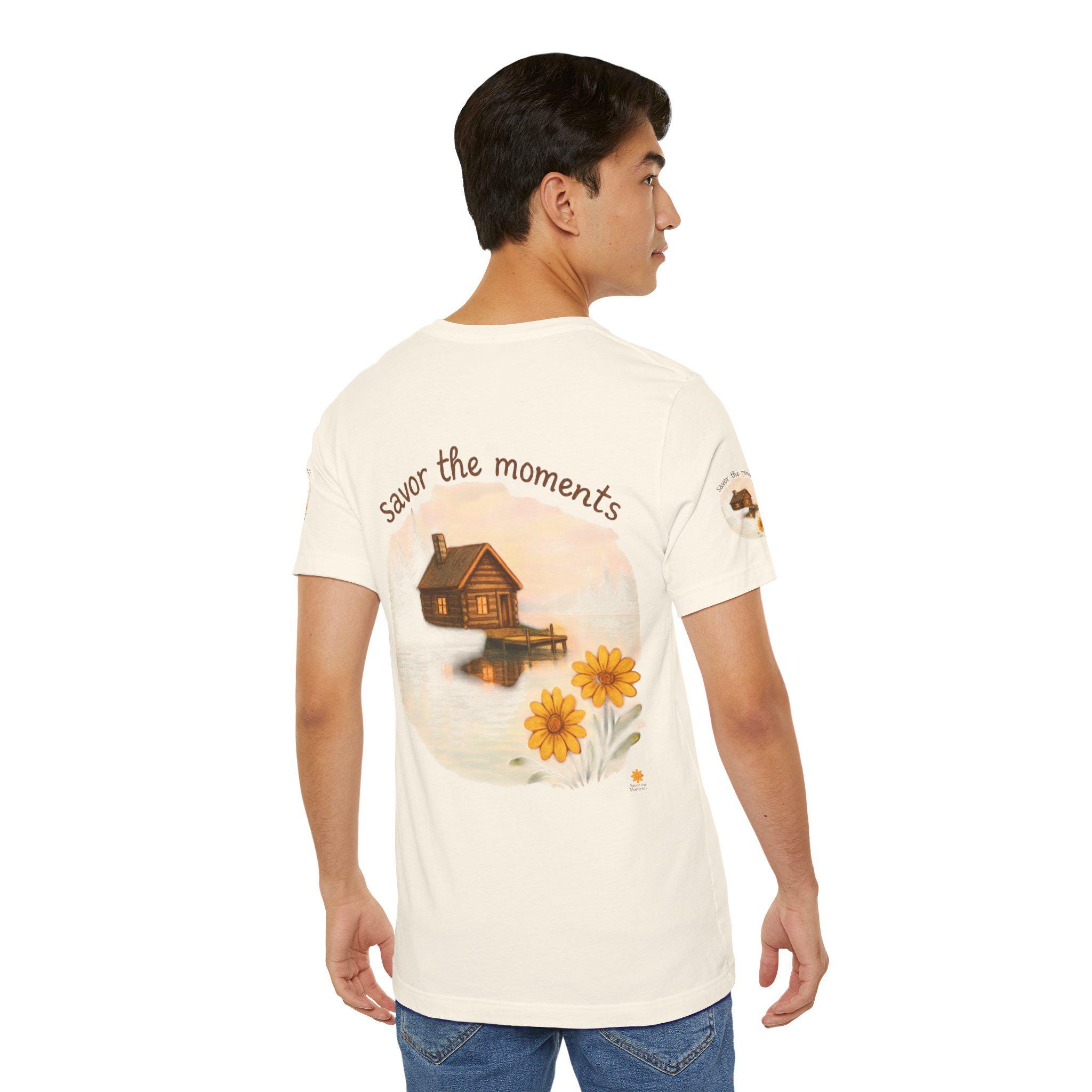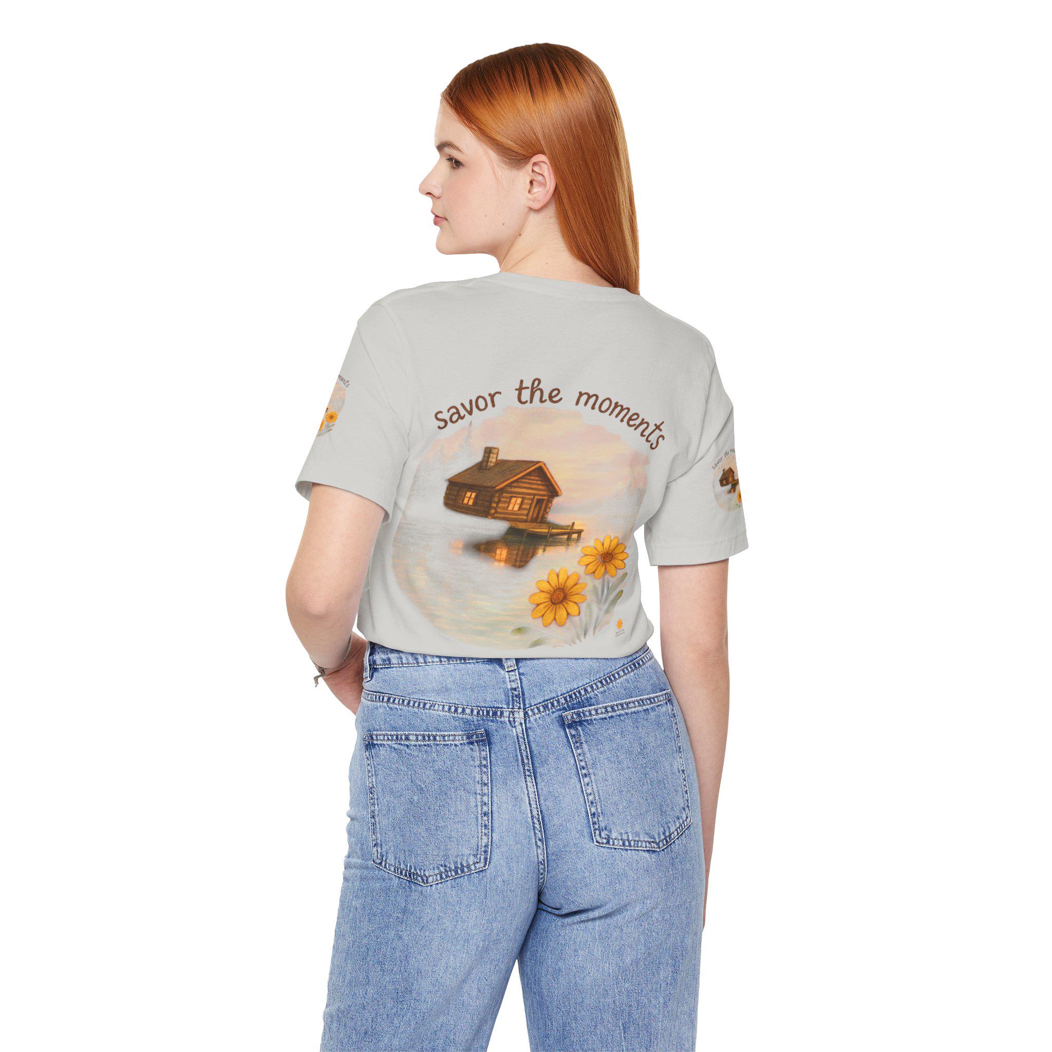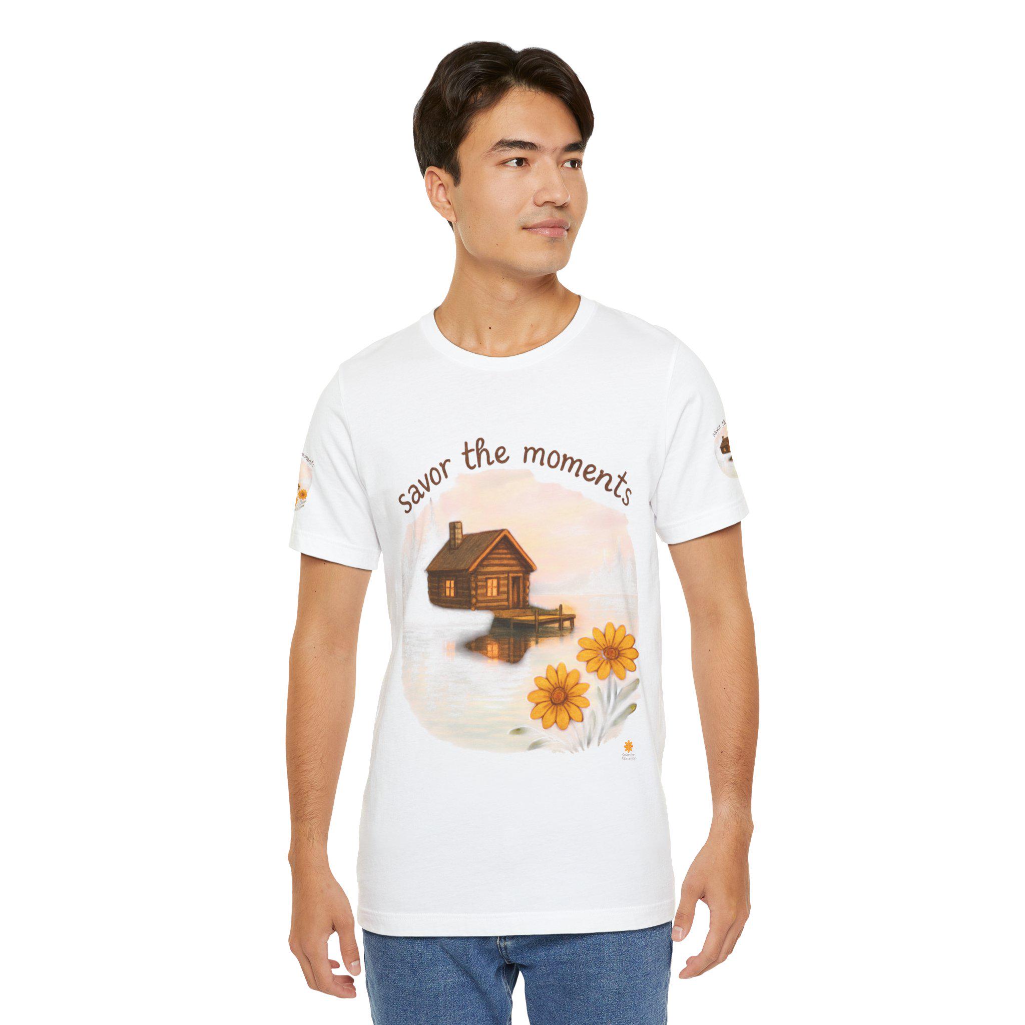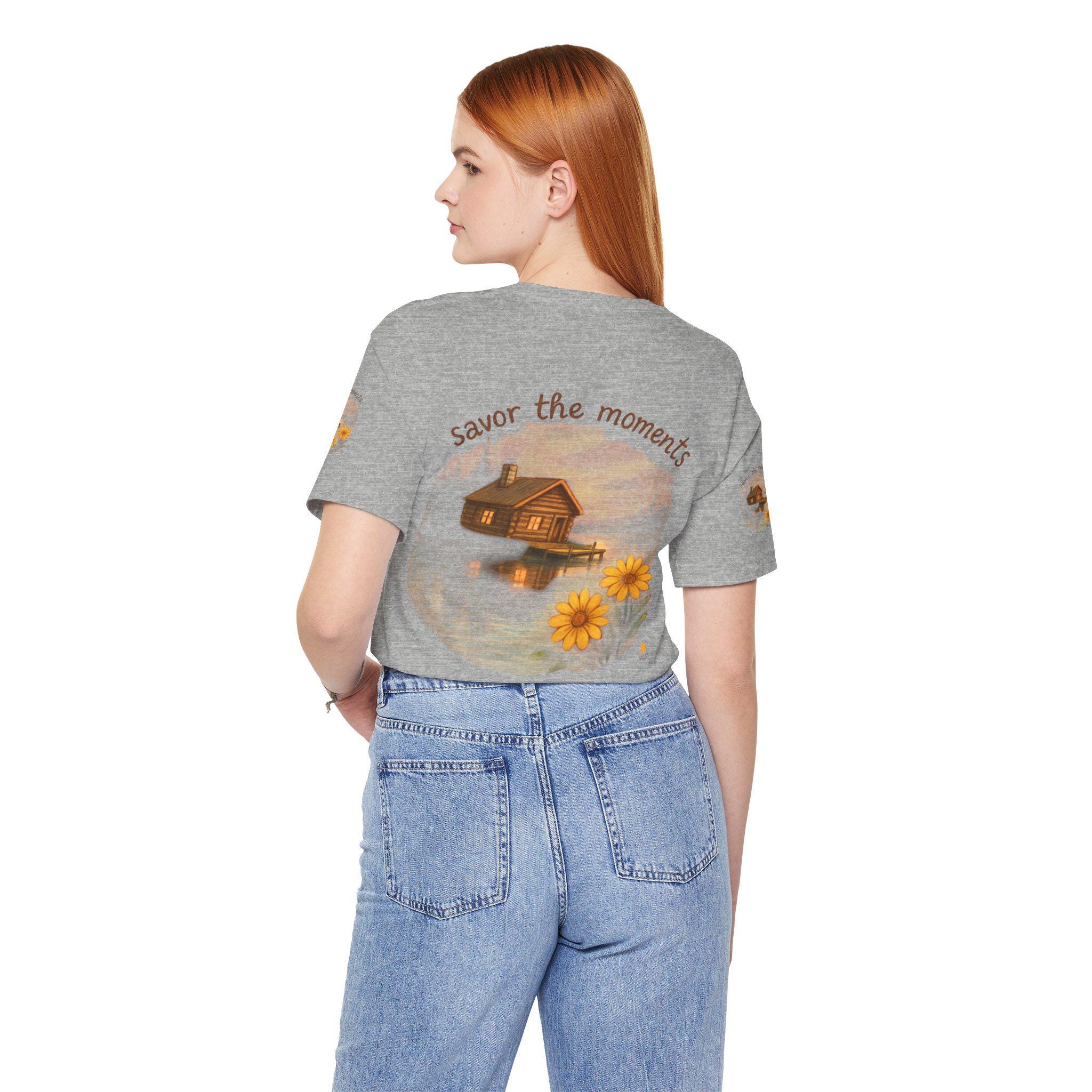 Embrace the serenity of nature with this Unisex Jersey Short Sleeve Tee, designed to evoke a sense of calm and connection to the outdoors. Featuring a stunning graphic of a tranquil lakeside cabin and vibrant sunflowers, this tee perfectly captures the essence of cherished moments spent in nature. Its versatile design allows it to seamlessly fit into your everyday wardrobe, making it a great choice for casual outings, leisurely strolls, or cozy gatherings with friends and family. Ideal for nature lovers, outdoor enthusiasts, or anyone seeking a reminder to savor life’s simple pleasures, this tee is a thoughtful gift for holidays such as Earth Day, birthdays, or just because!