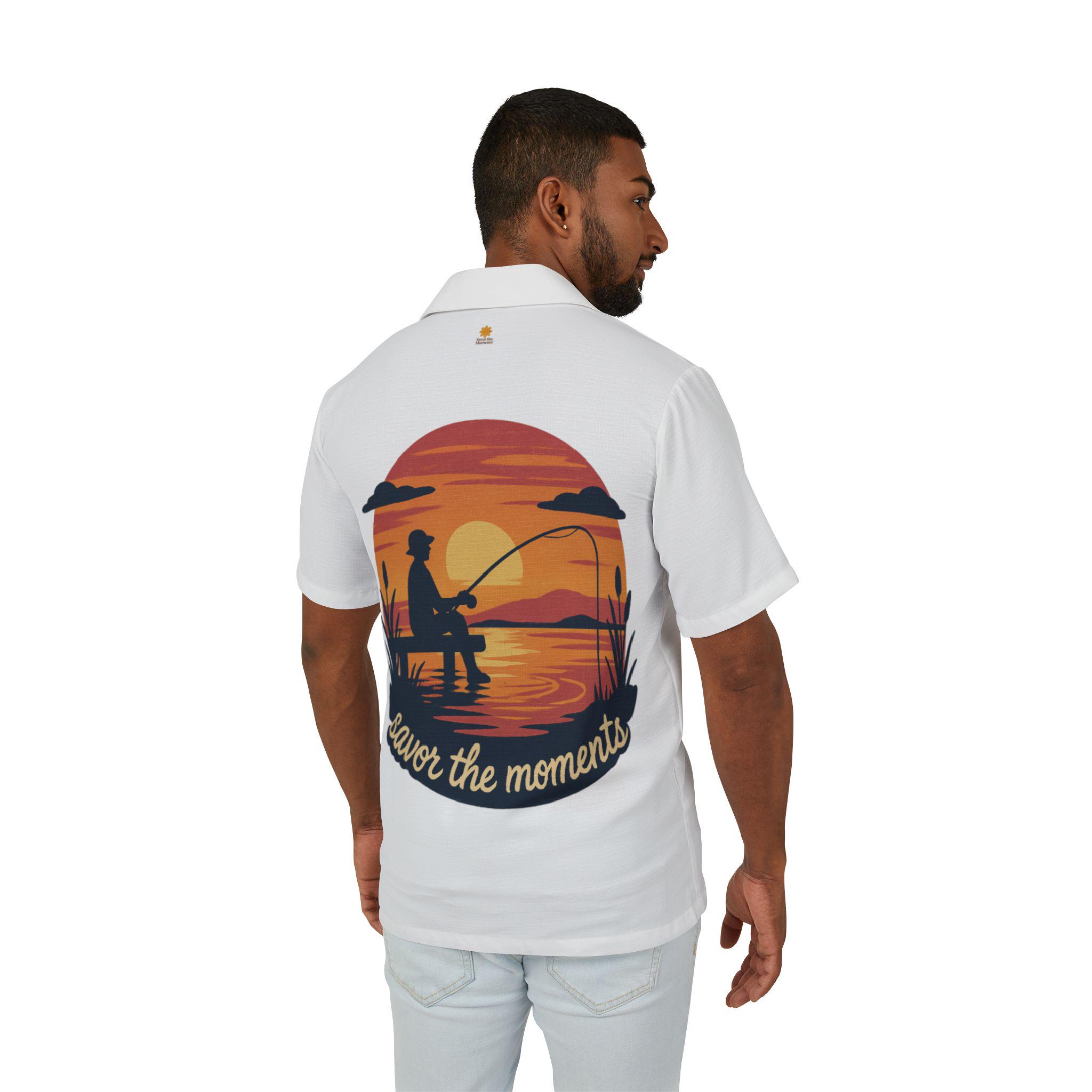 Men's Hawaiian Camp Shirt with Fishing Design - Perfect for Summer, Beach Days, Vacation, Father's Day, Casual Outings, Relaxed Style