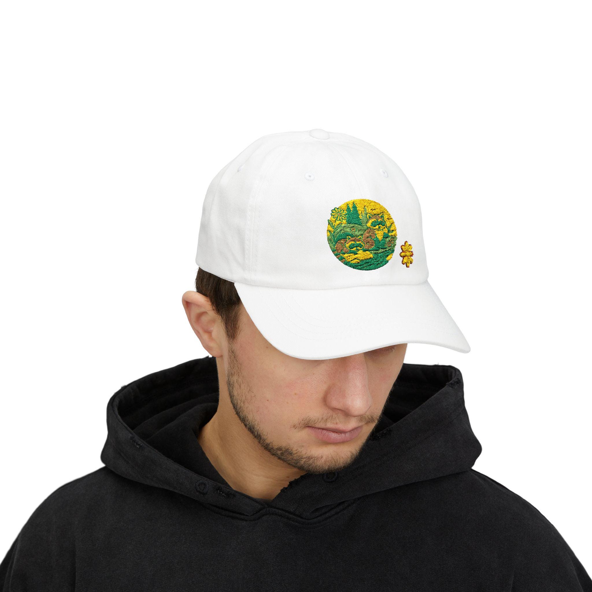 Racoon, Classic Dad Cap, animal vibe, nature, gift, orange daisy logo, wildflower, stream, meadow vibe. Introducing the classic dad cap, a timeless accessory crafted for both style and comfort. Made from 100% cotton (Green Camo variant: 65% polyester / 35% cotton), this cap offers a soft and breathable feel that's perfect for all-day wear. Its unstructured design and low-profile fit give it a laid-back vibe, while the antique brass buckle closure adds a touch of vintage charm. The matching undervisor and four-row stitching on the visor provide subtle yet stylish details. With six panels and a Permacurv® visor, this cap offers a perfect blend of durability and classic aesthetics.
