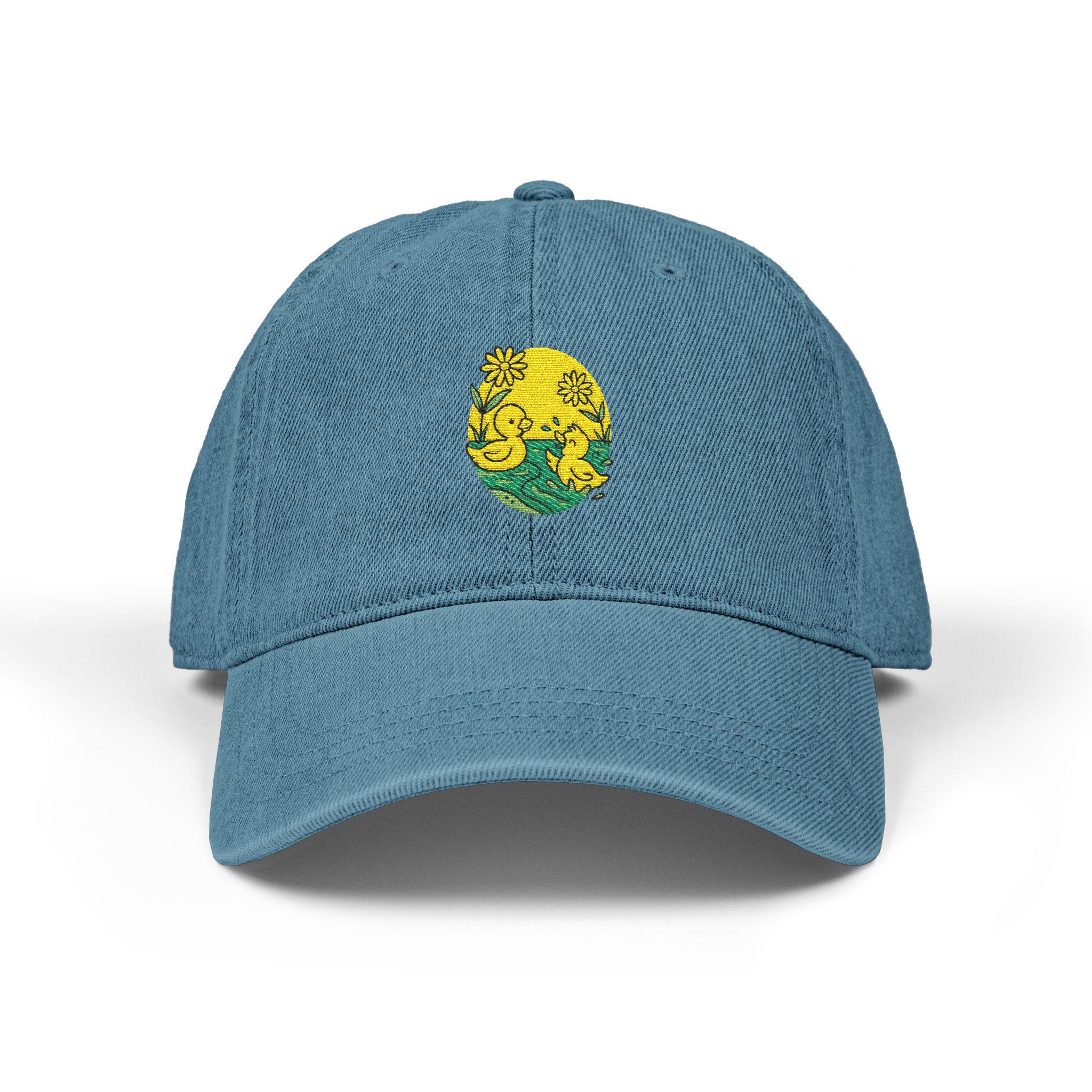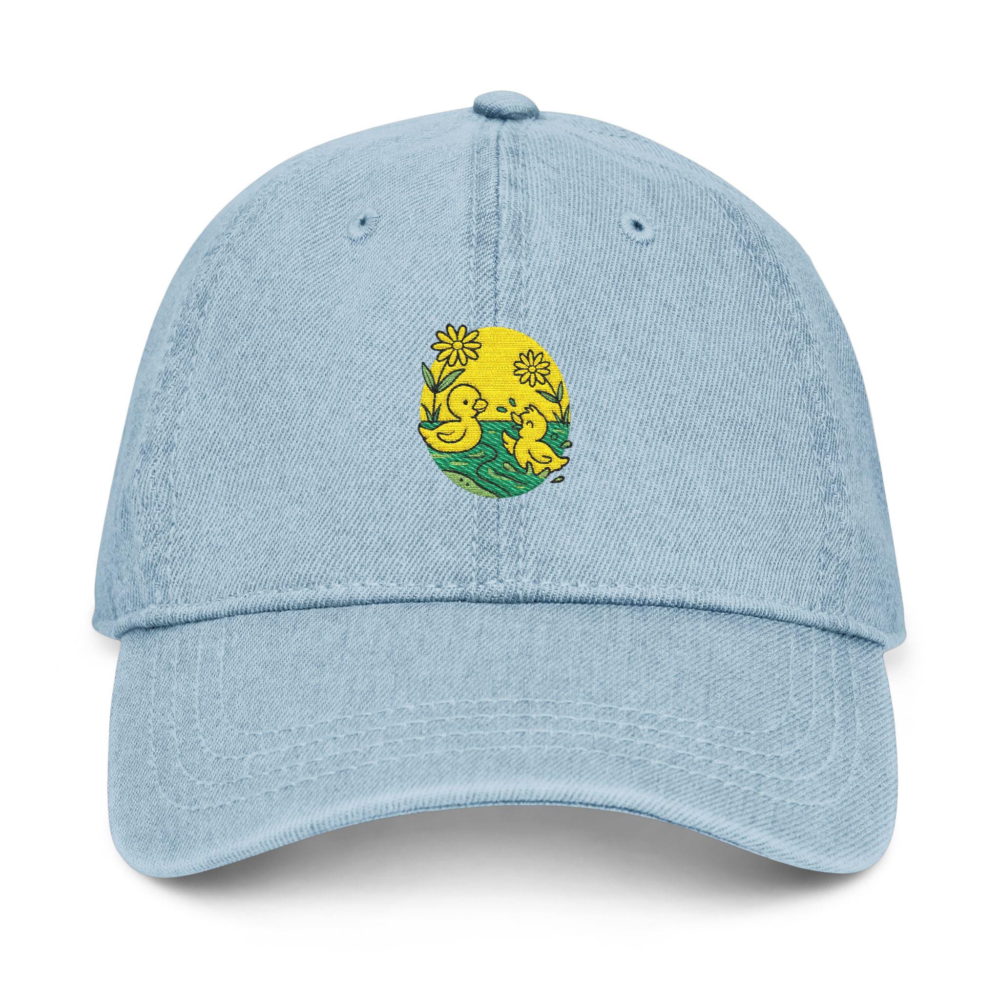 Embroidered Denim Hat with Sunny Floral Design, Summer Accessory, Gift for Gardeners, Fun Outdoor Cap, Trendy Streetwear Hat