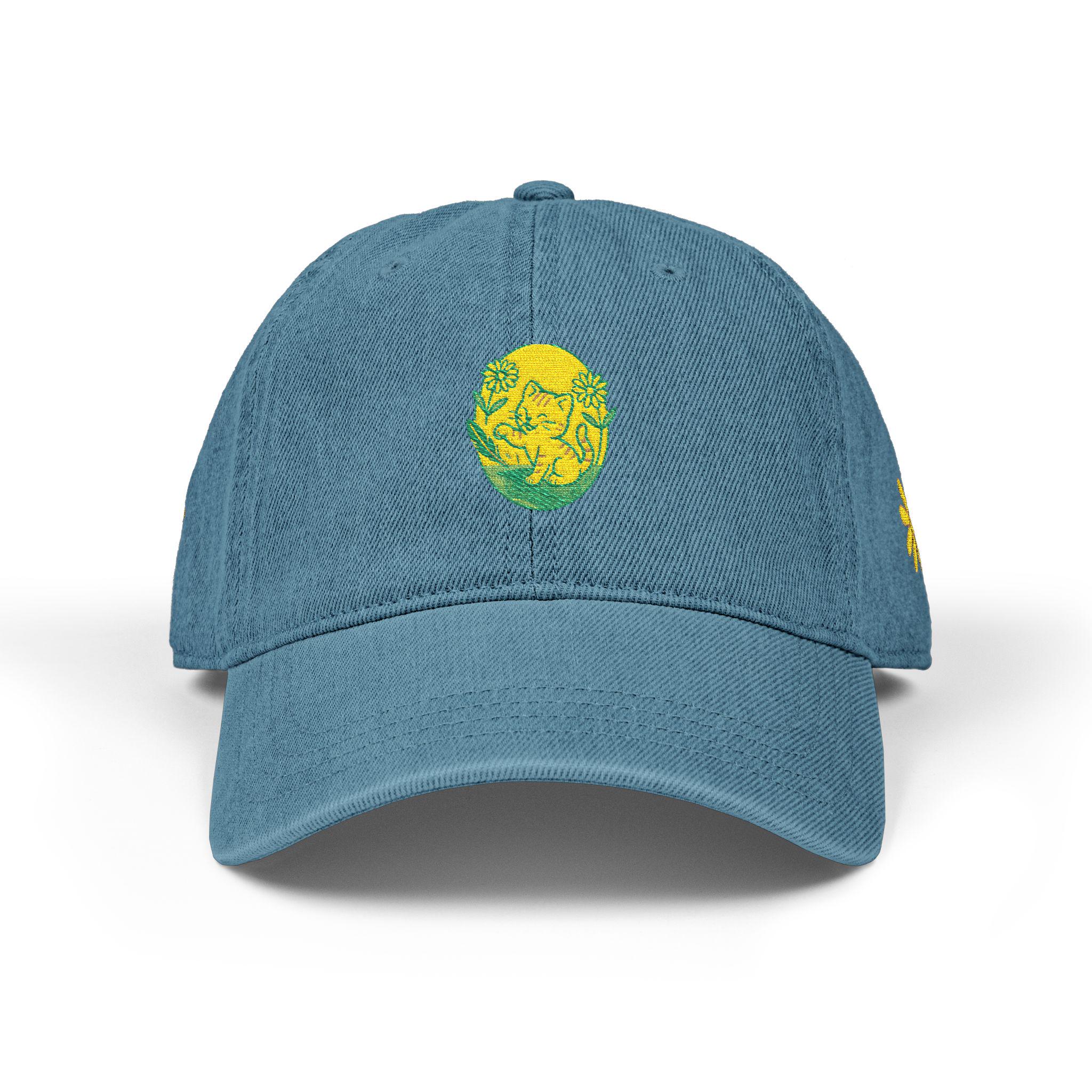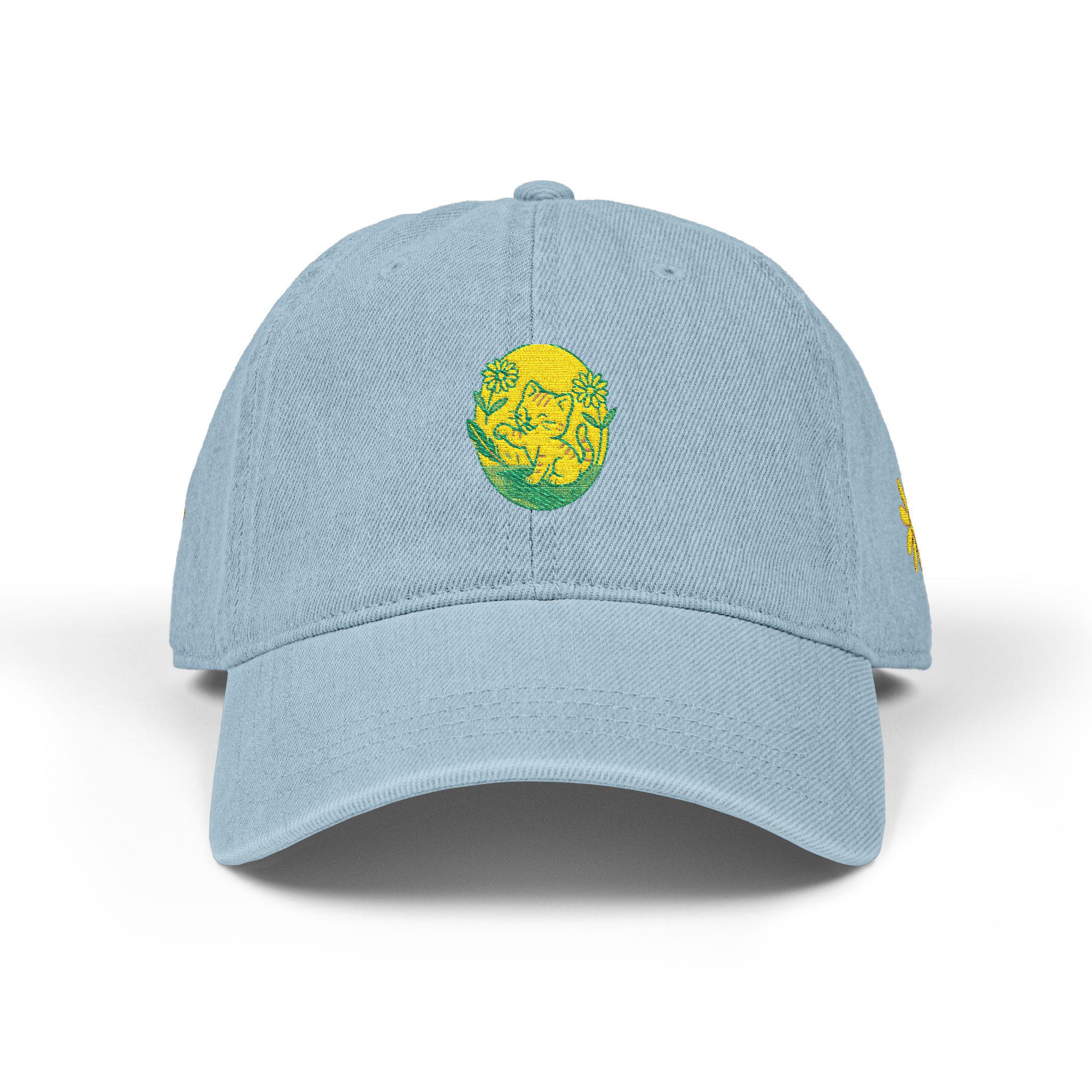 Embroidered Kitten Dad Hat, Floral Baseball Cap