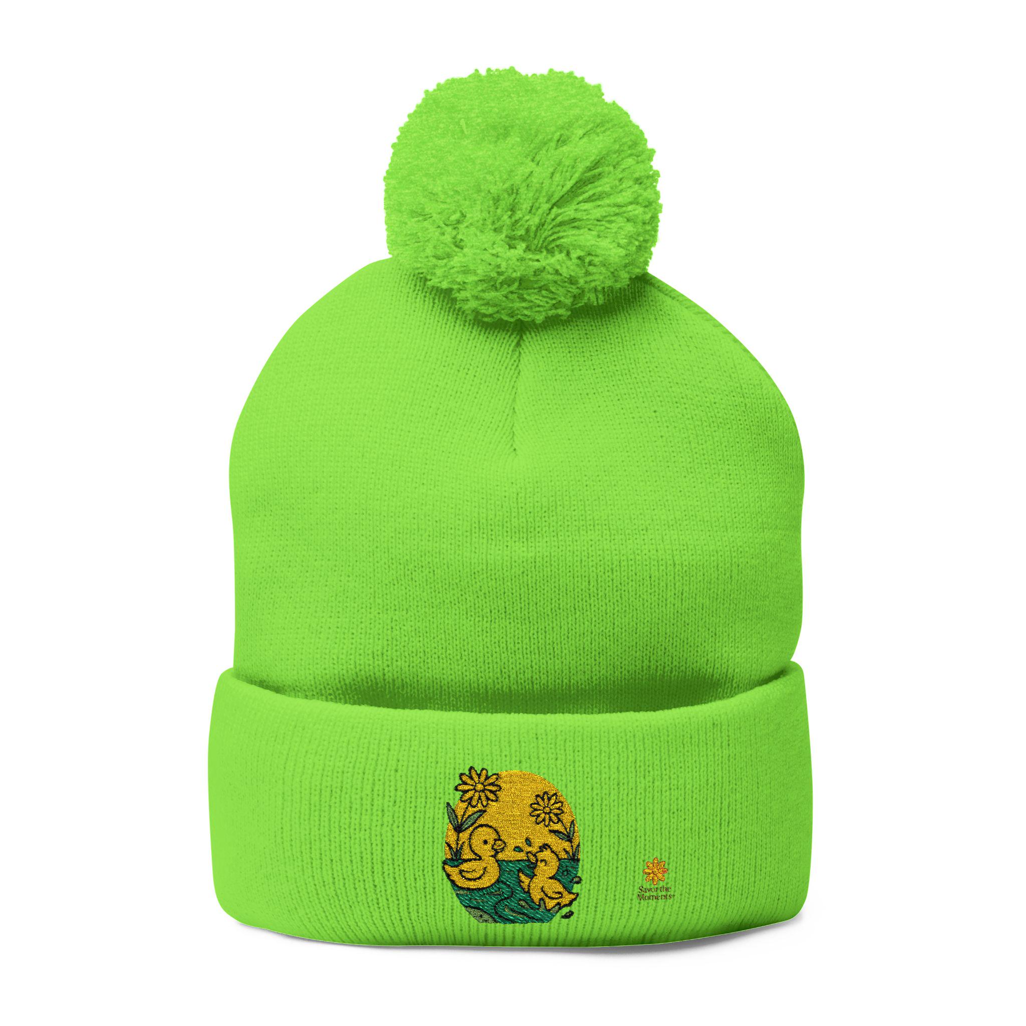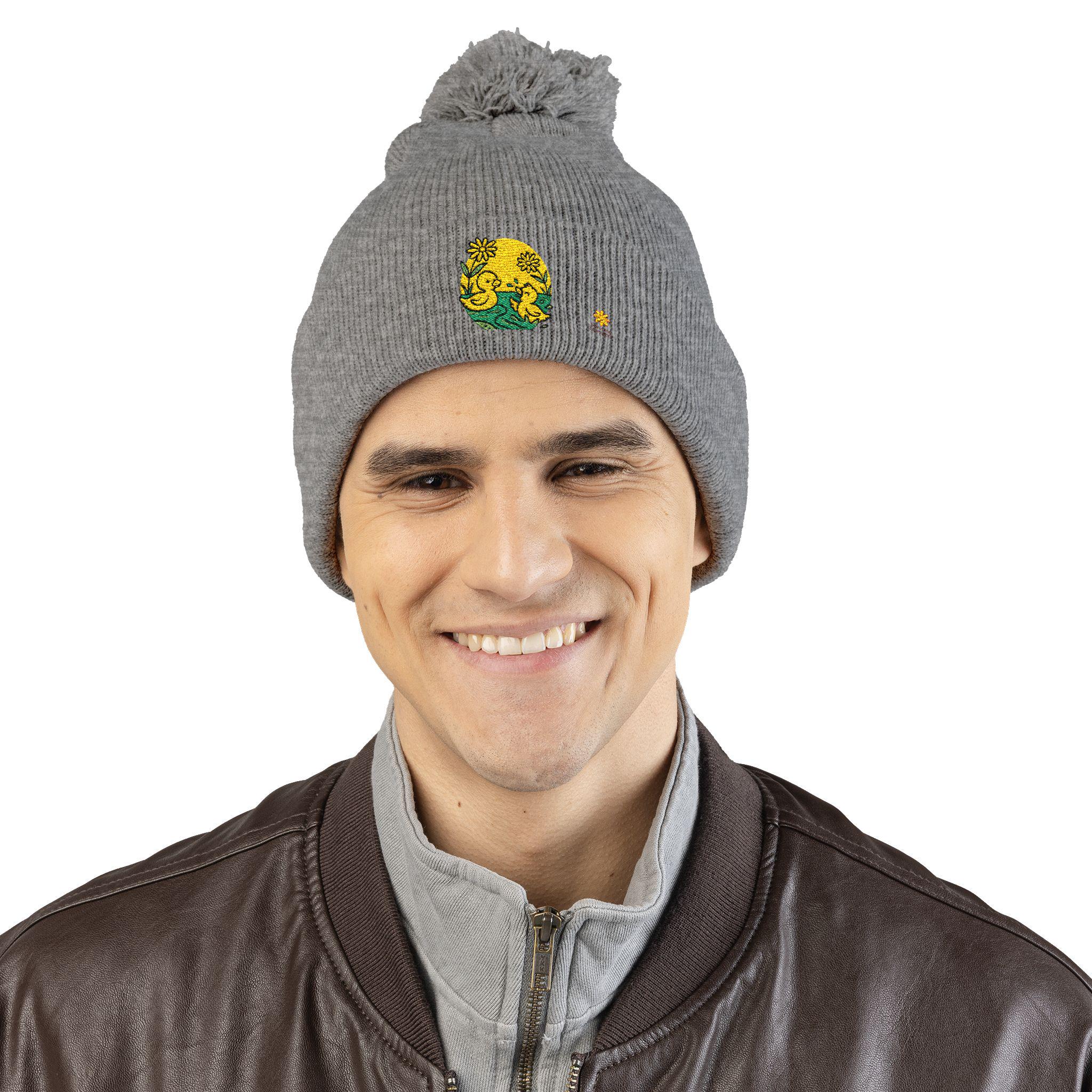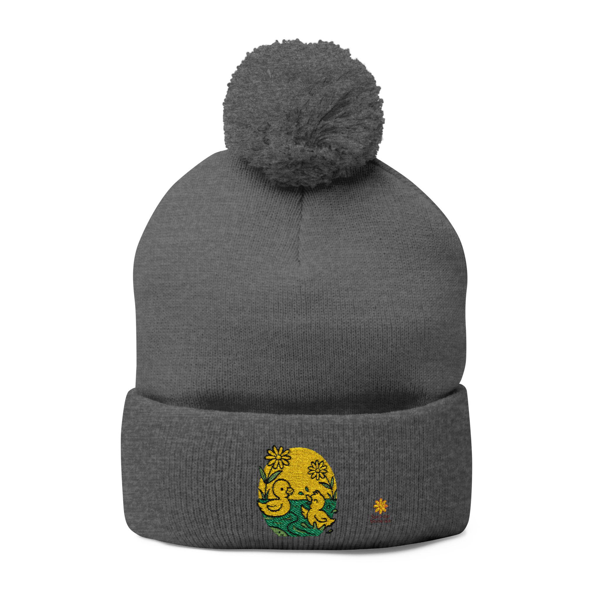 Cozy Embroidered Pom-Pom Knit Cap, Cute Winter Hat, Handcrafted Beanie, Gift for Her, Trendy Cold Weather Accessory