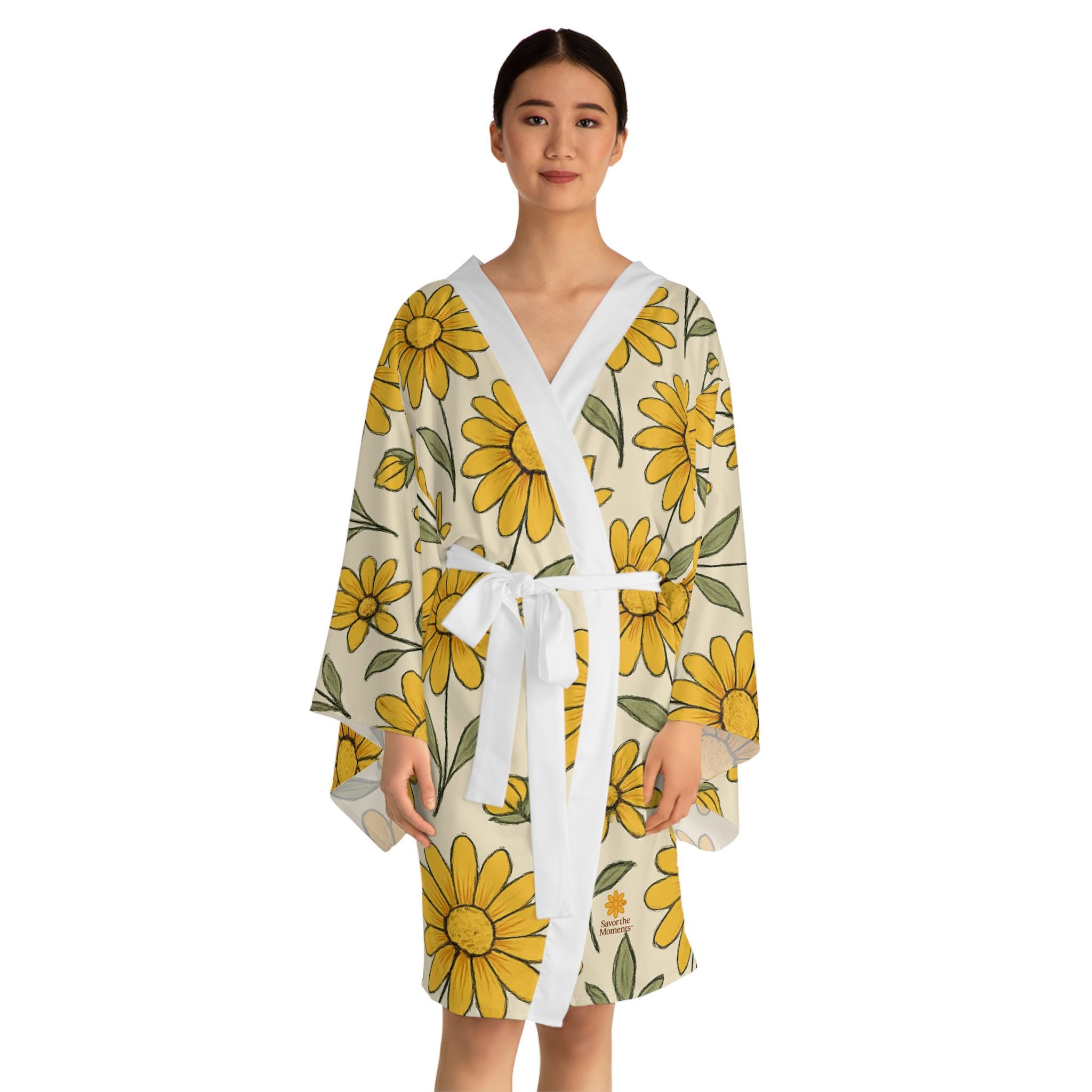Elevate your loungewear with this stylish Long Sleeve Kimono Robe, designed to provide you with ultimate comfort and elegance. Adorned with cheerful floral patterns and the inspiring phrase "savor the moments," this robe radiates a relaxed yet sophisticated vibe. Perfect for cozy nights at home or as a stunning addition to your outfit for parties, it fits seamlessly into a variety of settings. Ideal for those who appreciate beauty in everyday life, this robe is great for gifting during holidays like Mother’s Day or special celebrations such as birthdays and bridal showers. Experience the joy of everyday moments with this versatile piece!