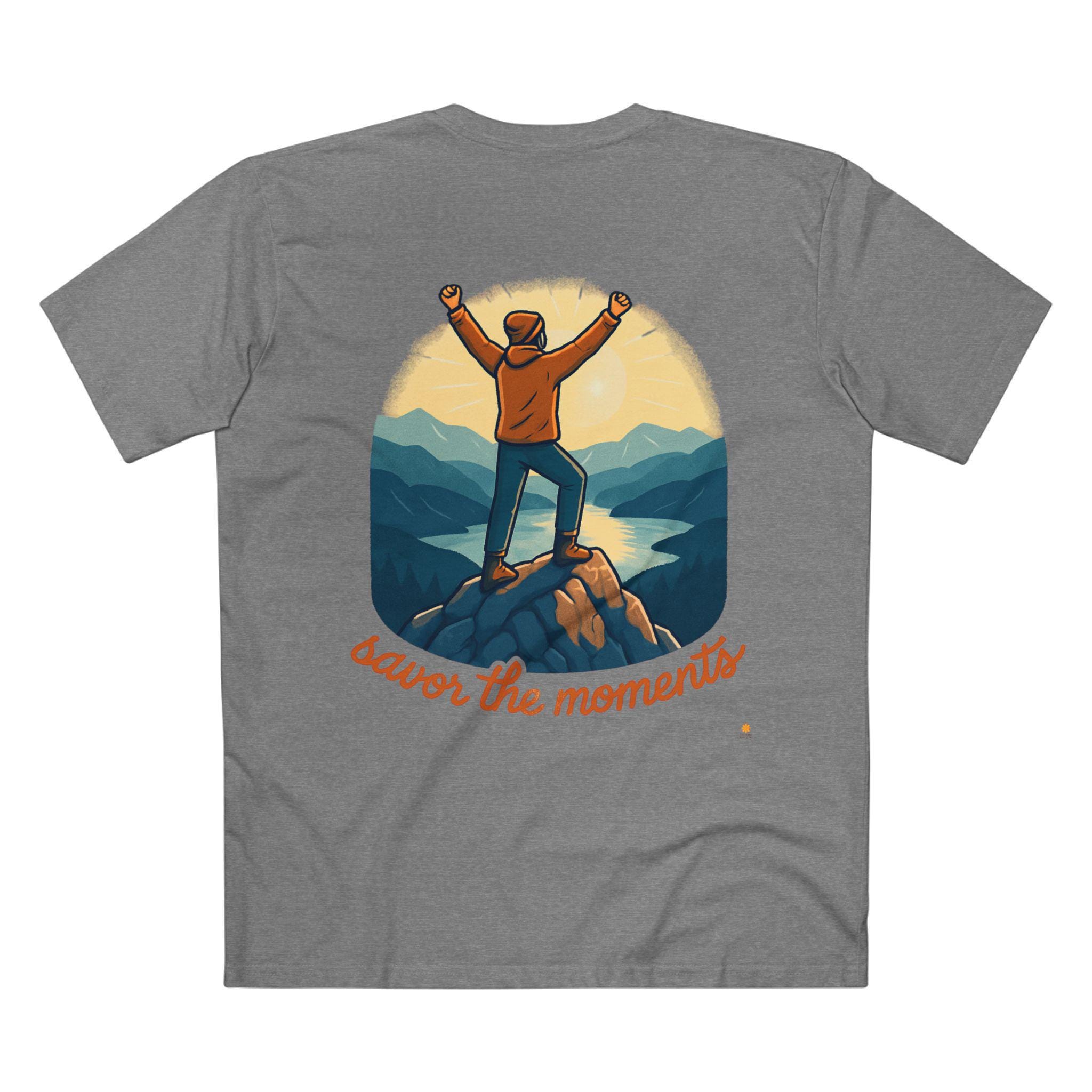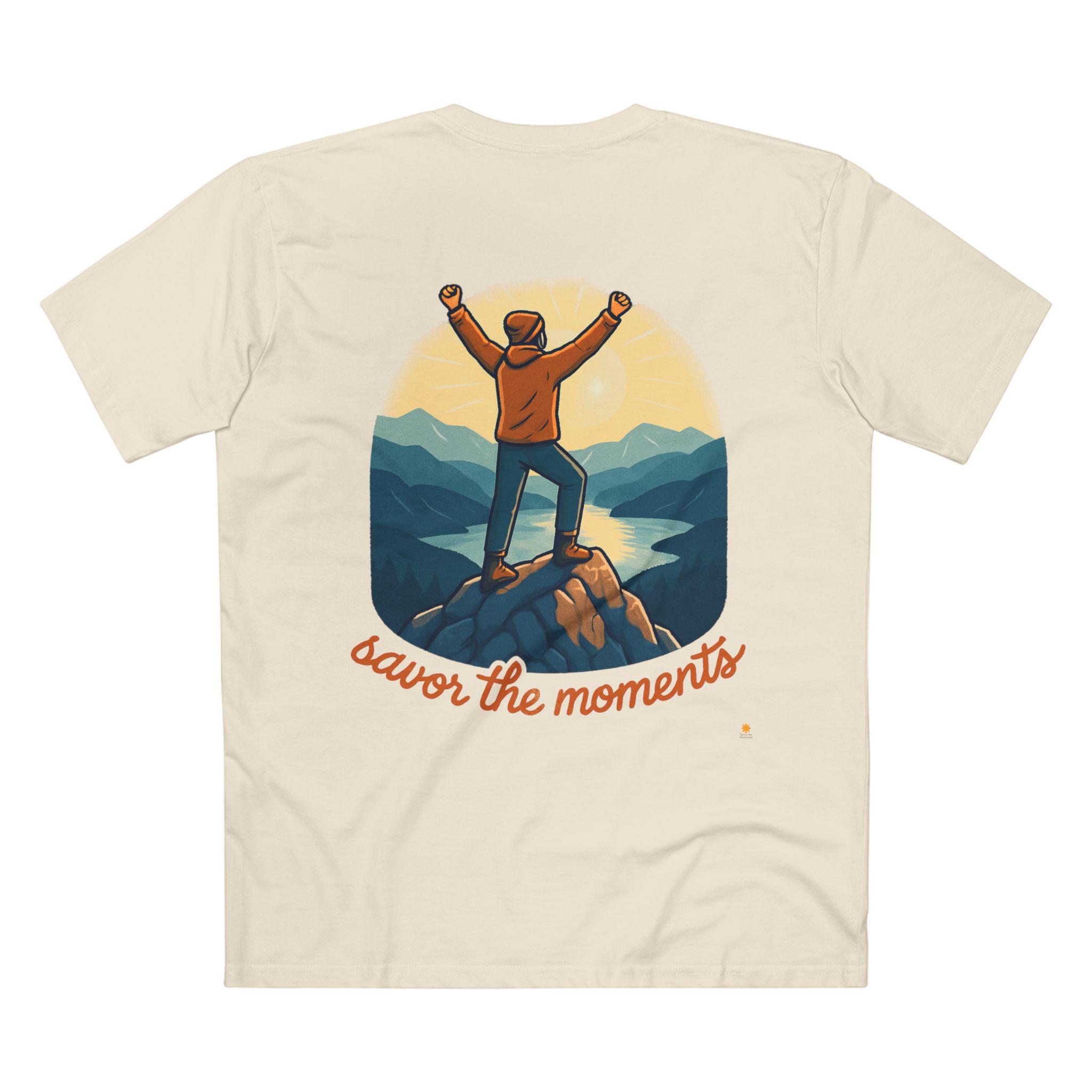 Step into comfort and style with this Adult Tee, perfect for everyday wear. Featuring an uplifting design that encourages you to 'savor the moments', this tee captures a sense of adventure and positivity. Whether you're out exploring nature, lounging at home, or meeting friends, it effortlessly fits into any occasion. It's an ideal gift for outdoor enthusiasts, creative souls, or anyone who appreciates thoughtful, motivational messages. Celebrate life's experiences during holidays, birthdays, or just as a special treat for yourself or a loved one. Embrace the vibe of warmth and inspiration with this versatile tee!