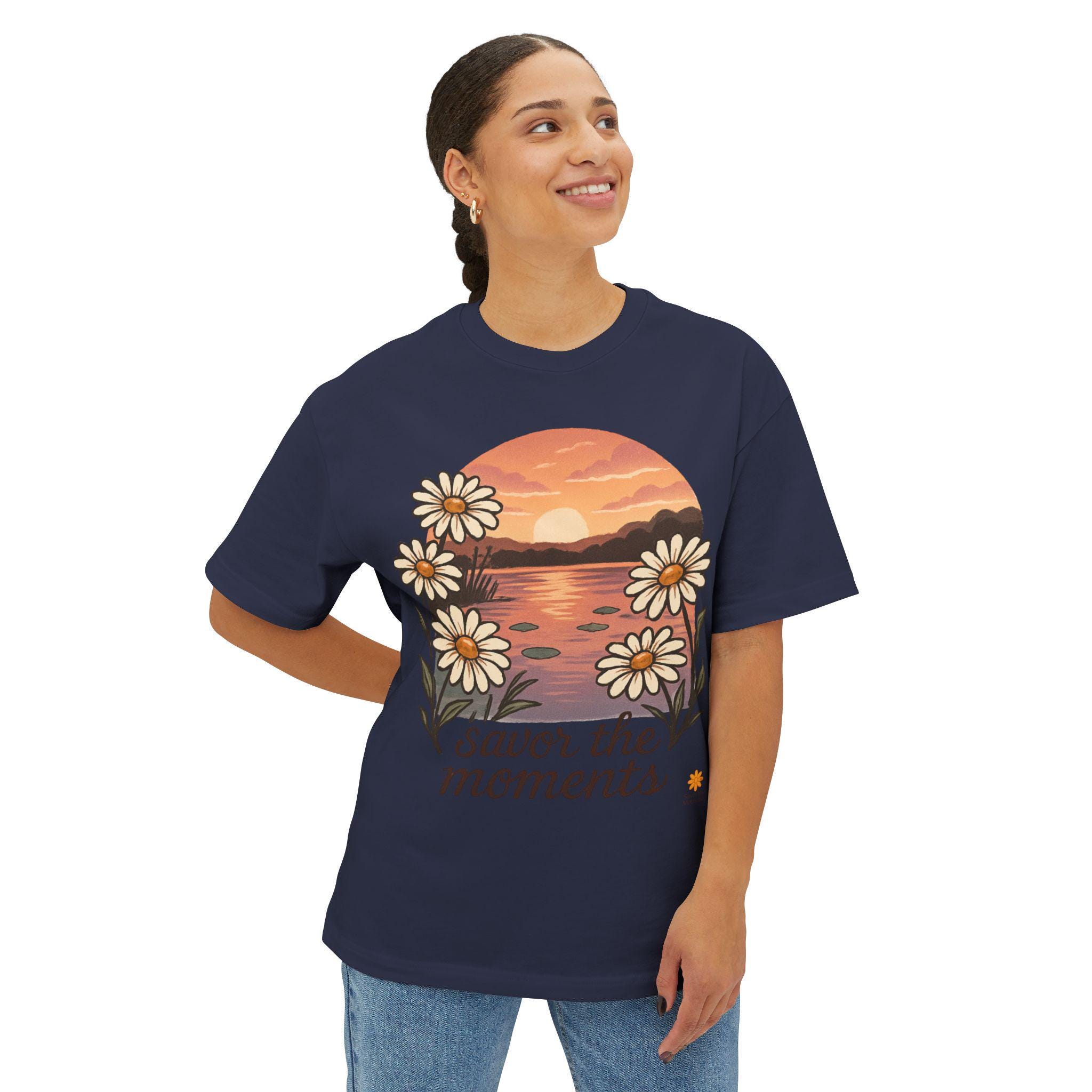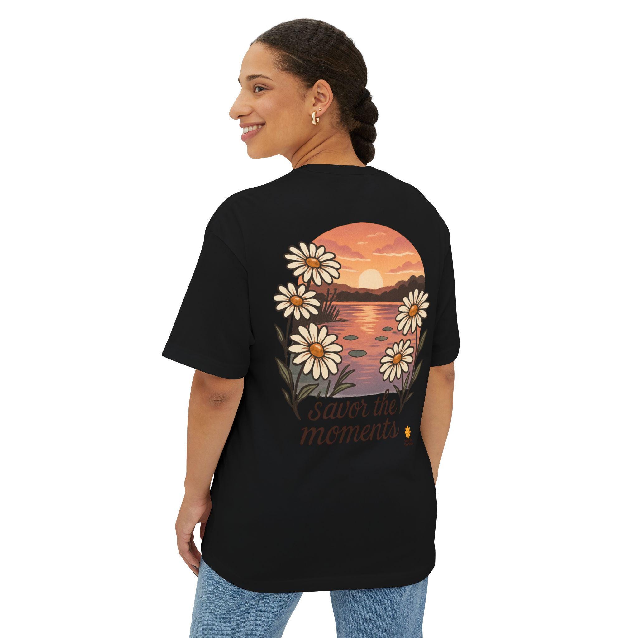 Embrace a carefree vibe with this Unisex Oversized Boxy Tee. Perfect for a relaxed day out or lounging at home, this tee brings comfort and style to your wardrobe. Featuring a vibrant design that encourages you to savor life’s moments, it's an ideal choice for anyone who appreciates a touch of positivity in their day-to-day activities.
