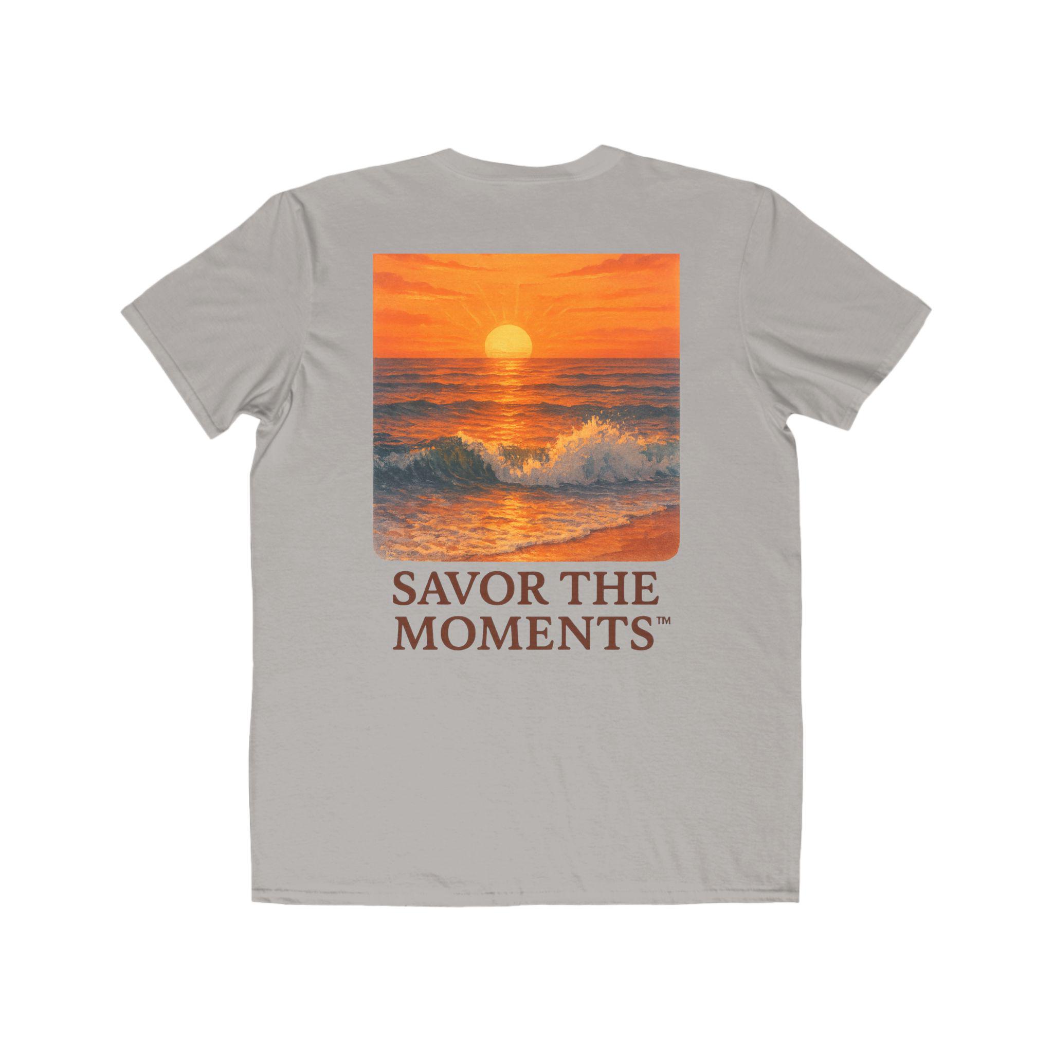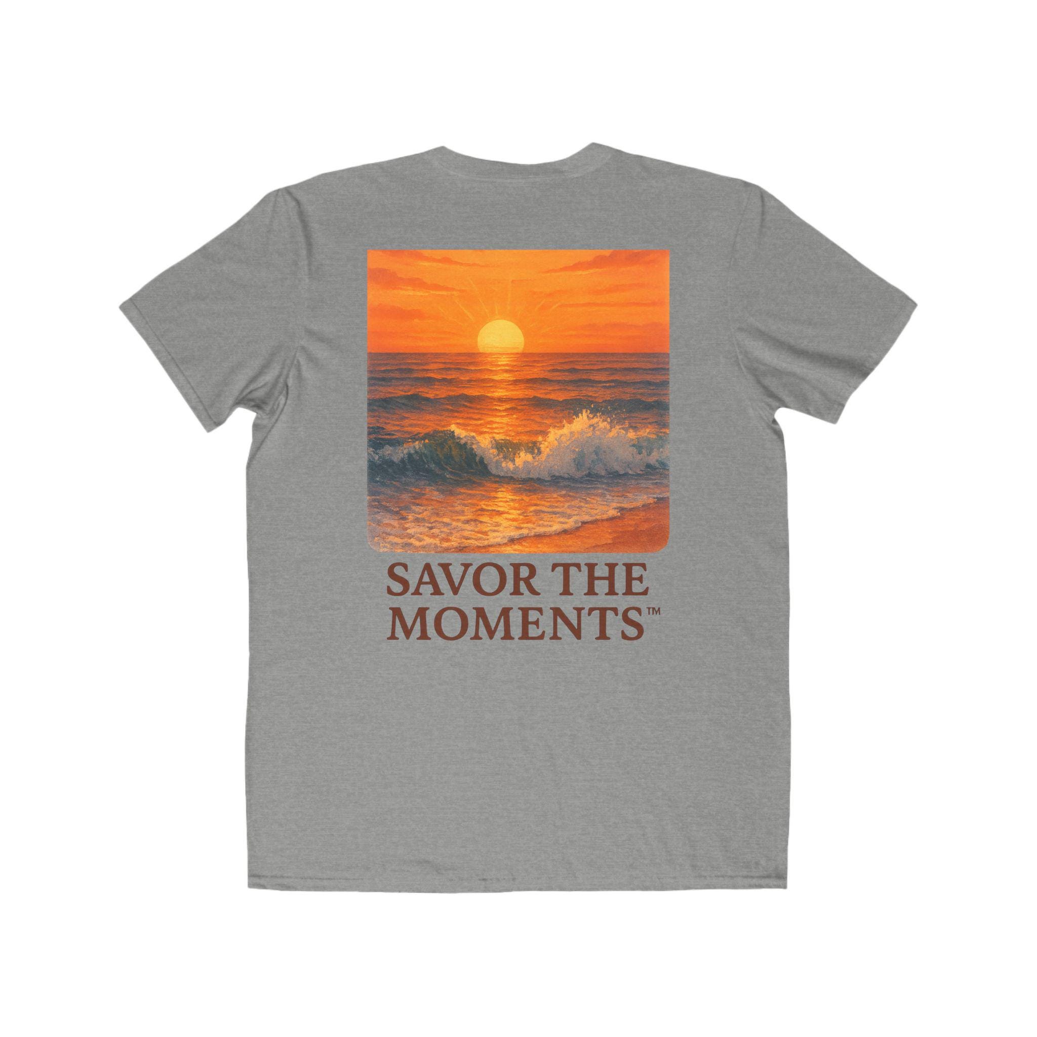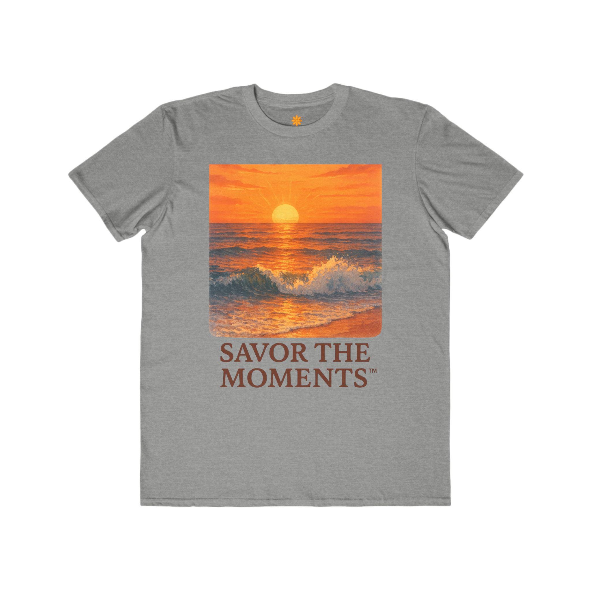 Men's Lightweight Fashion Tee - Savor the Moments, Sunset Beach T-Shirt, Casual Summer Top, Relaxed Fit Tee, Nature Lover Gift, Graphic Tee