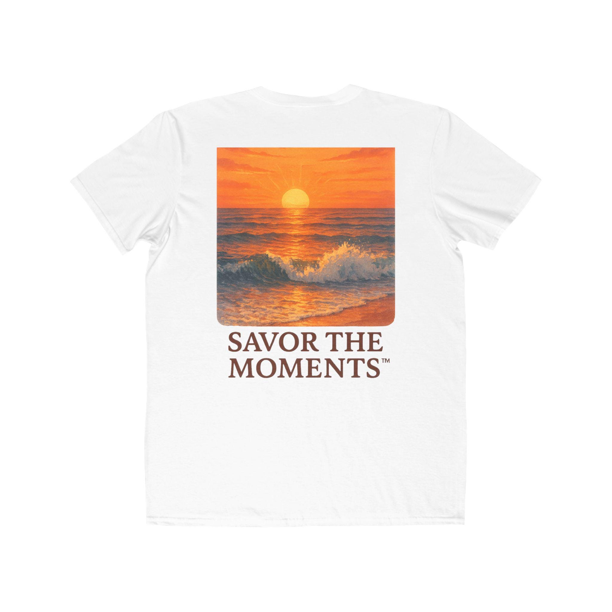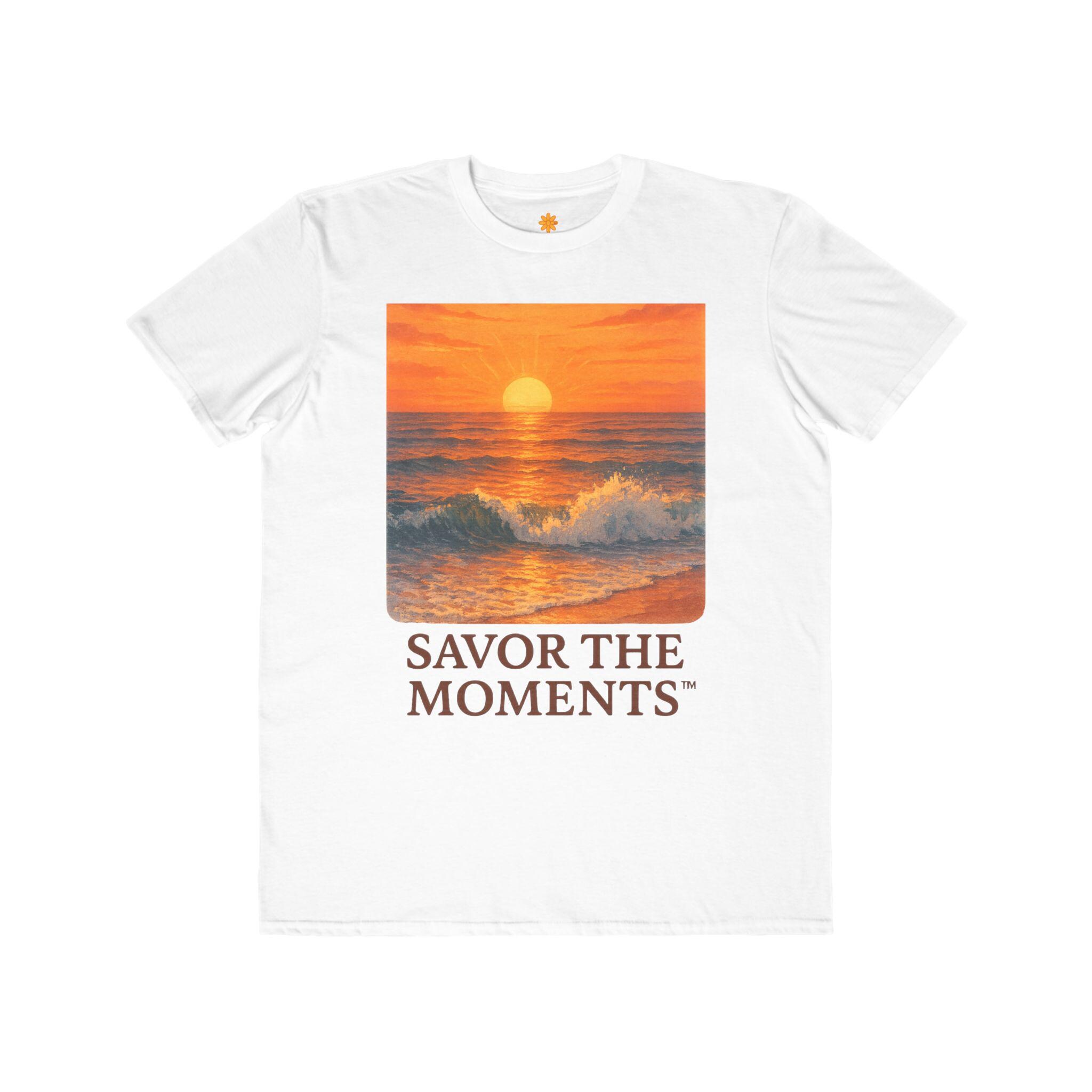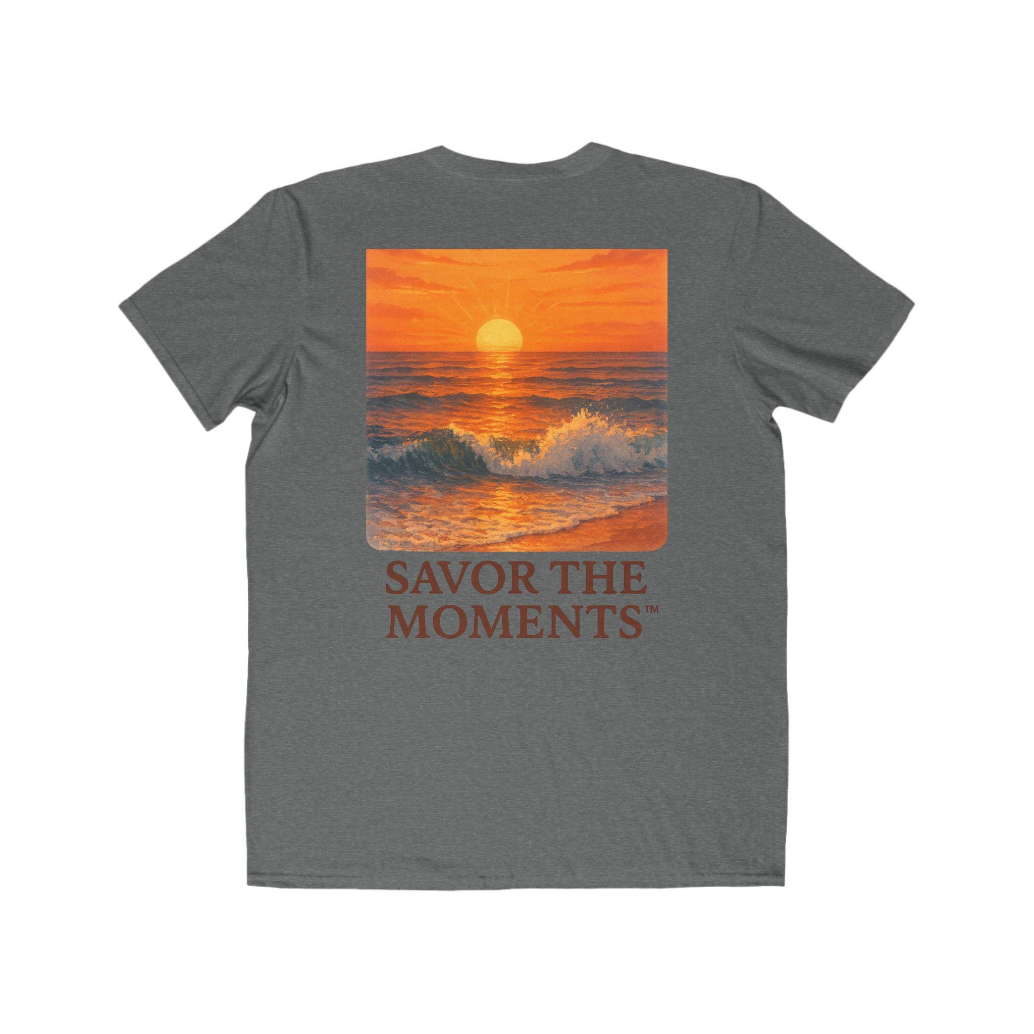Men's Lightweight Fashion Tee - Savor the Moments, Sunset Beach T-Shirt, Casual Summer Top, Relaxed Fit Tee, Nature Lover Gift, Graphic Tee