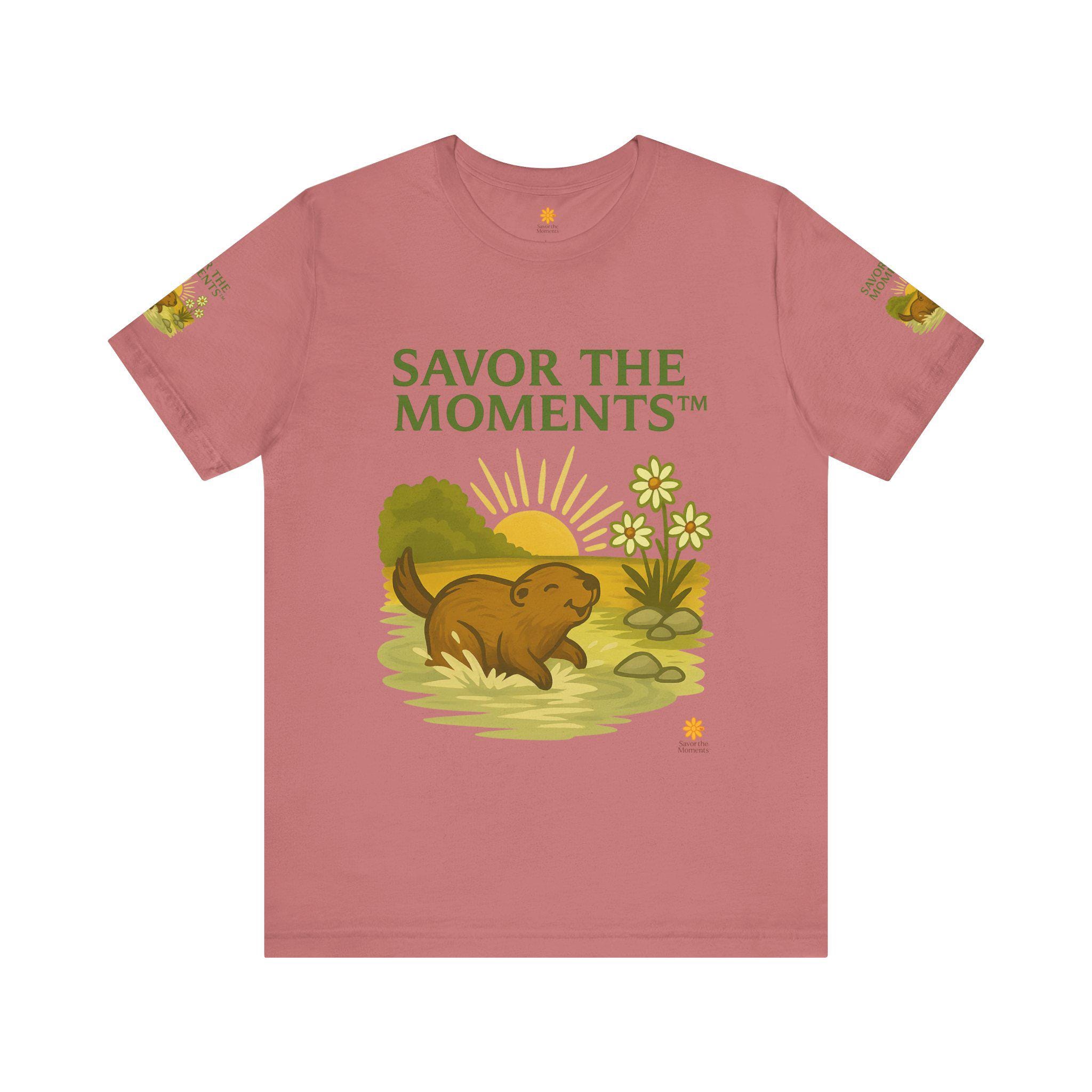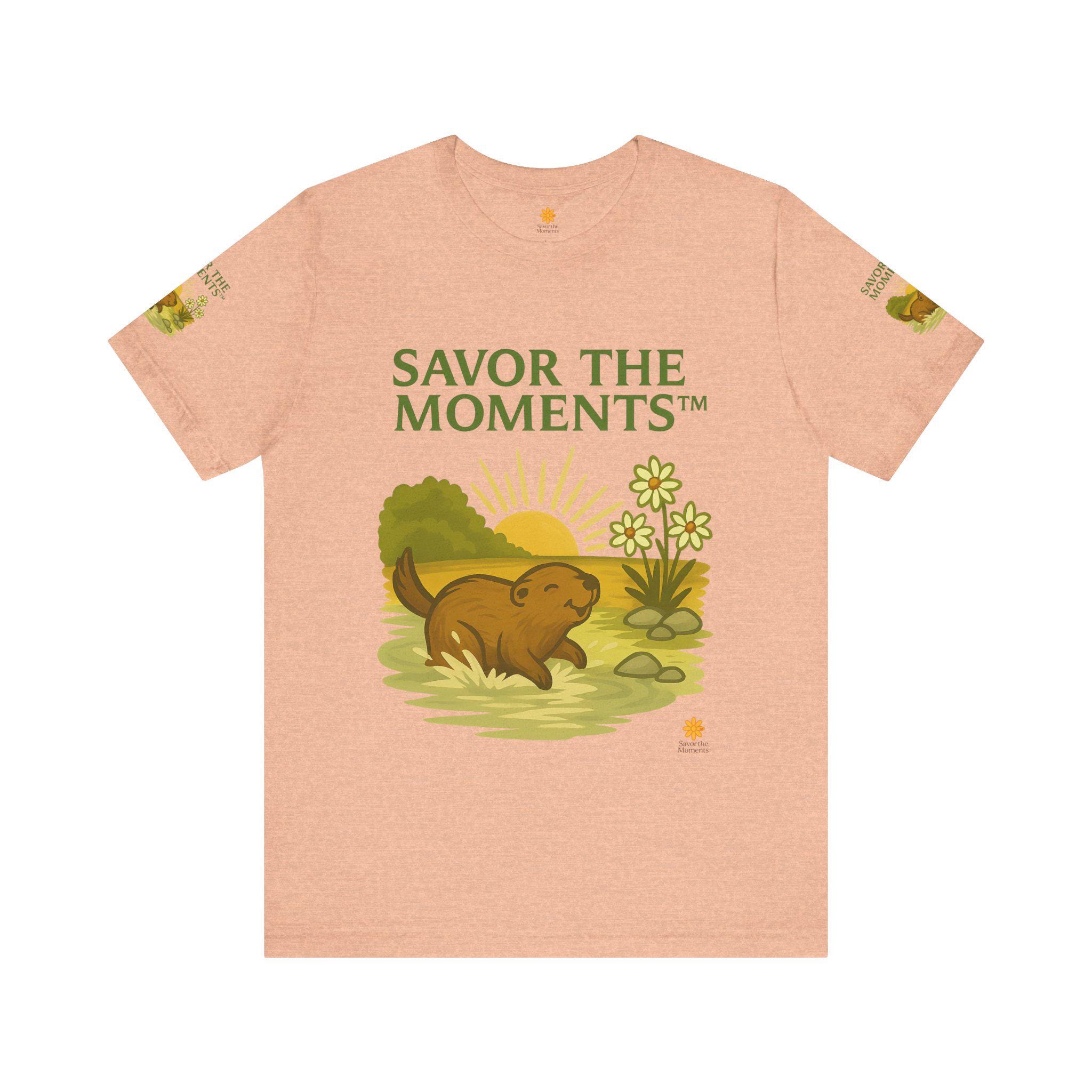 Beaver, Nature-Inspired Unisex Tee Outdoor Lovers, Savor the Moments, Nature Enthusiasts, Casual Wear, Summer Essential