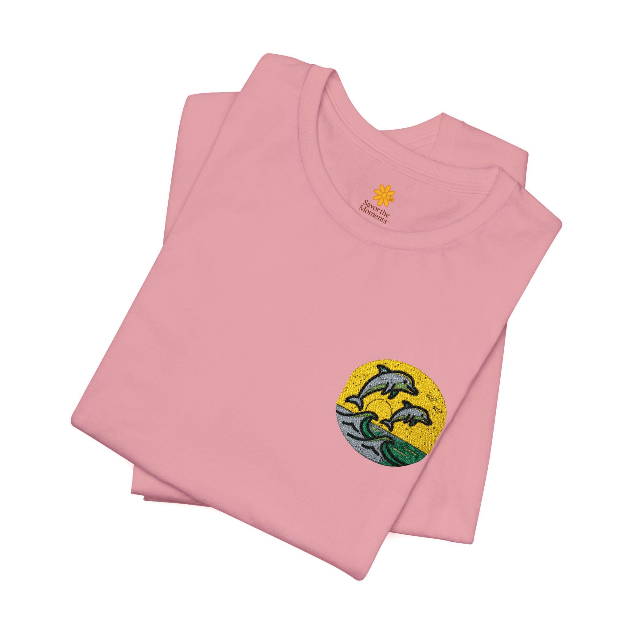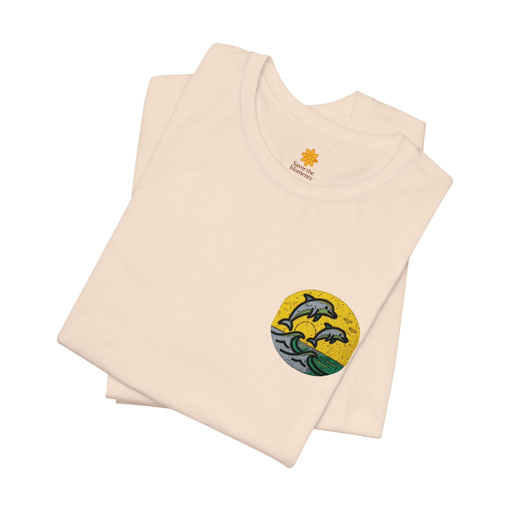Dolphins, Nature-Inspired Unisex Tee with Floral Design, Casual Shirt, Eco-Friendly Gift, Outdoor Adventure Apparel