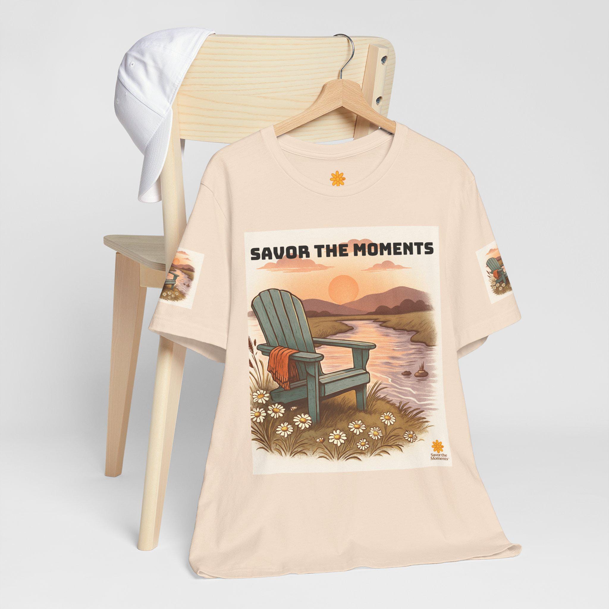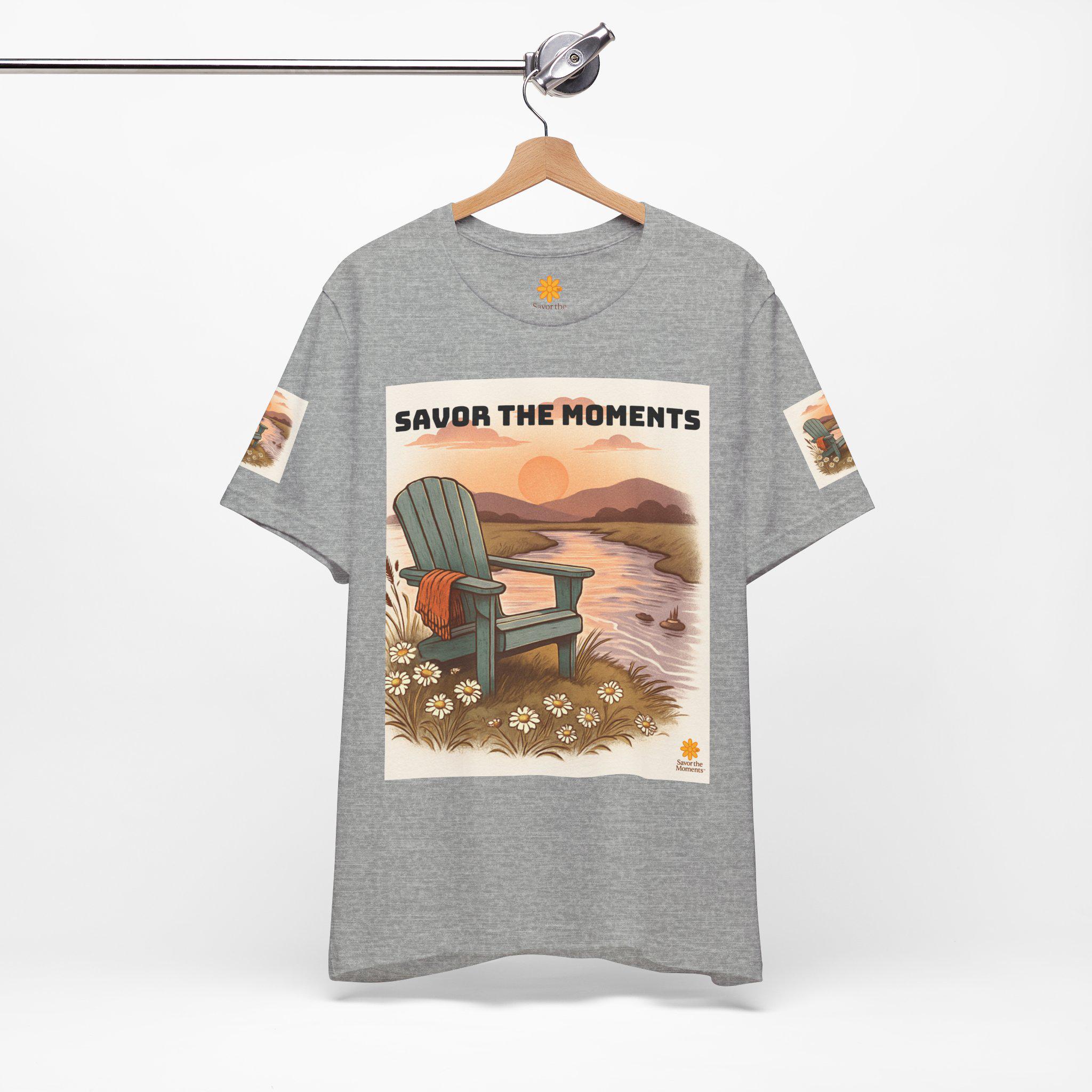 This Unisex Jersey Short Sleeve Tee embodies a serene and comfy vibe, perfect for those who appreciate the beauty of nature. Featuring a charming design that showcases a tranquil scene with an adirondack chair, this tee invites relaxation and leisure into your life. It’s an ideal choice for nature lovers and anyone who enjoys cozy evenings by the water. Versatile enough for casual outings or laid-back gatherings, this shirt makes a great companion for picnics, beach trips, or simple day-to-day wear. Perfect for summer celebrations, outdoor events, or as a thoughtful gift for family and friends during holidays and special occasions like birthdays and anniversaries.
