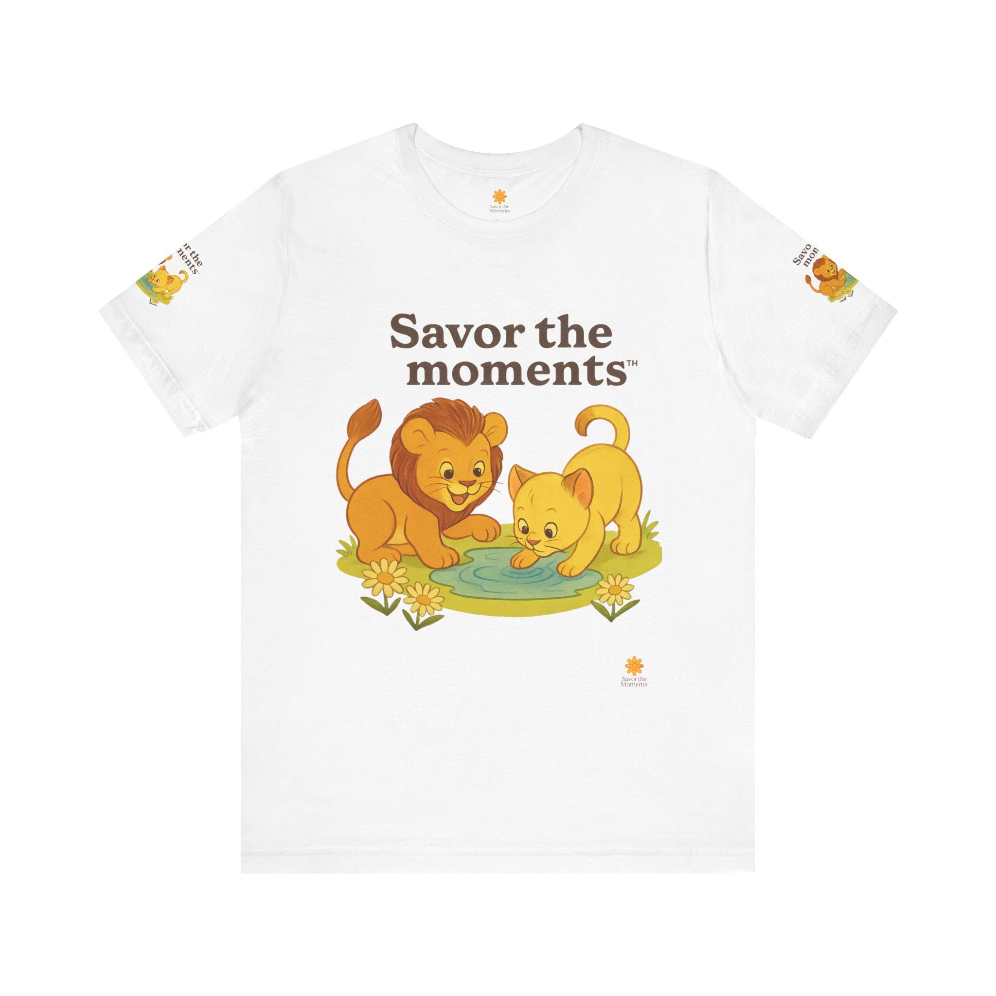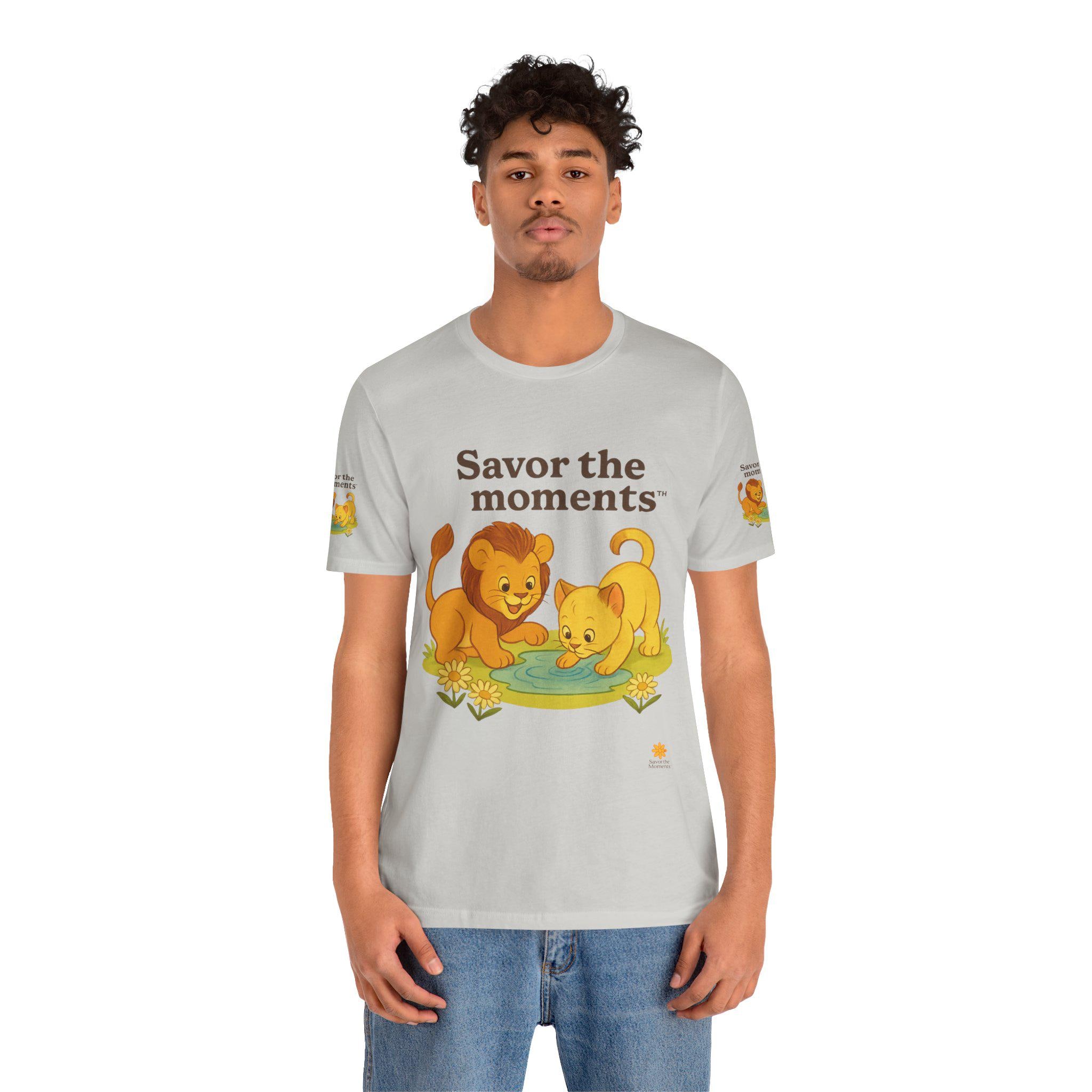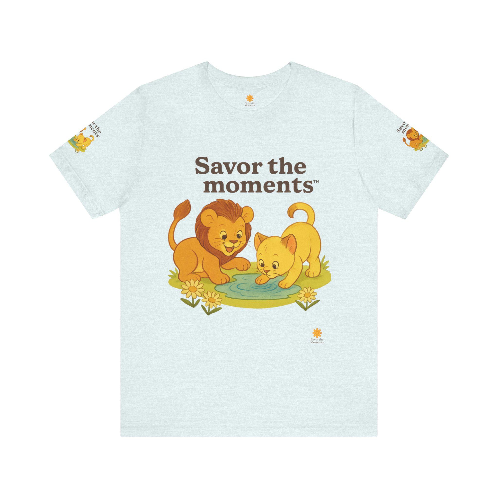Lions, water, playful, Unisex Jersey Short Sleeve Tee