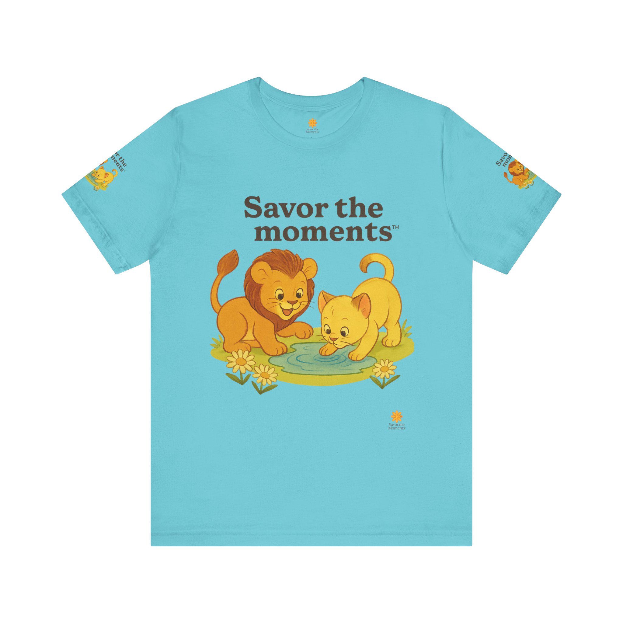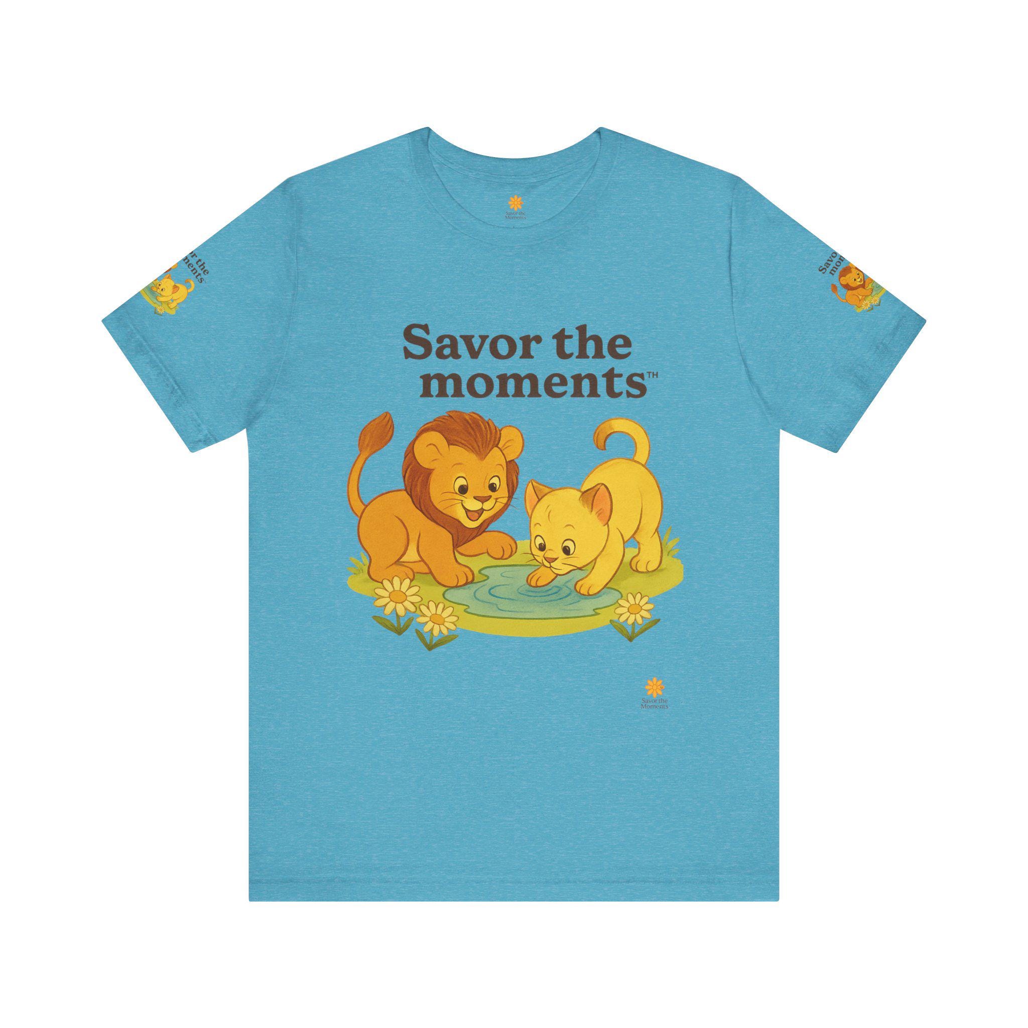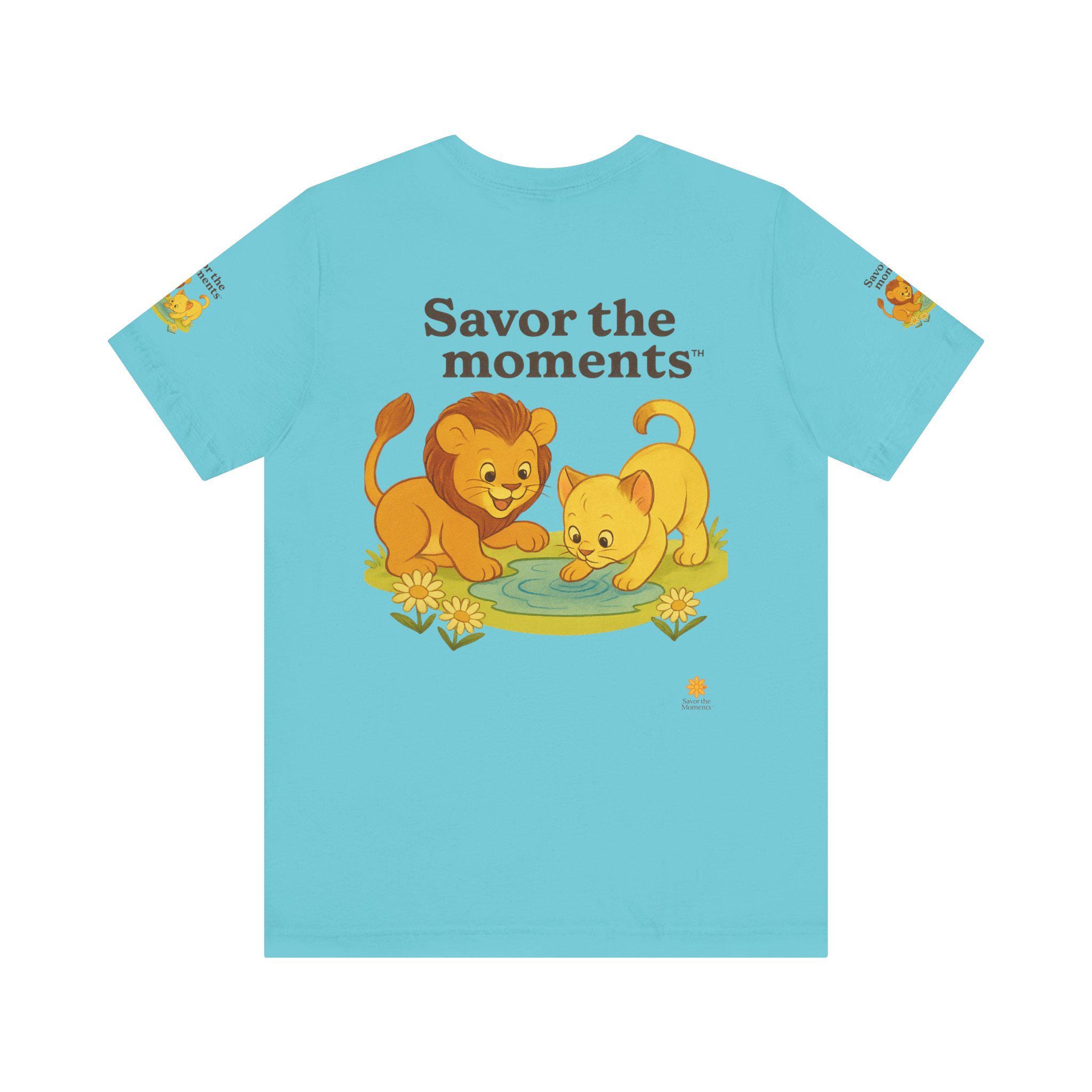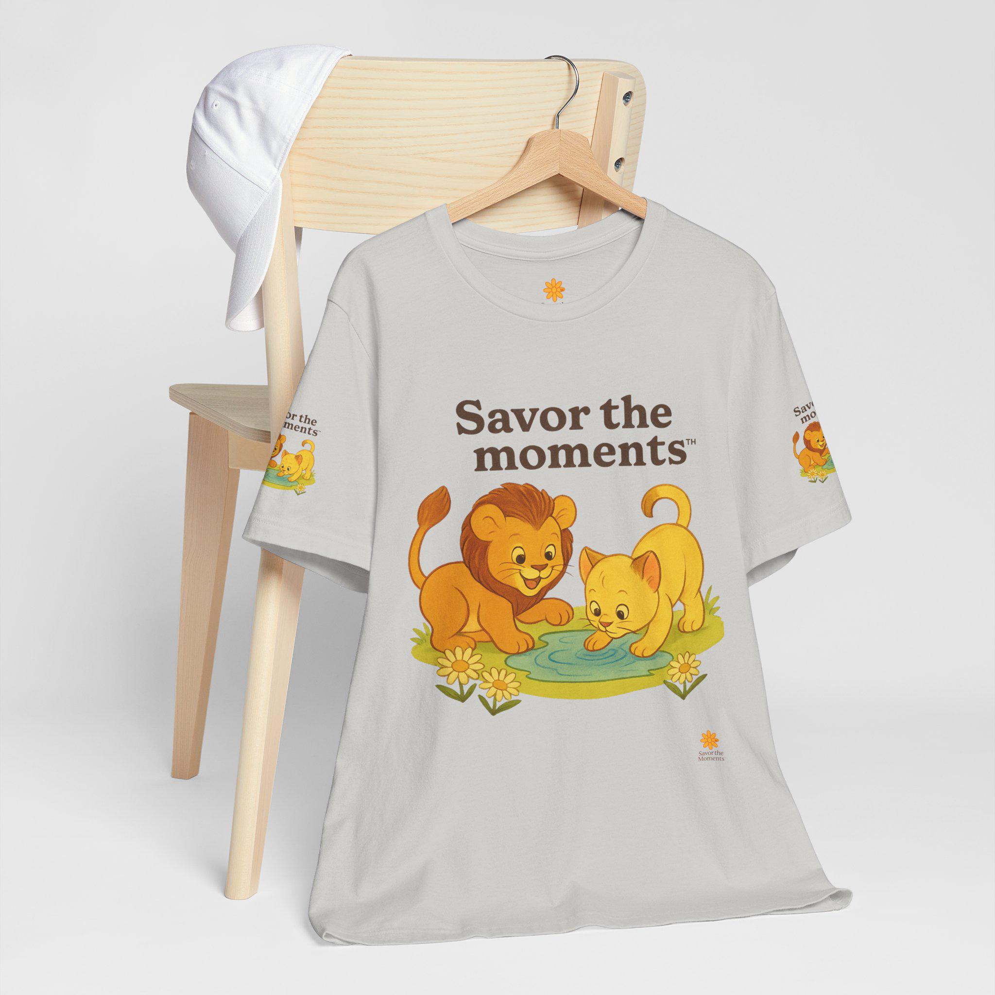 Lions, water, playful, Unisex Jersey Short Sleeve Tee