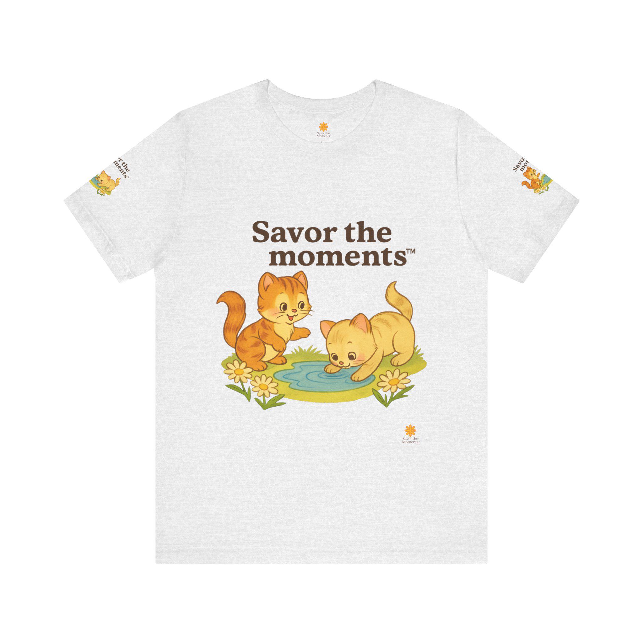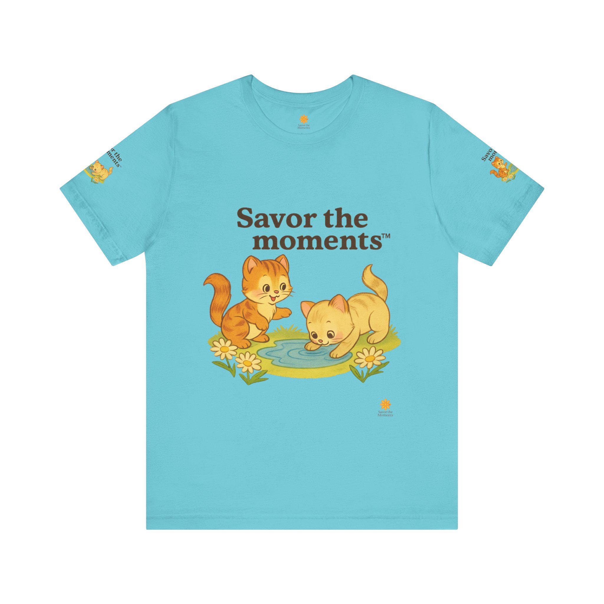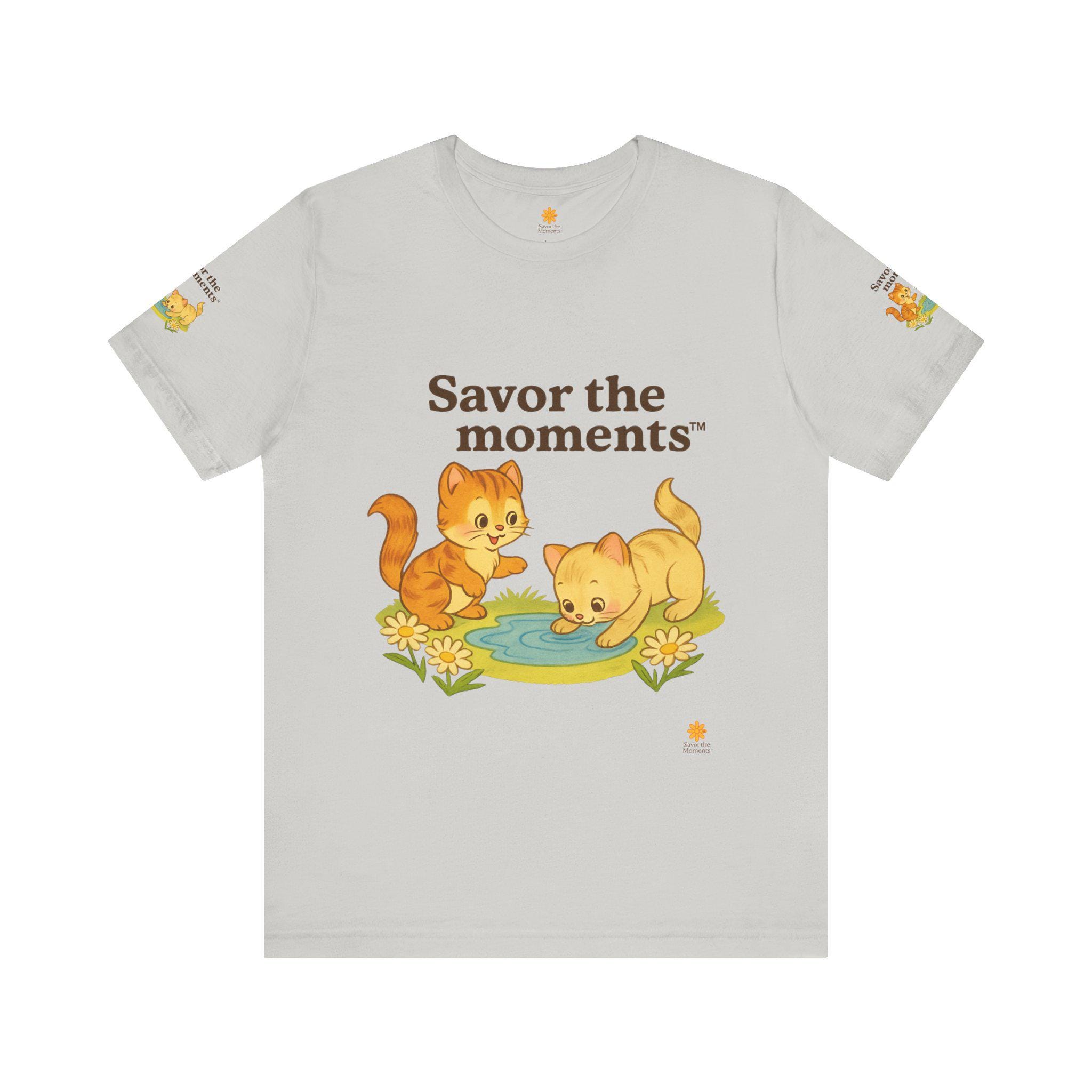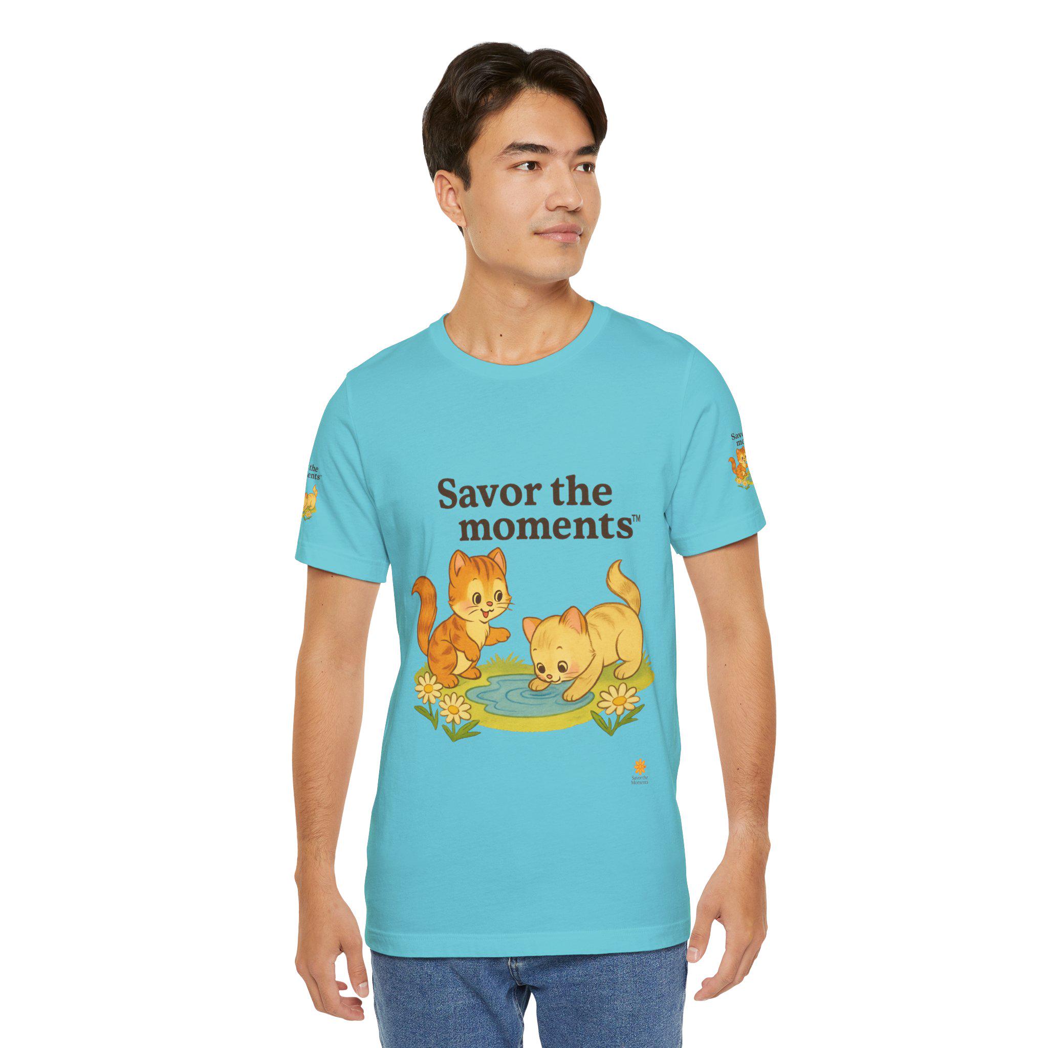 Cute Cat Illustration Tee | Savor the Moments Short Sleeve Shirt, Animal Lover Gift, Pet Enthusiast Apparel, Summer Fashion, Cute [...]
