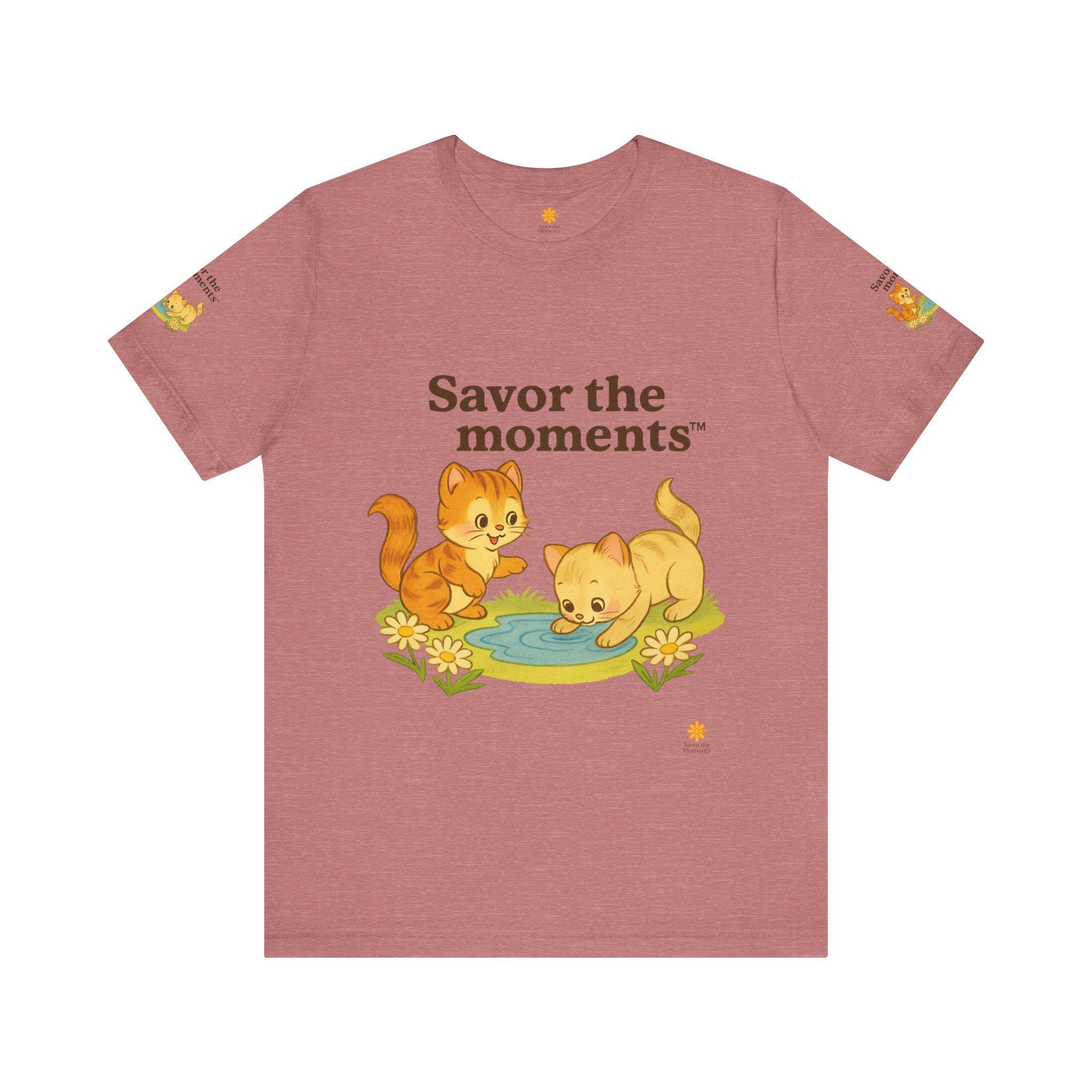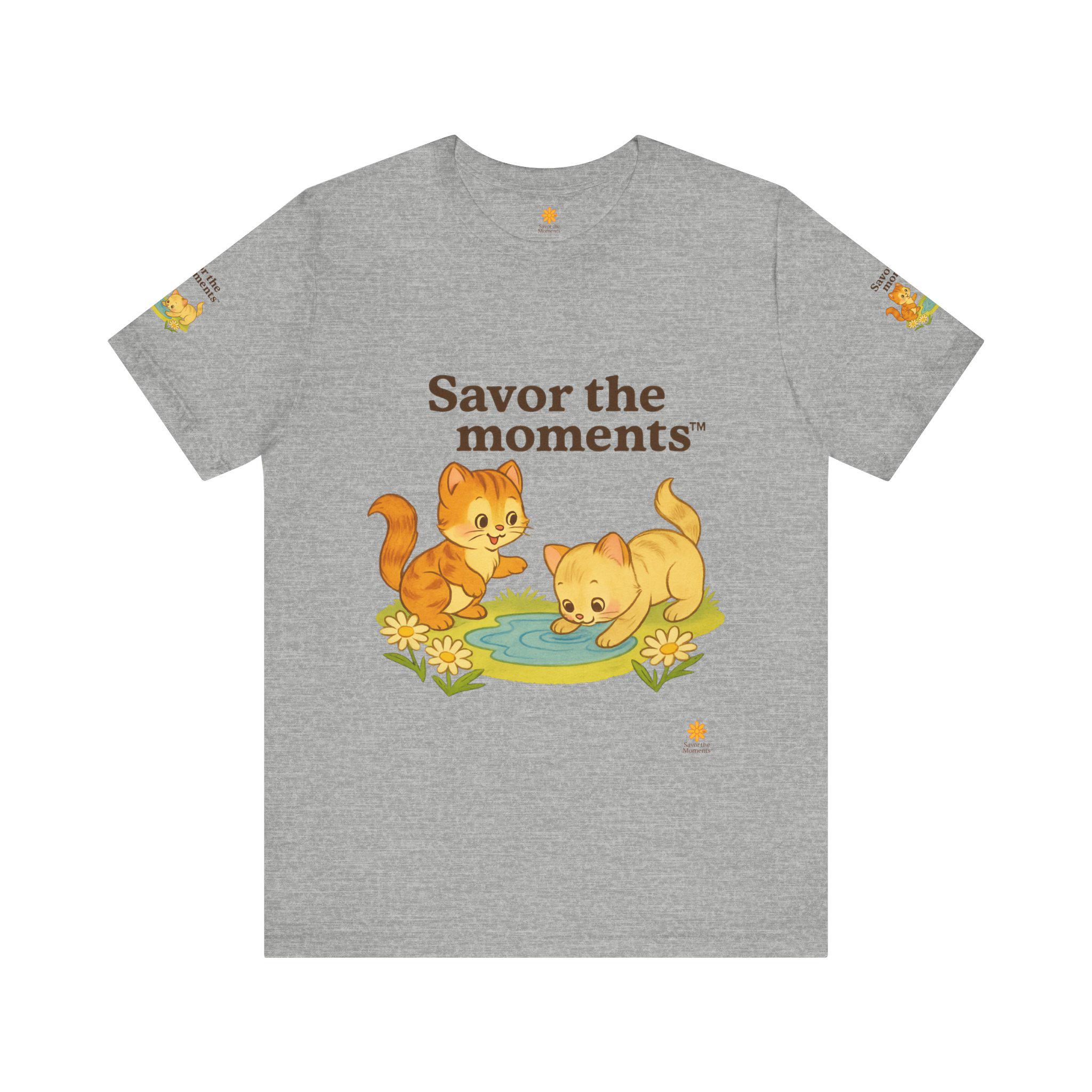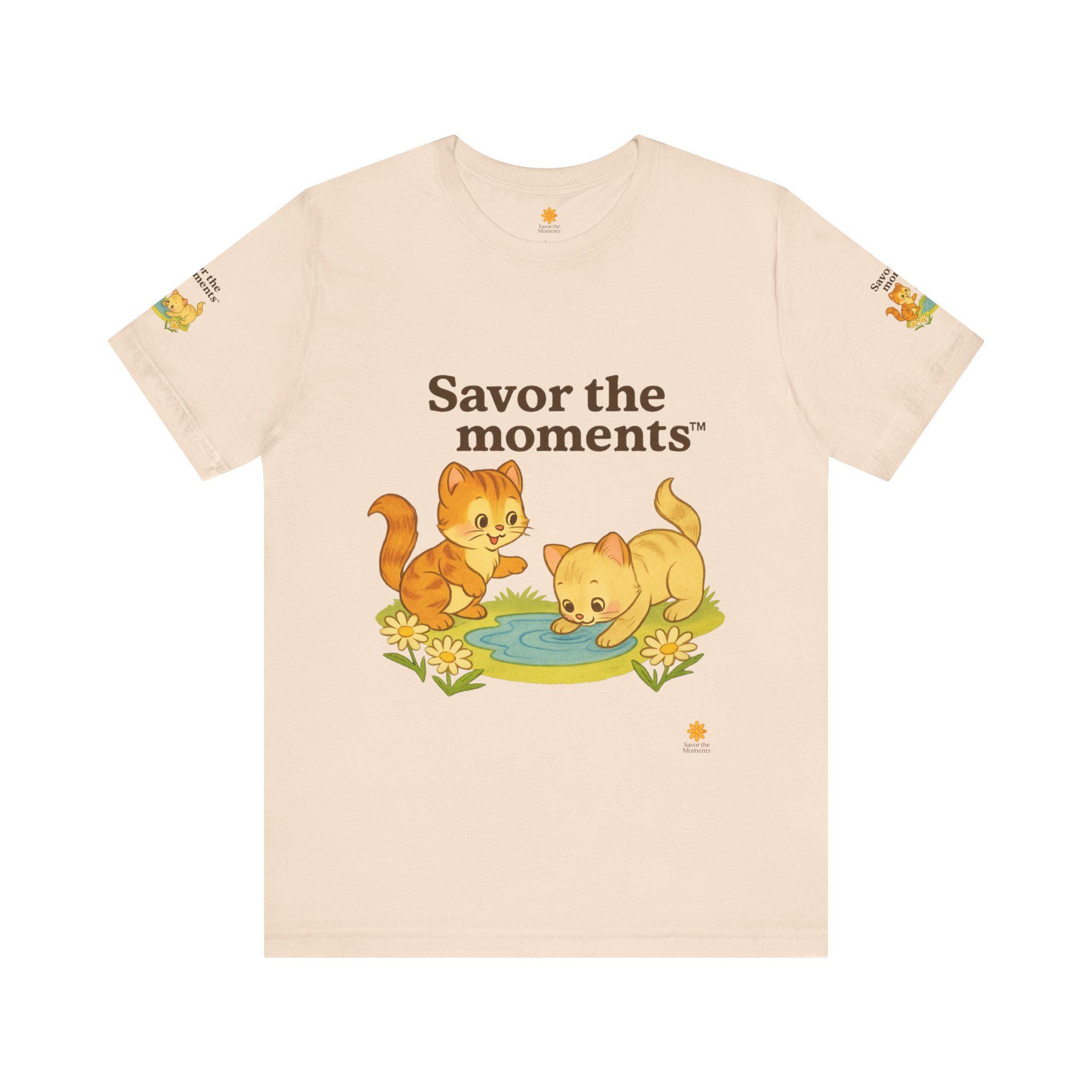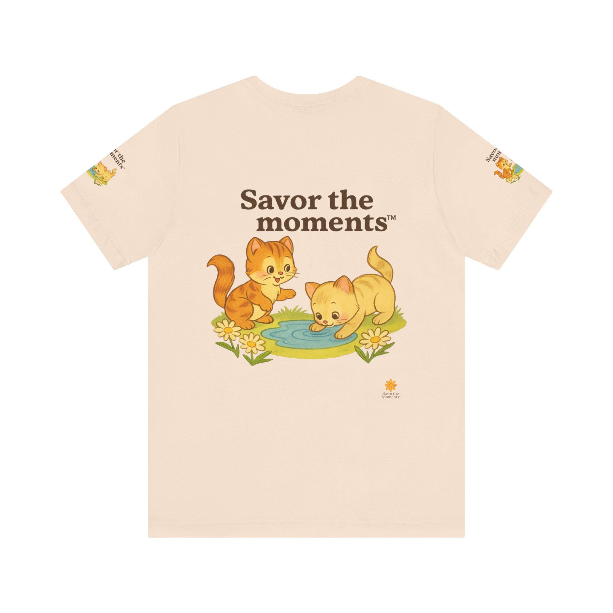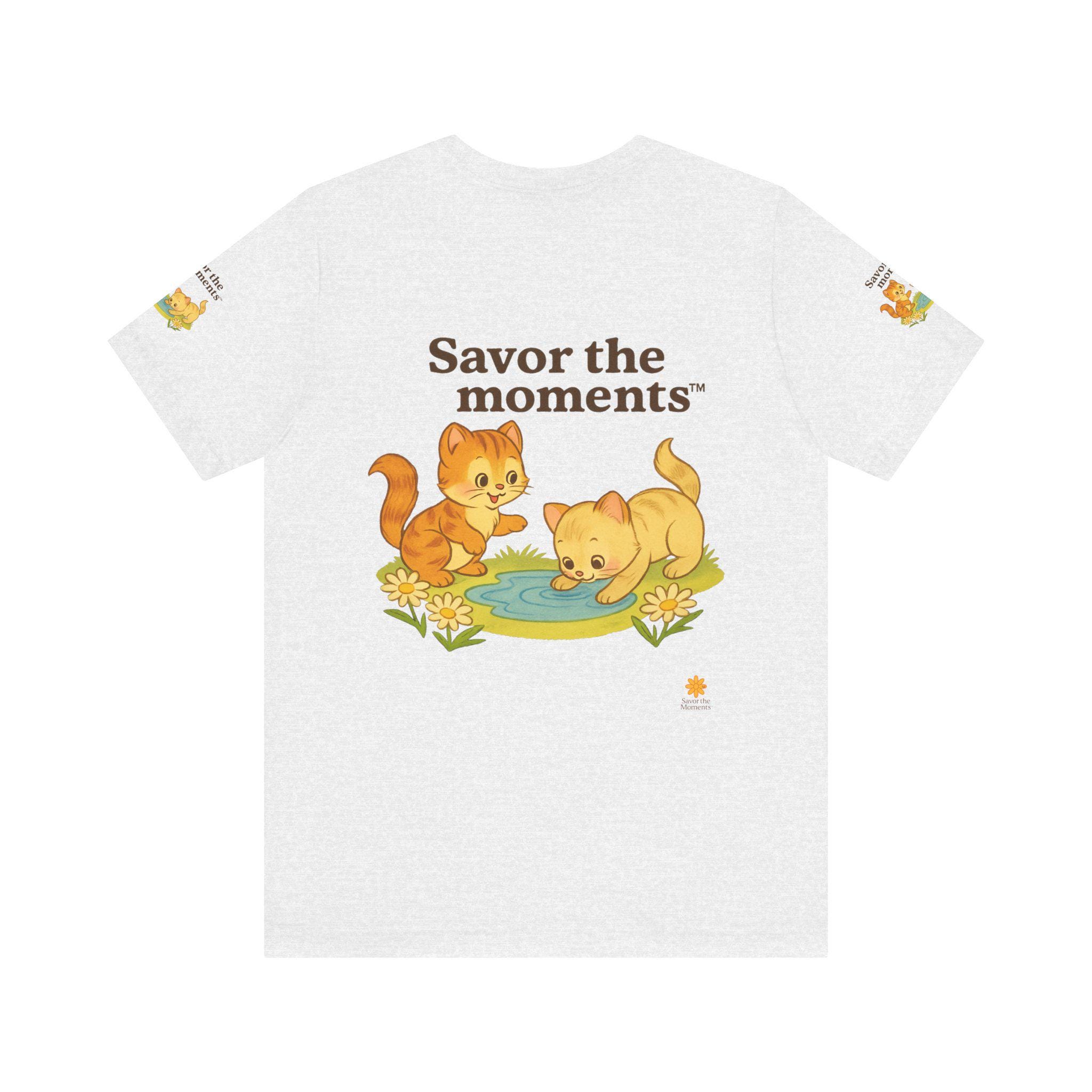 Cute Cat Illustration Tee | Savor the Moments Short Sleeve Shirt, Animal Lover Gift, Pet Enthusiast Apparel, Summer Fashion, Cute [...]