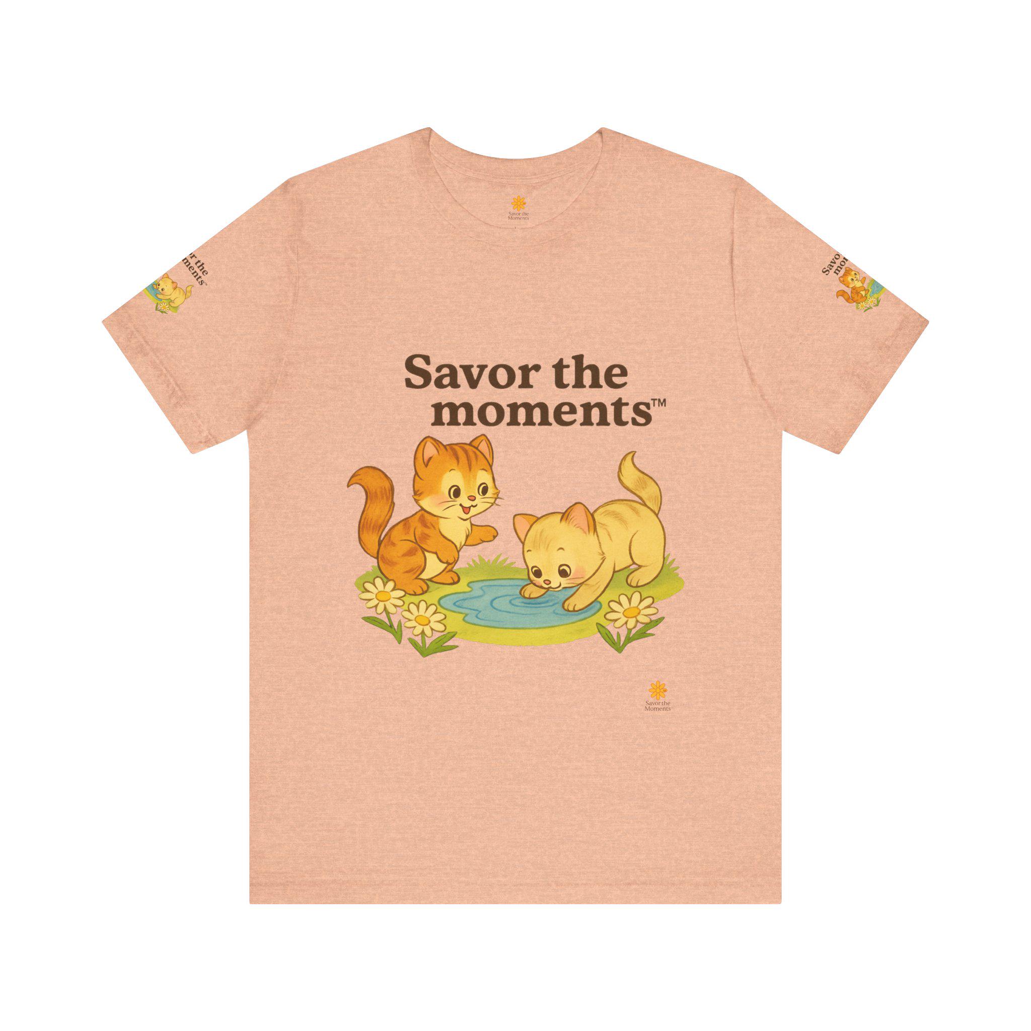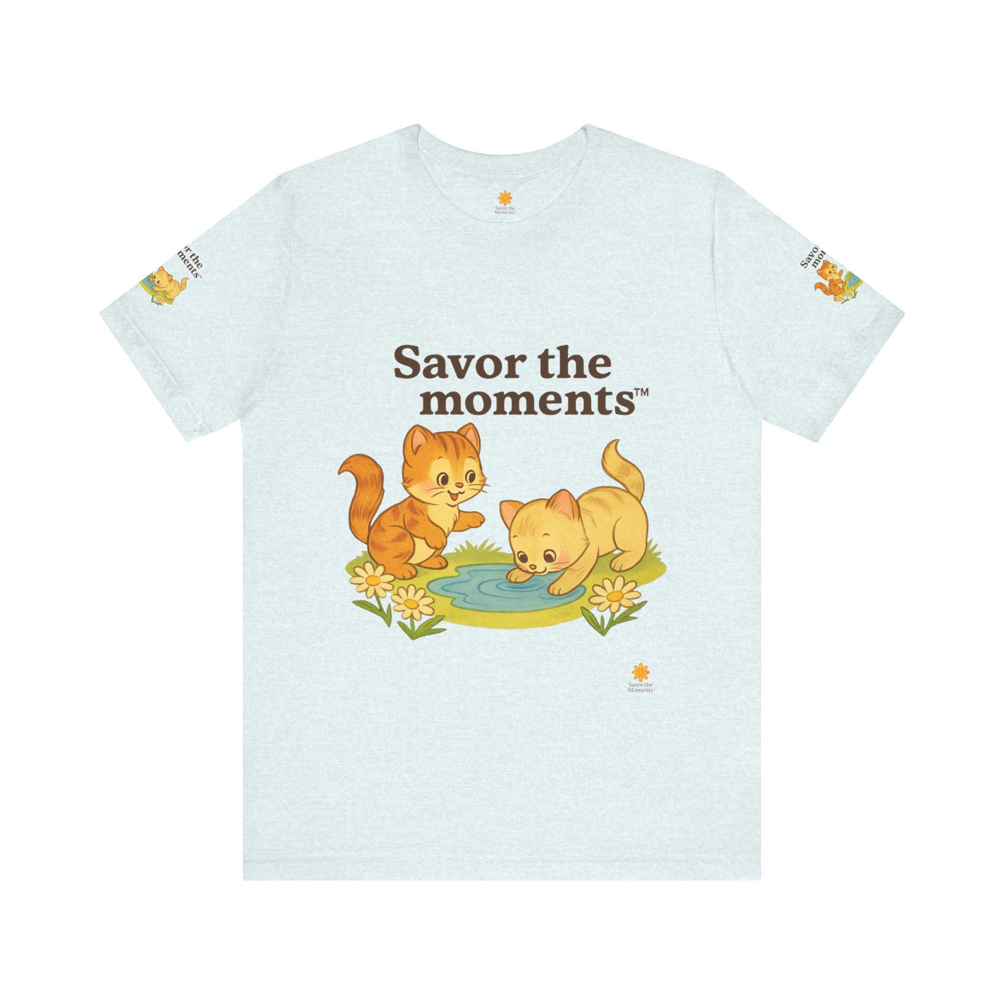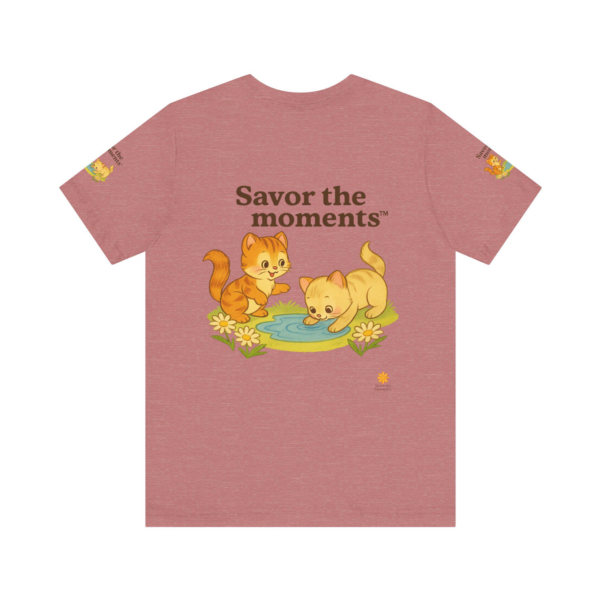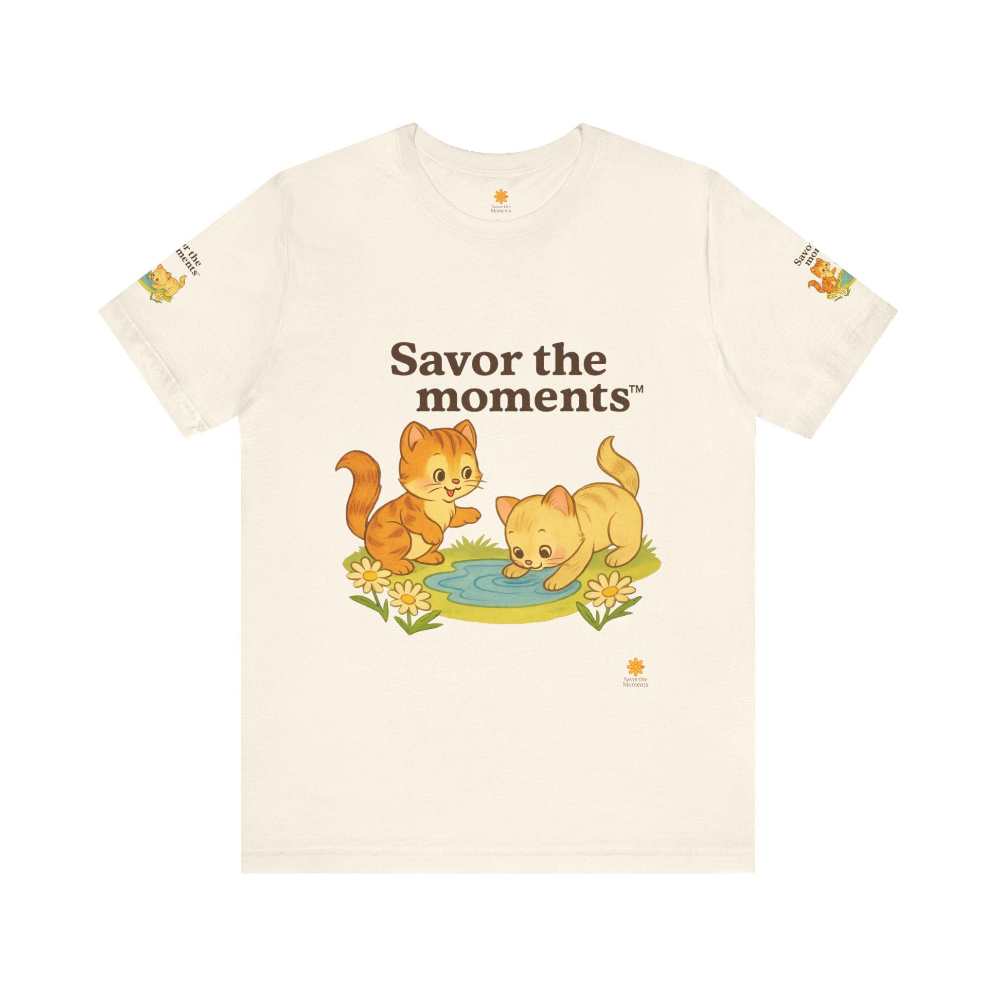 Cute Cat Illustration Tee | Savor the Moments Short Sleeve Shirt, Animal Lover Gift, Pet Enthusiast Apparel, Summer Fashion, Cute [...]