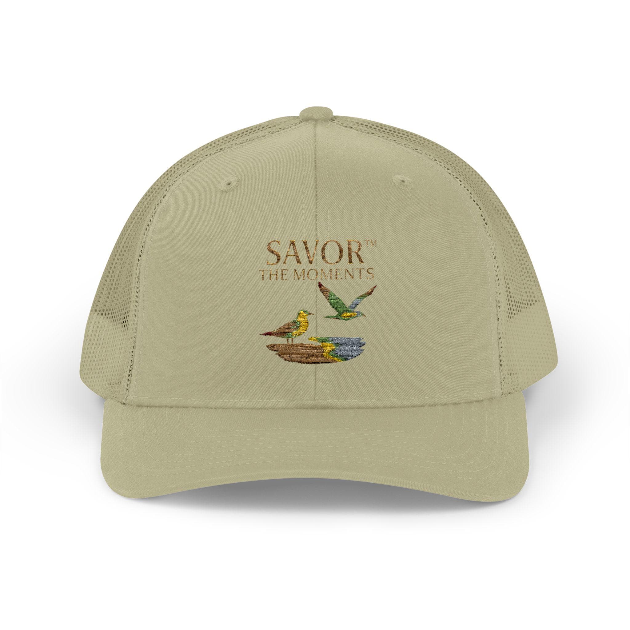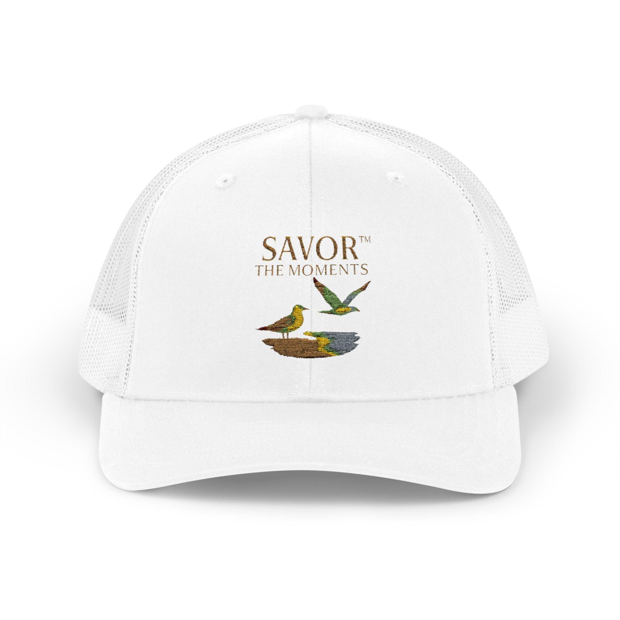 Sea Gulls, Snapback Trucker Cap with 'Savor the Moments' Design, for Outdoor Adventures, Nature Lovers