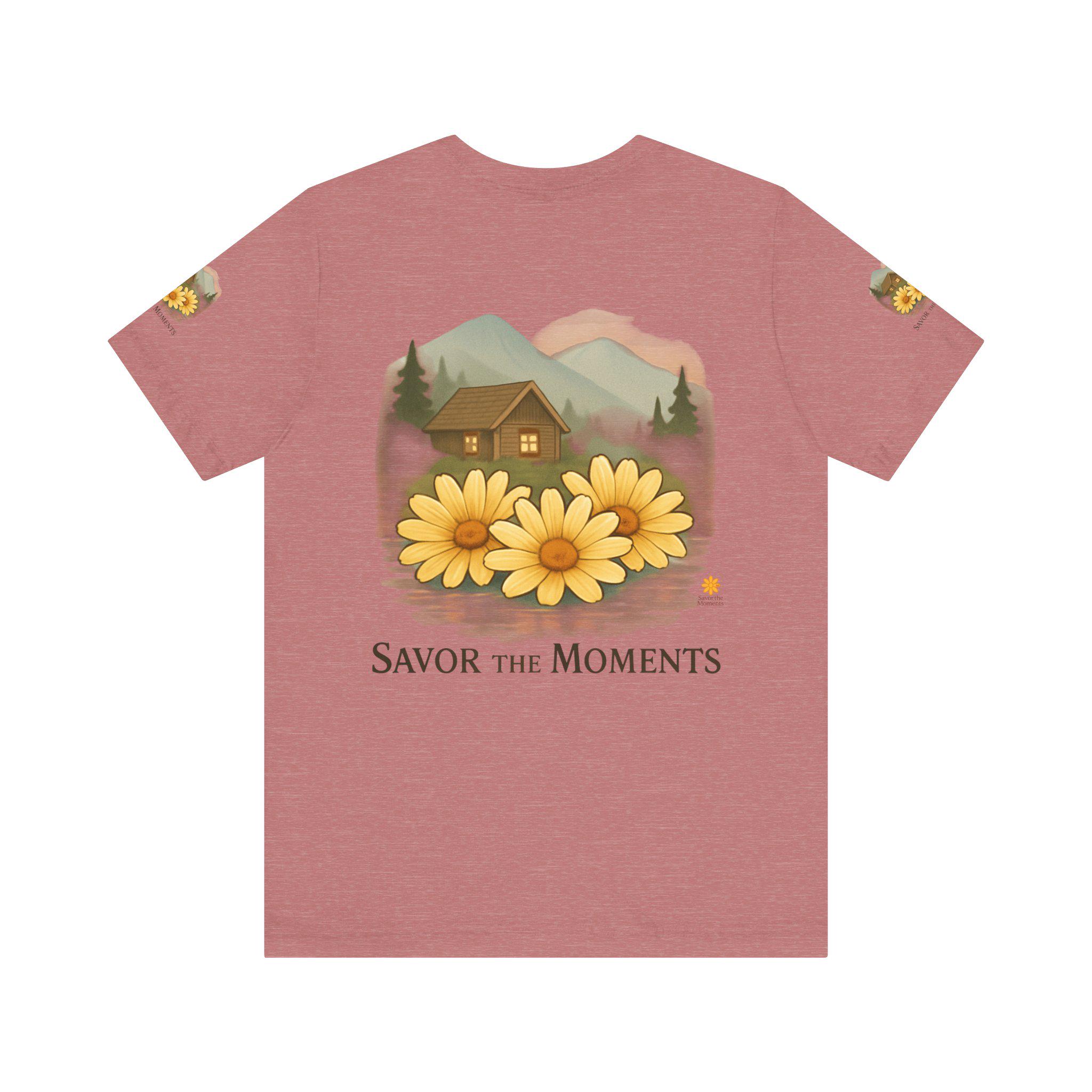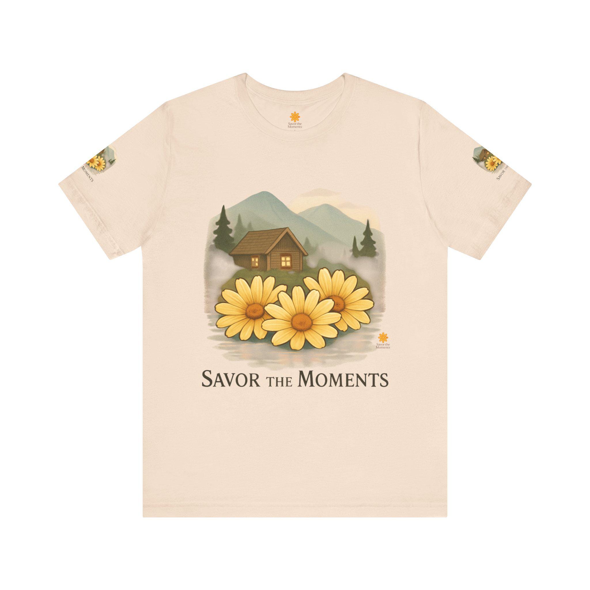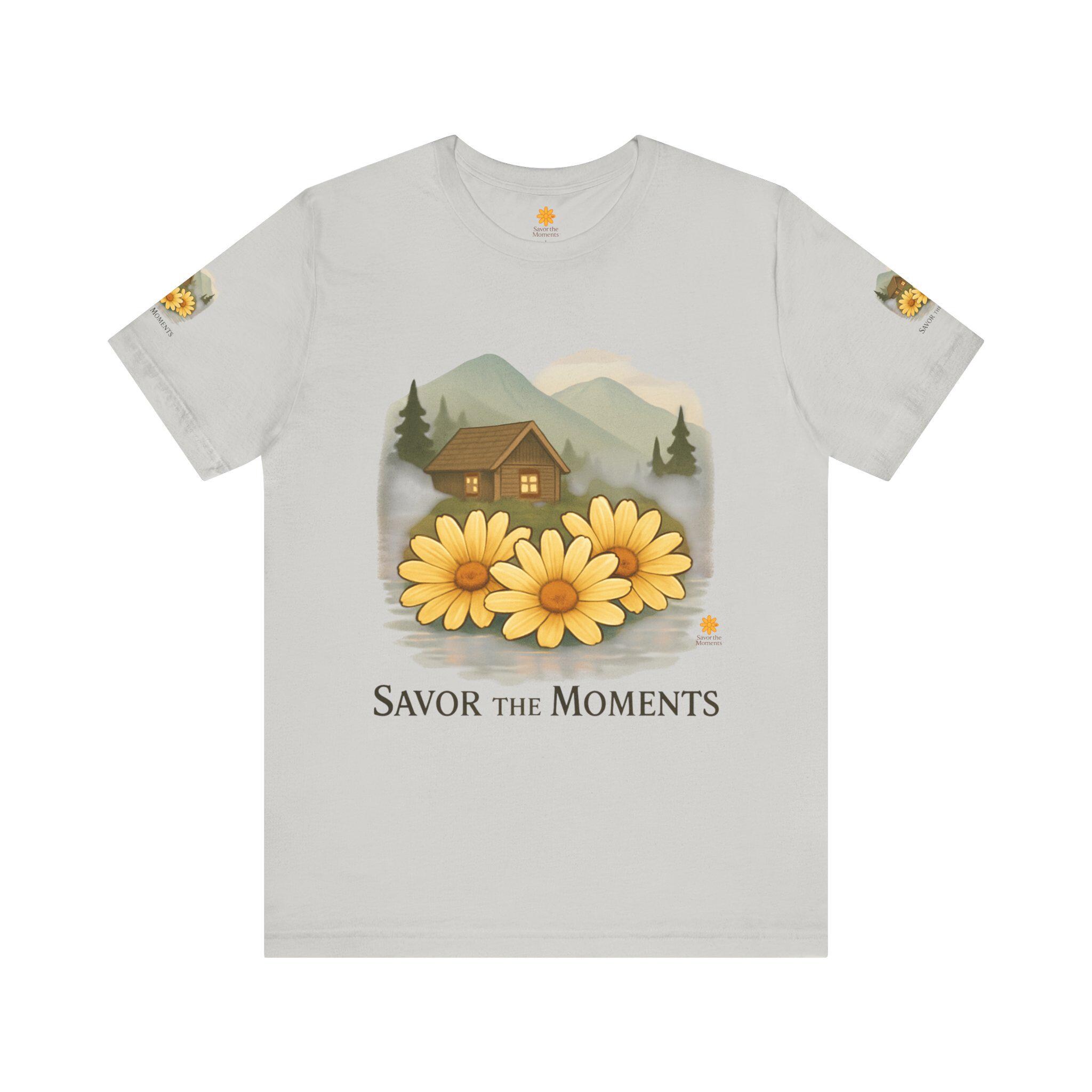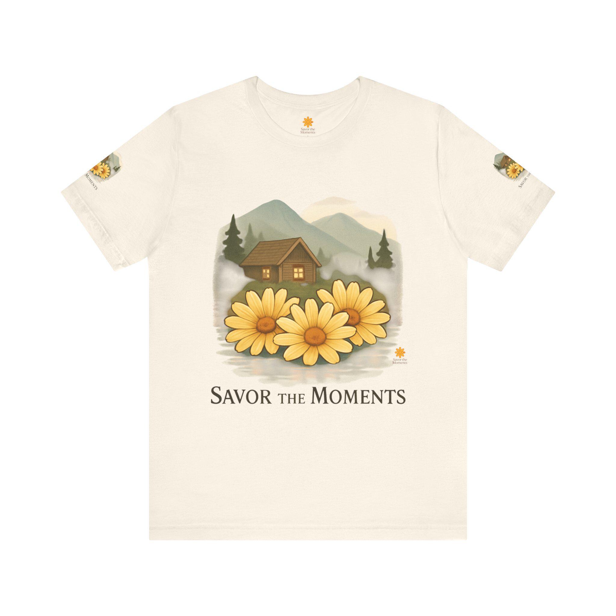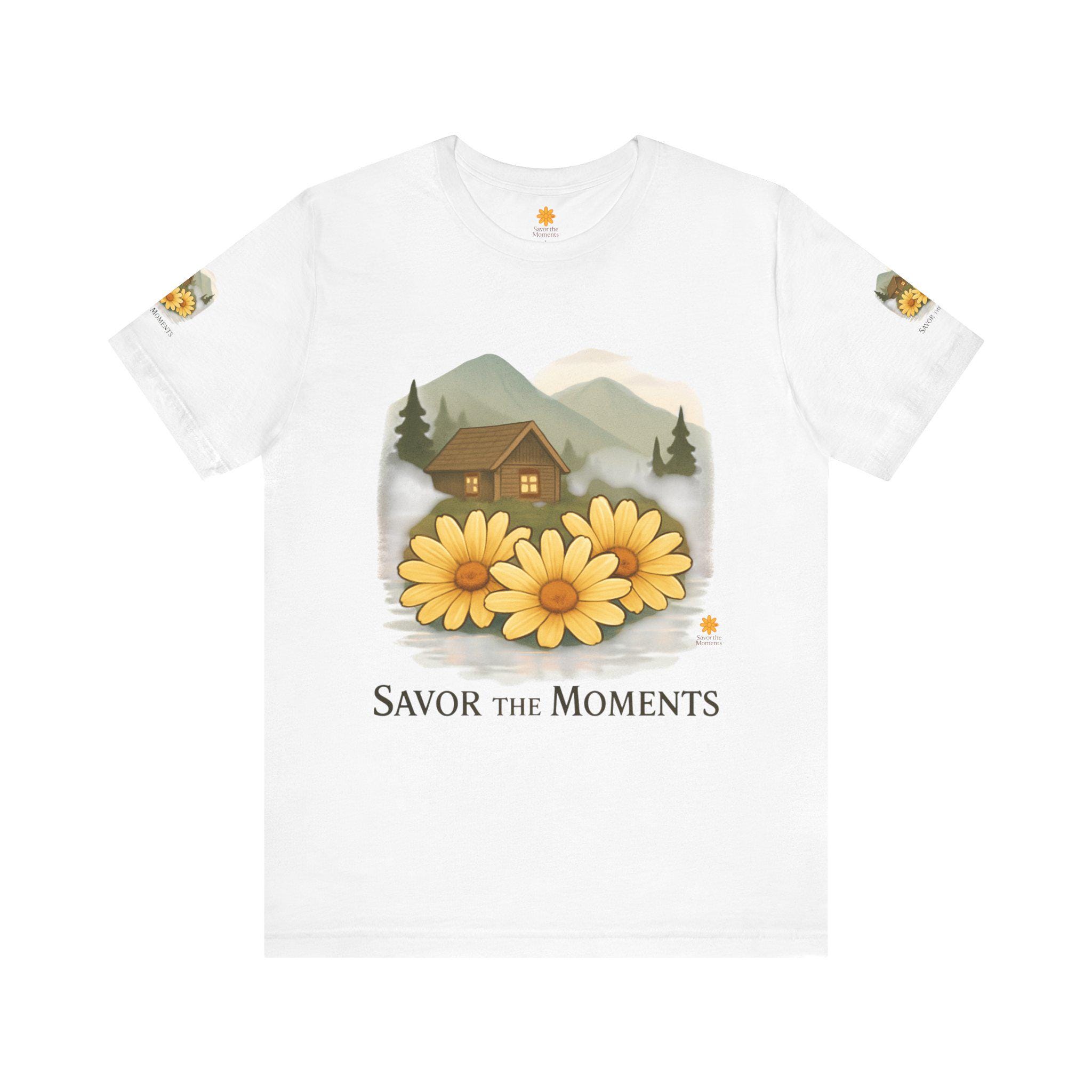 Cabin, Daisies, Floral Nature Graphic Tee, Savor the Moments, Unisex Jersey, birthday gift, casual wear