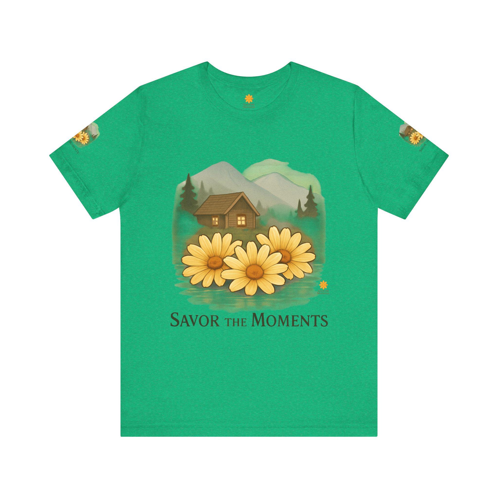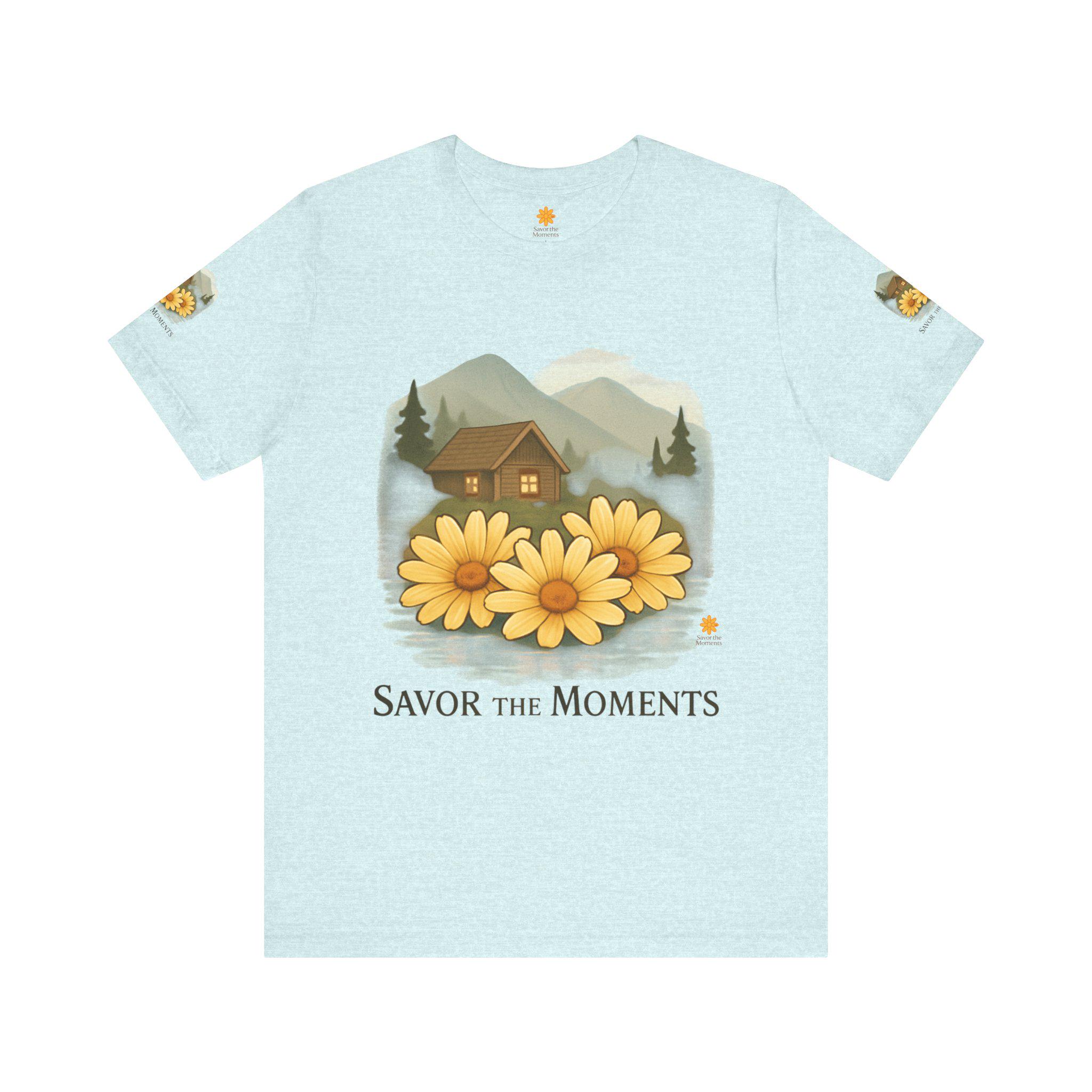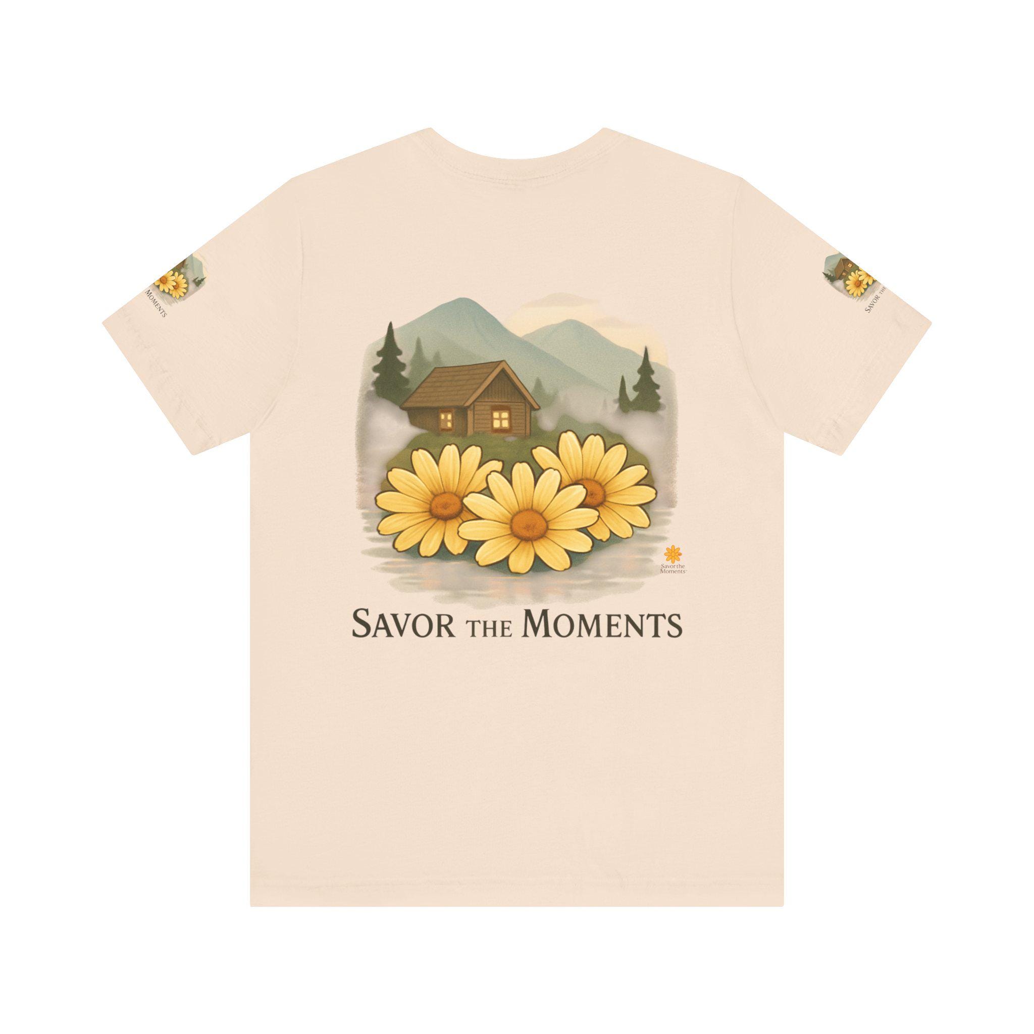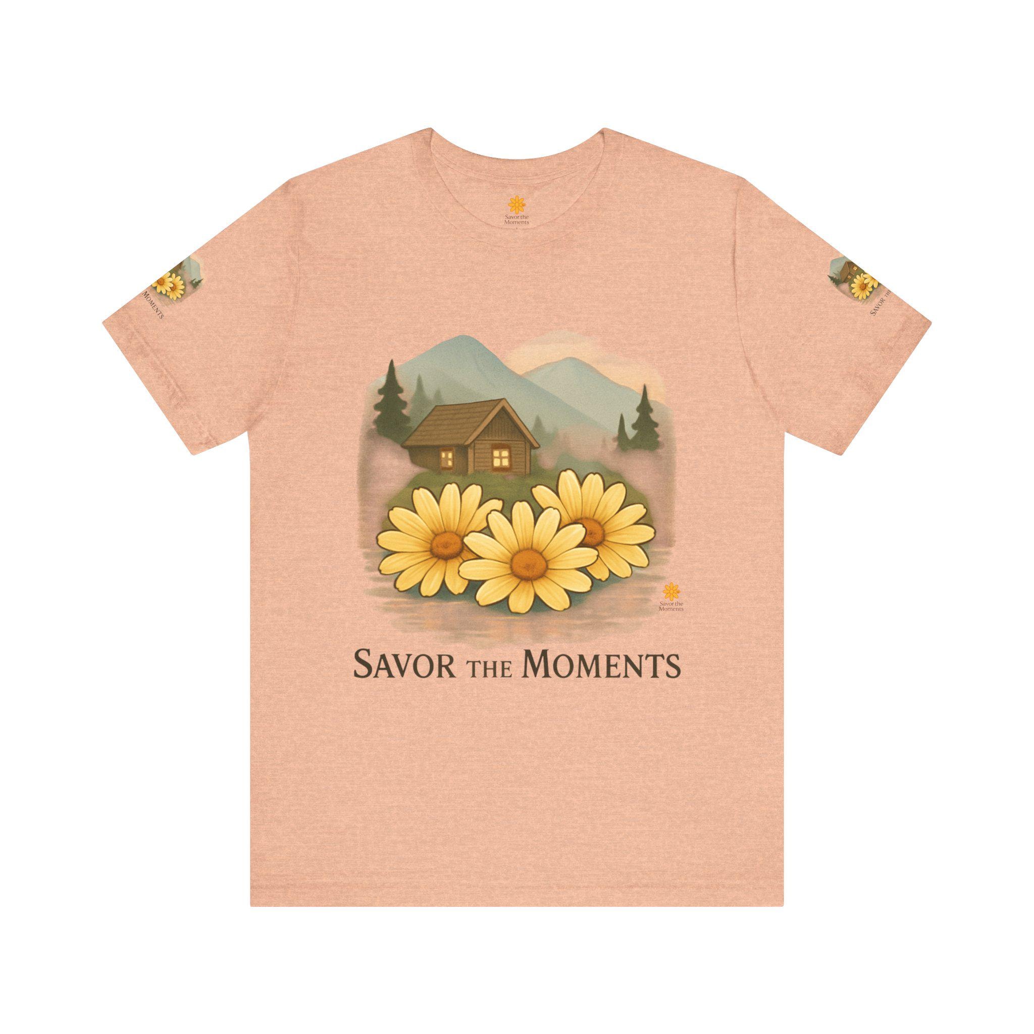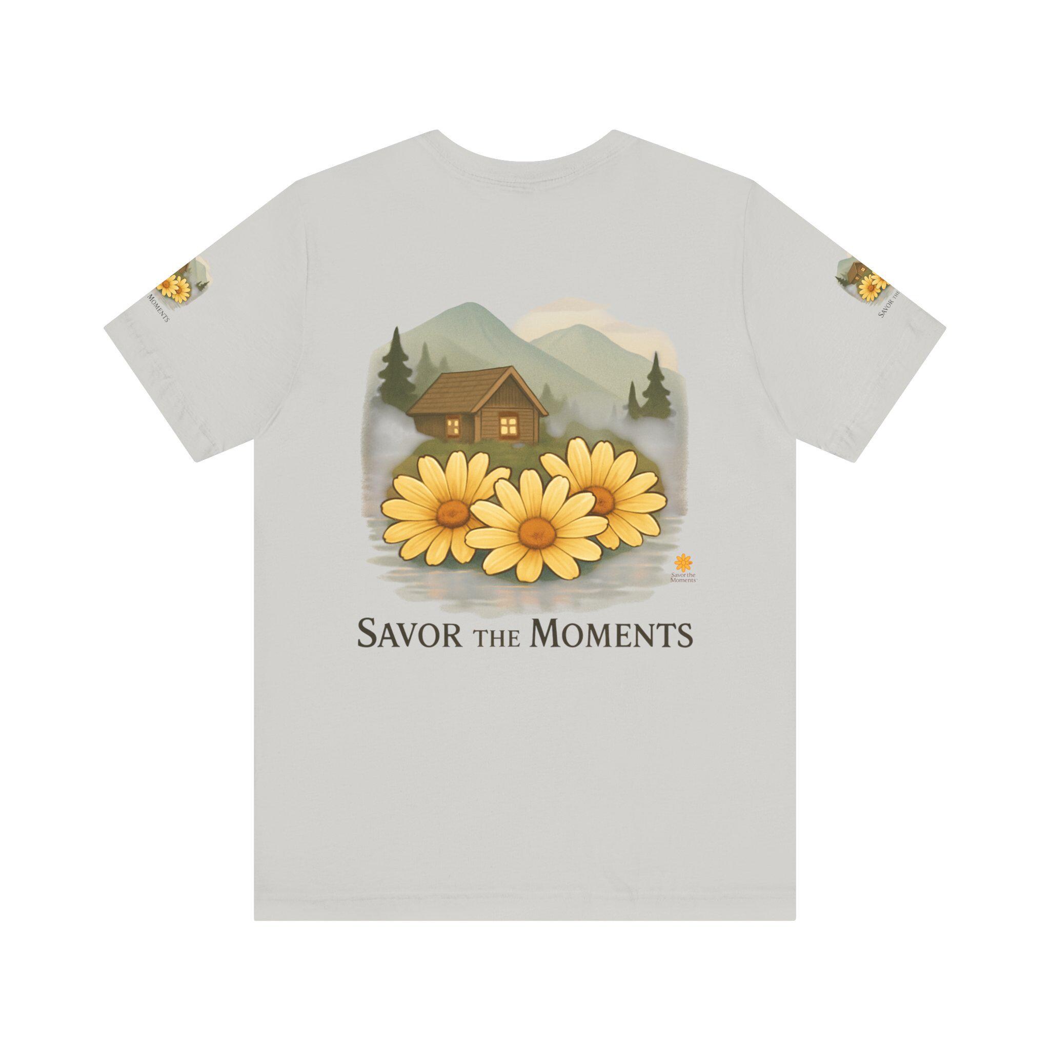 Cabin, Daisies, Floral Nature Graphic Tee, Savor the Moments, Unisex Jersey, birthday gift, casual wear