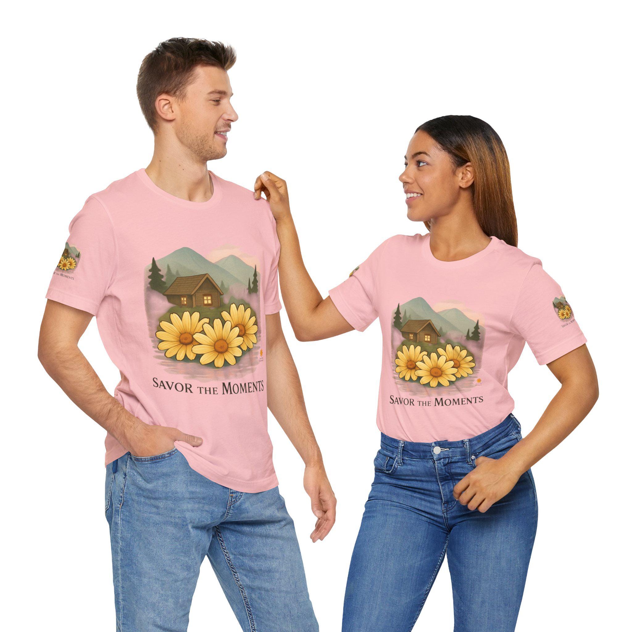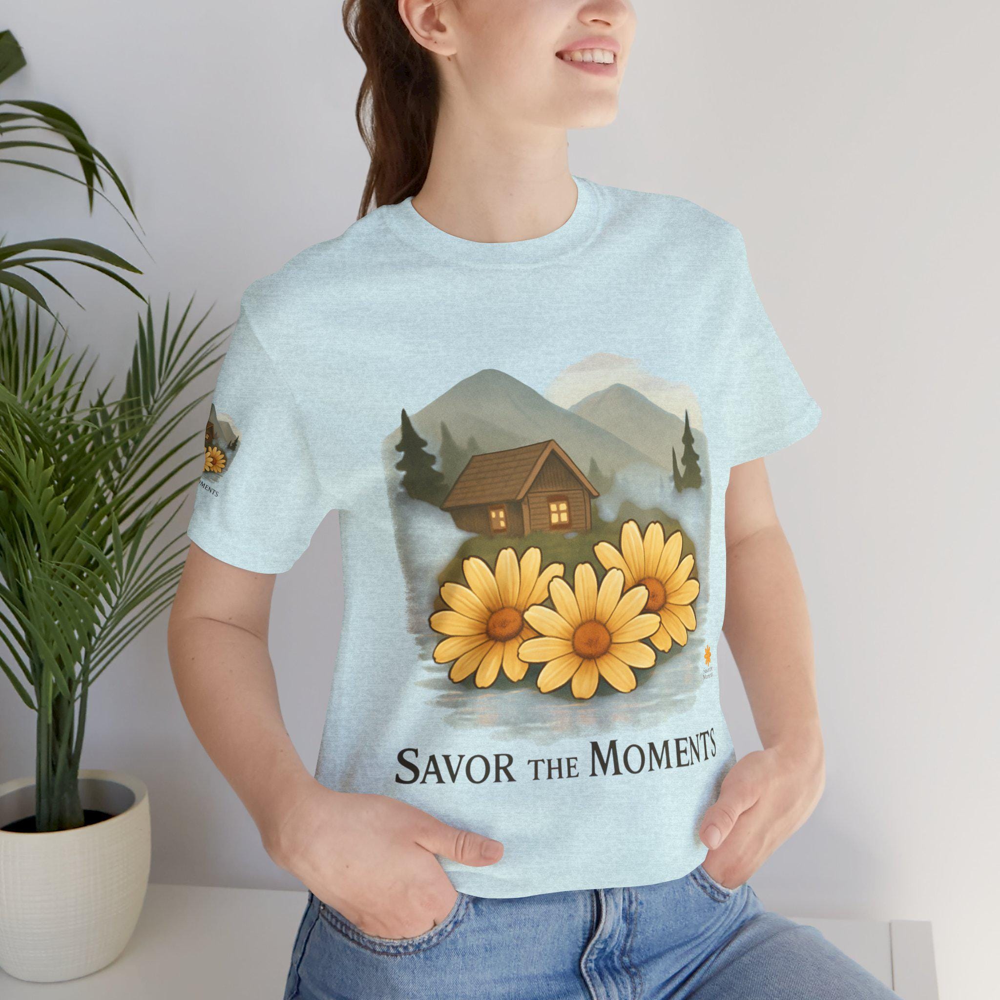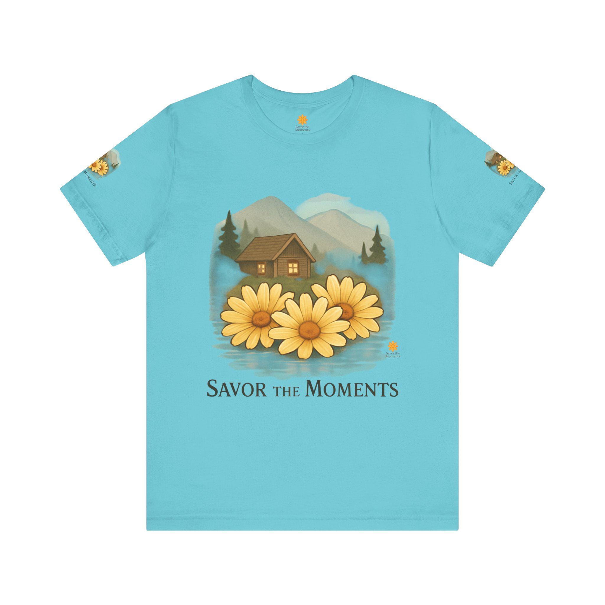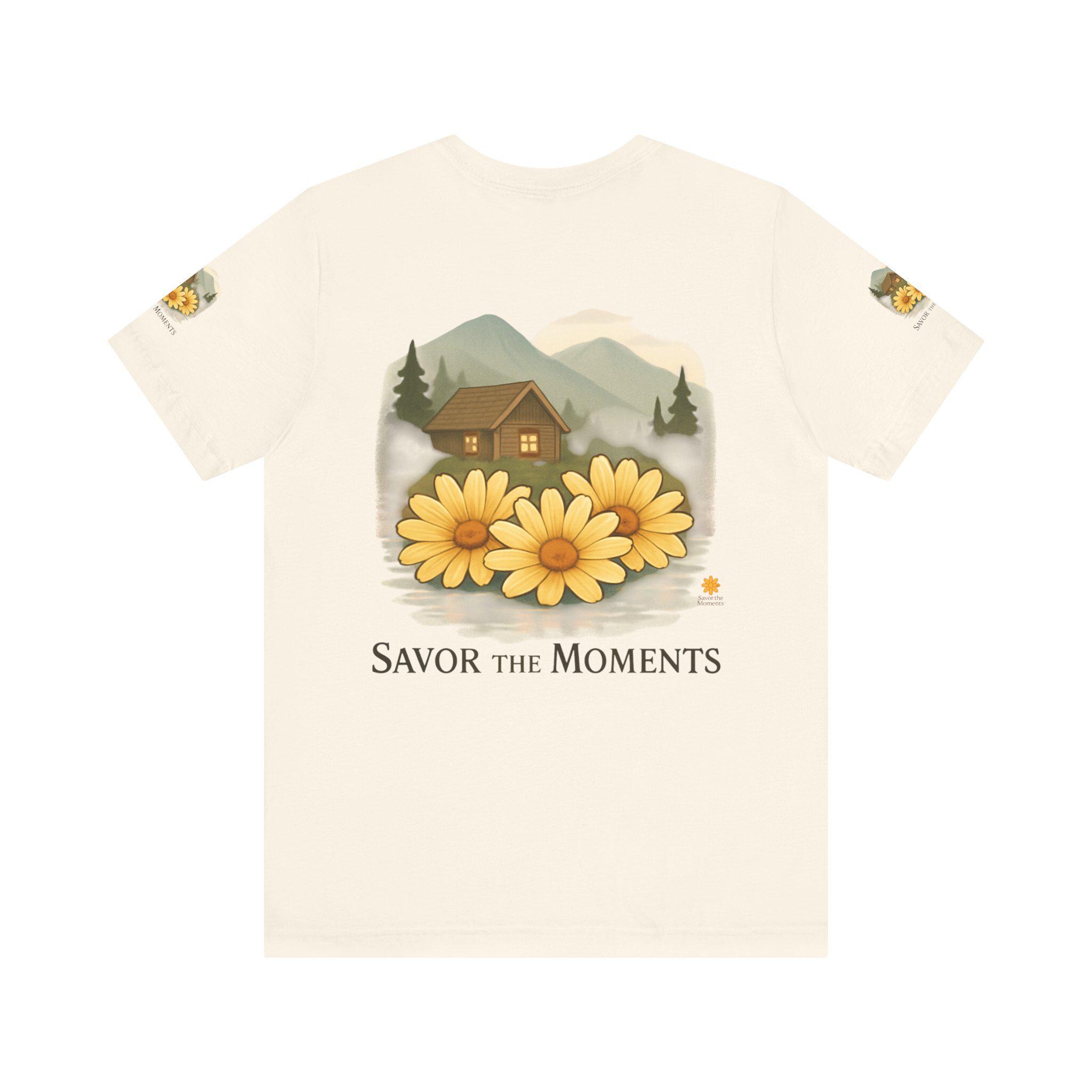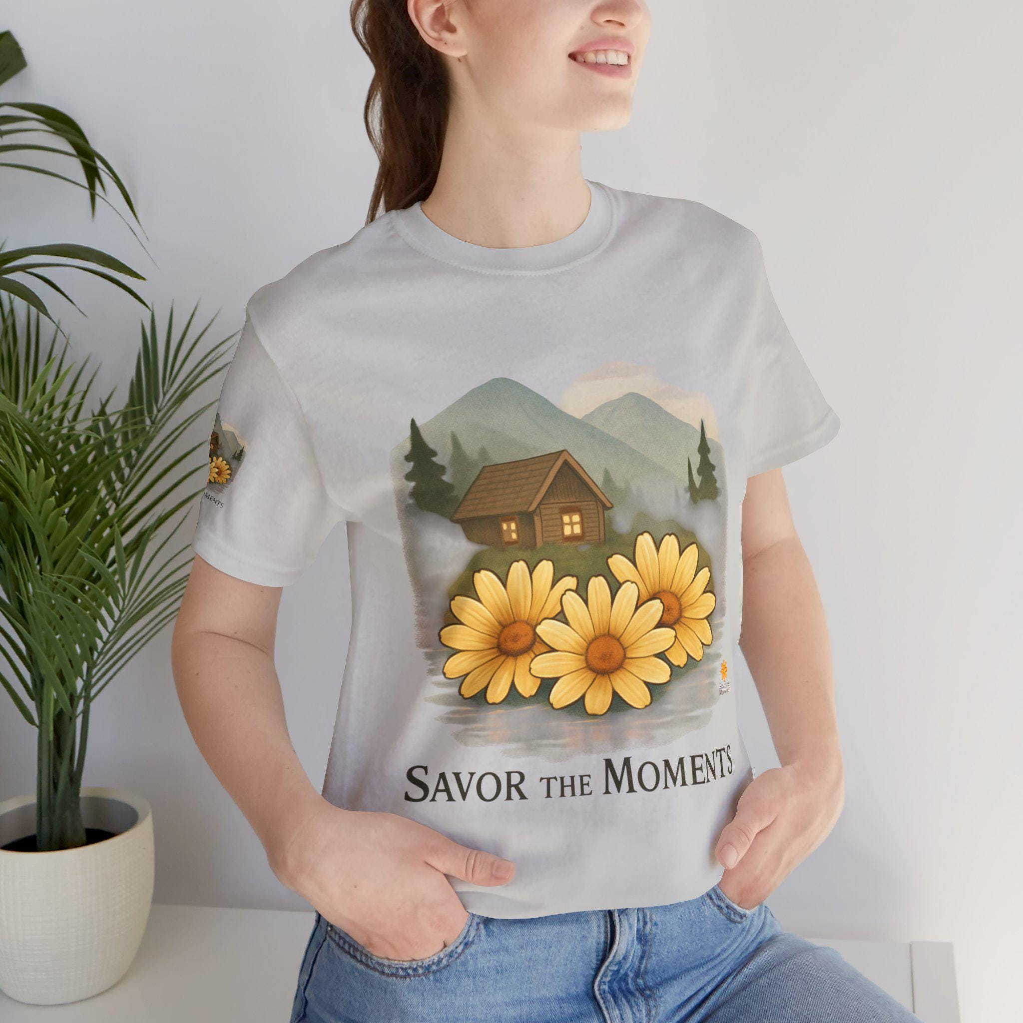 Cabin, Daisies, Floral Nature Graphic Tee, Savor the Moments, Unisex Jersey, birthday gift, casual wear