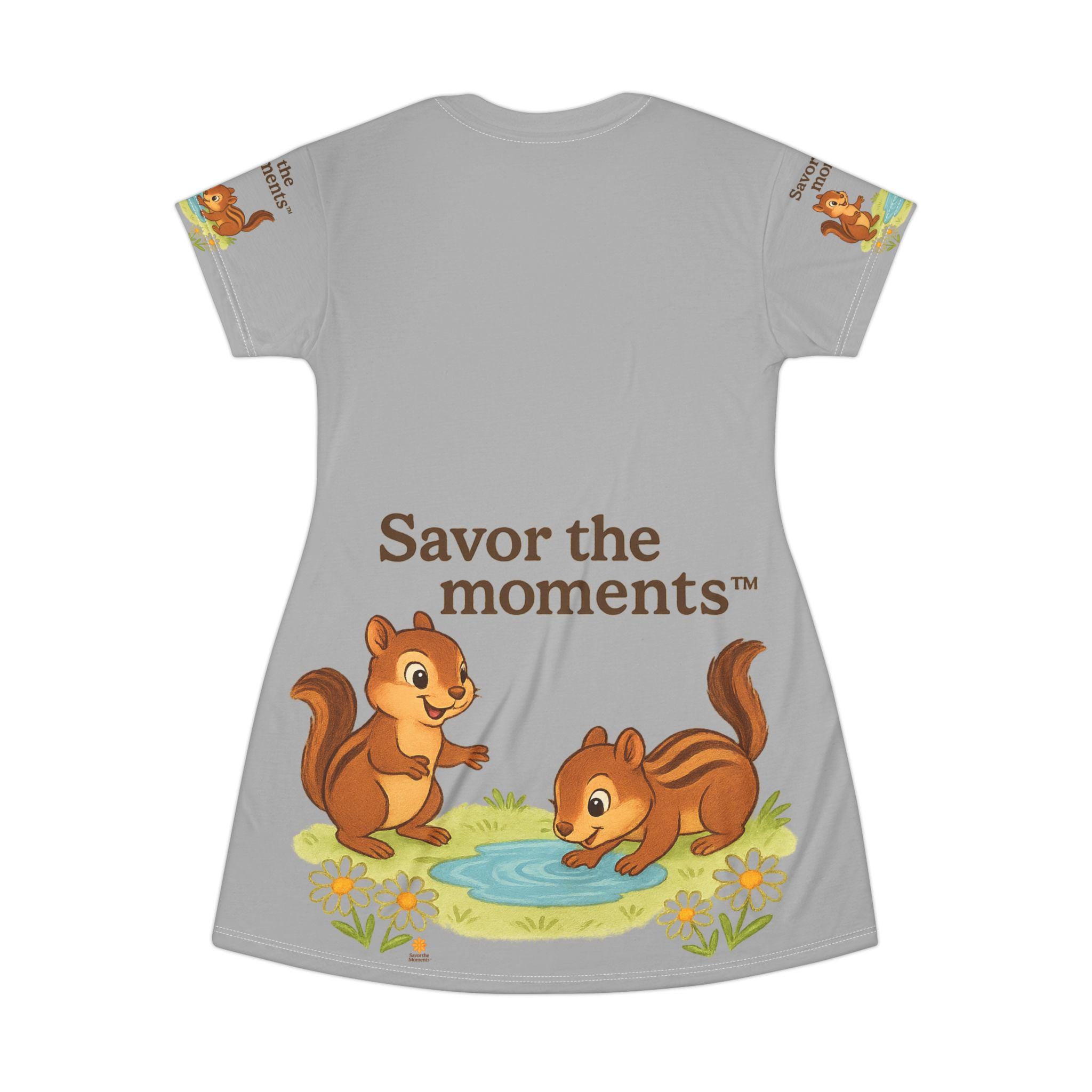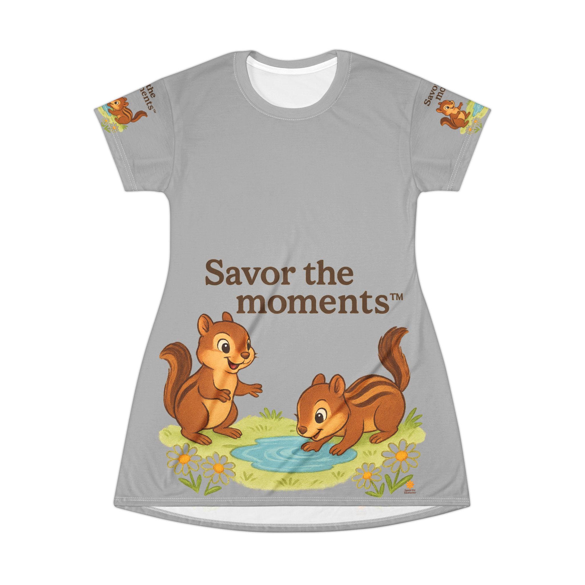 Chipmunk illustration T-Shirt Dress | woodland animal, pastel nature scene, Savor the Moments